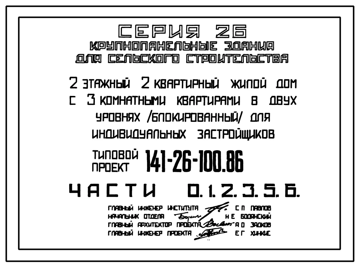 Типовой проект 141-26-100.86 2-этажный 2-квартирный жилой дом с 3-комнатными квартирами в двух уровнях (блокированный) для индивидуальных застройщиков