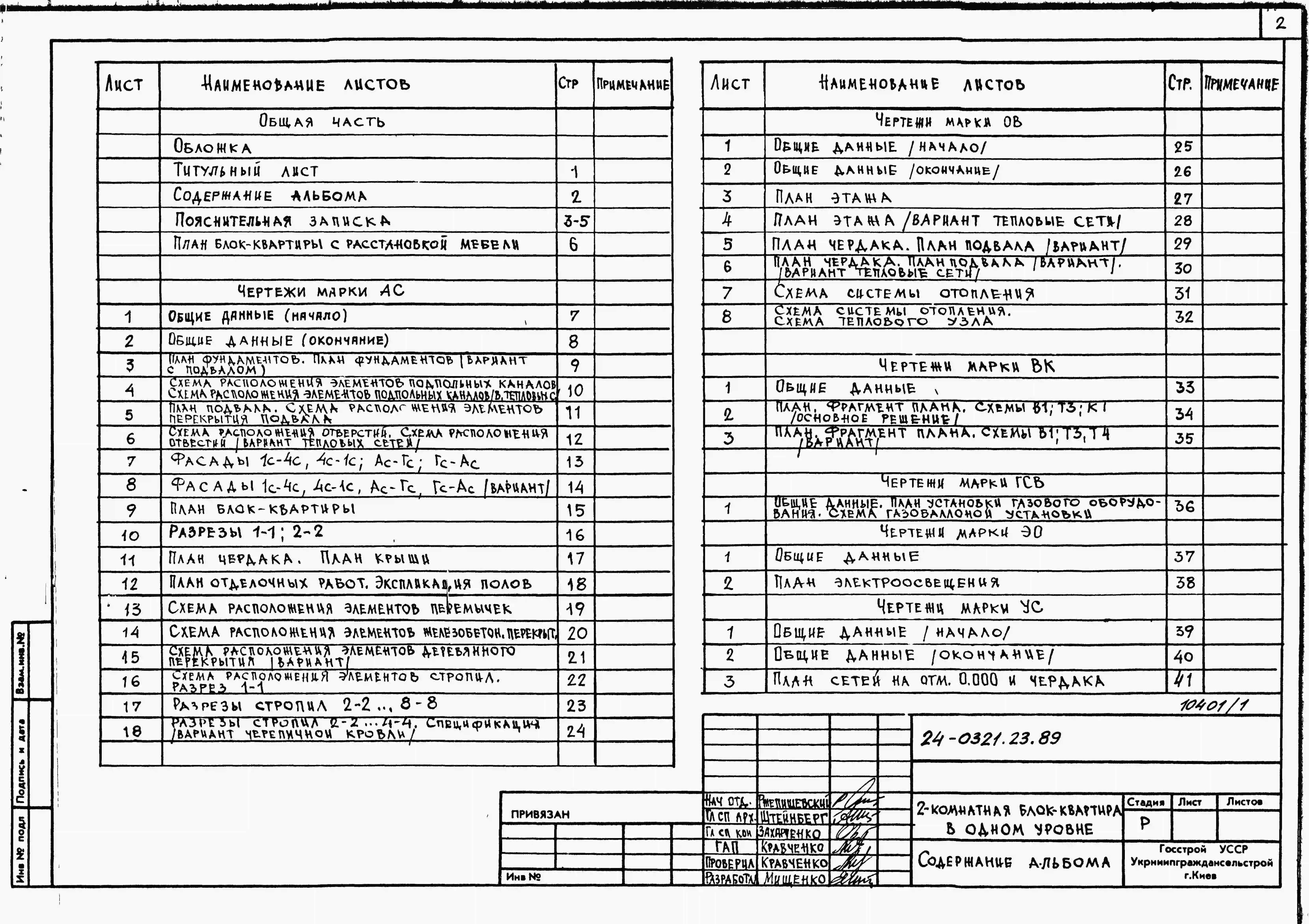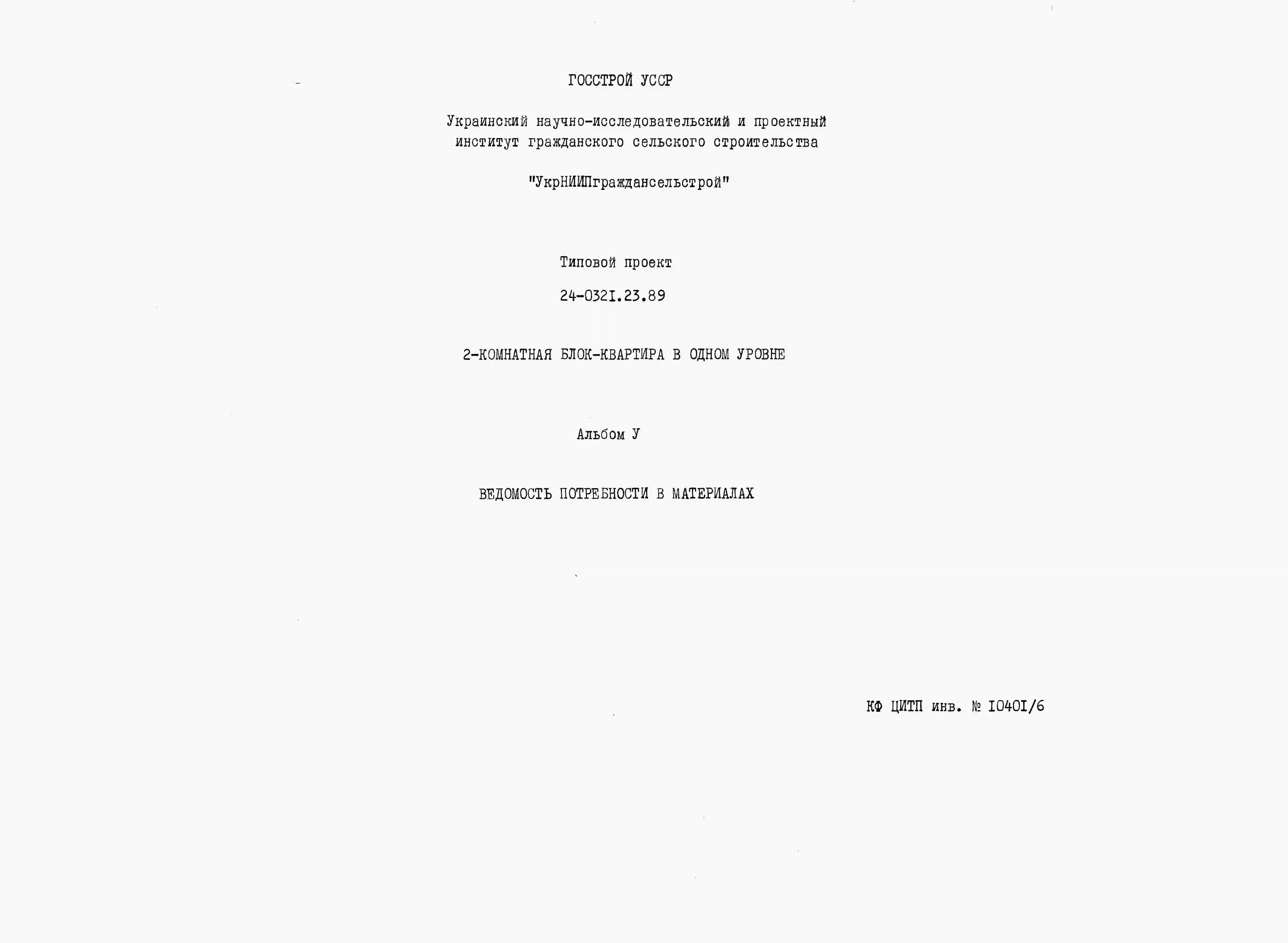 Типовой проект 24-0321.23.89 2-комнатная блок-квартира в одном уровне (для строительства в Украинской ССР)