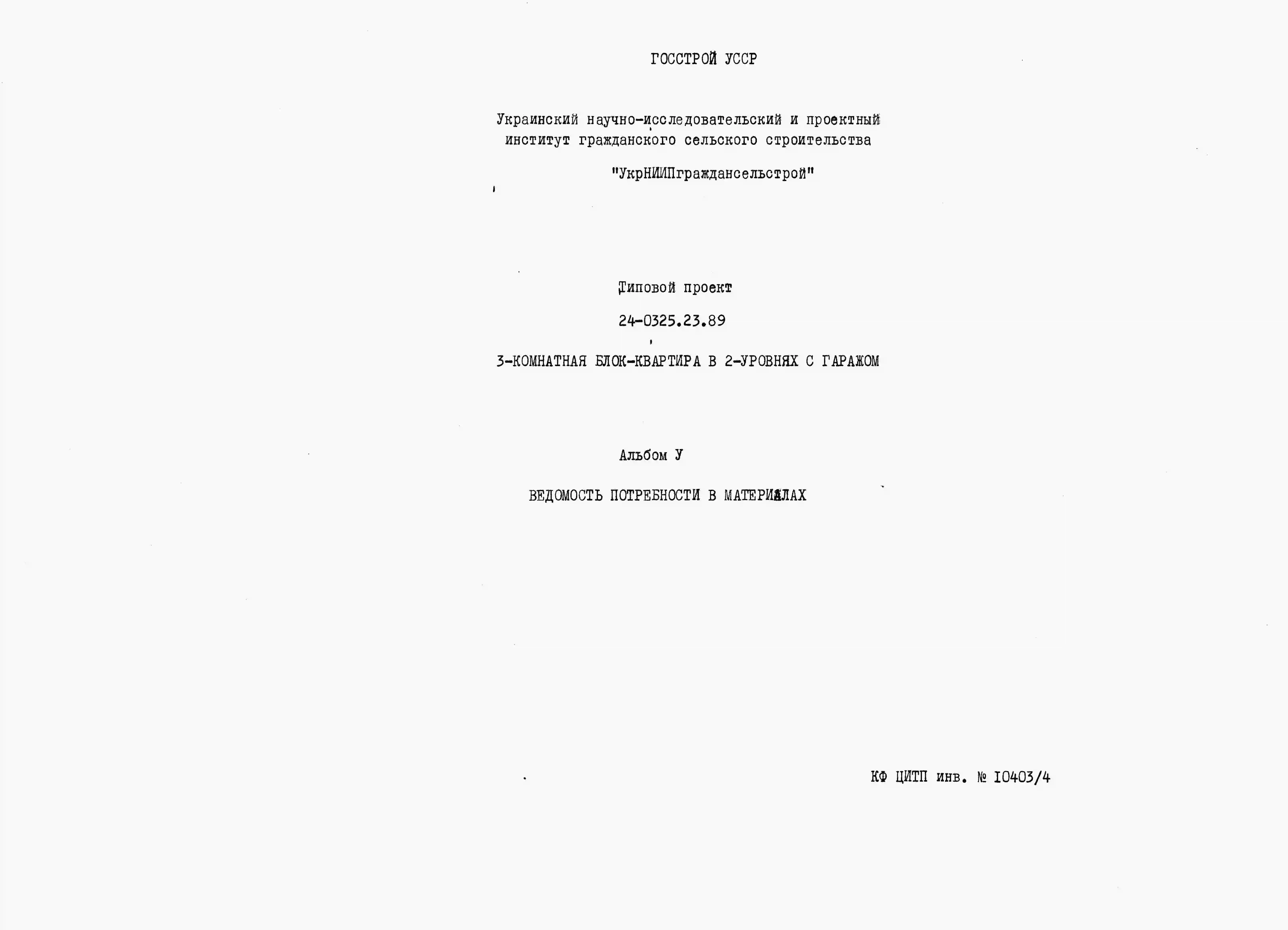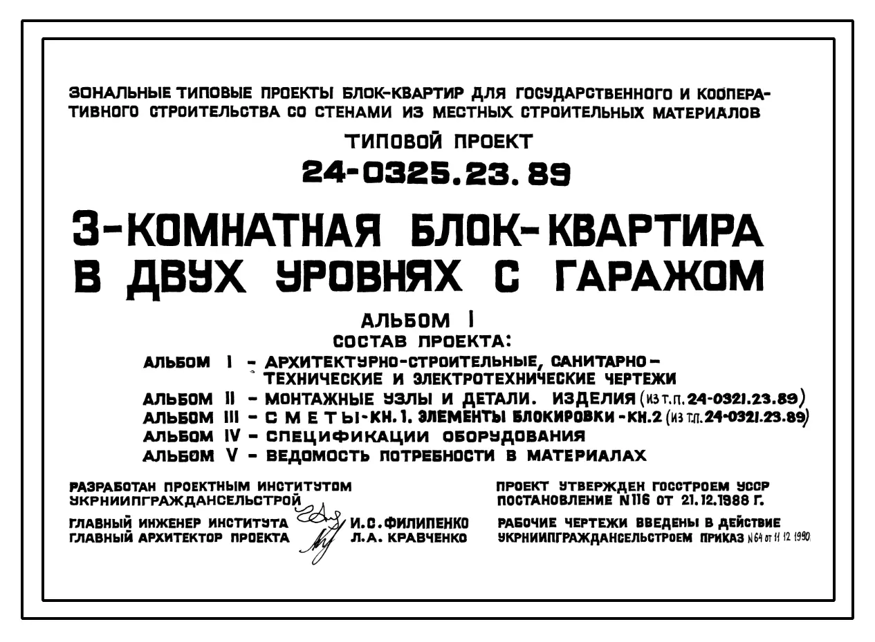 Типовой проект 24-0325.23.89 3-комнатная блок-квартира в двух уровнях с гаражом (для строительства в Украинской ССР)