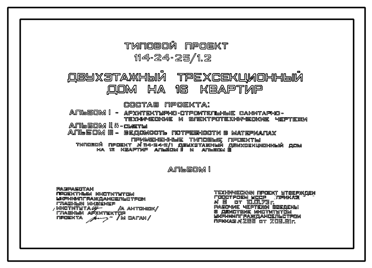 Типовой проект 114-24-25/1.2 Двухэтажный трехсекционный дом на 16 квартир