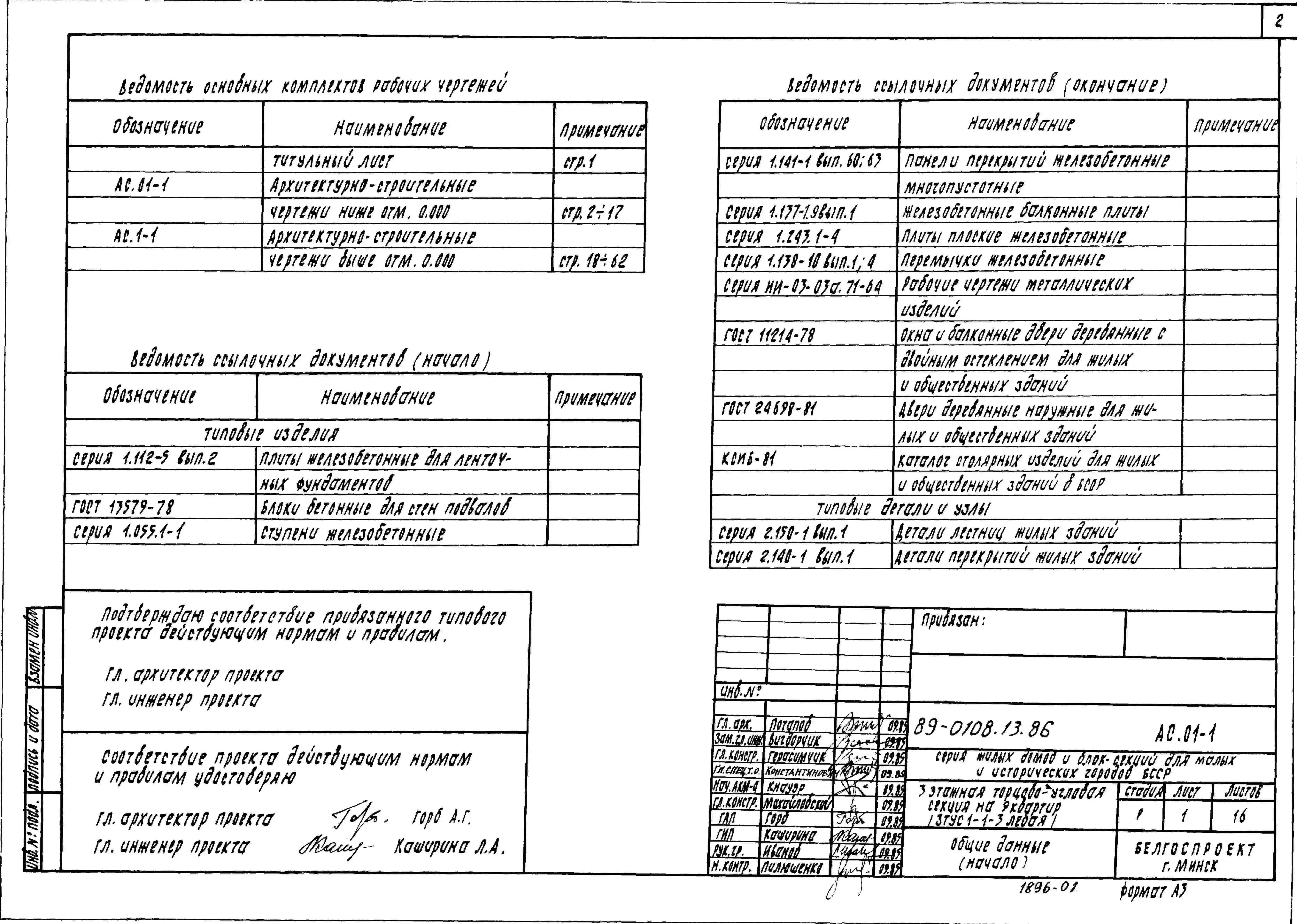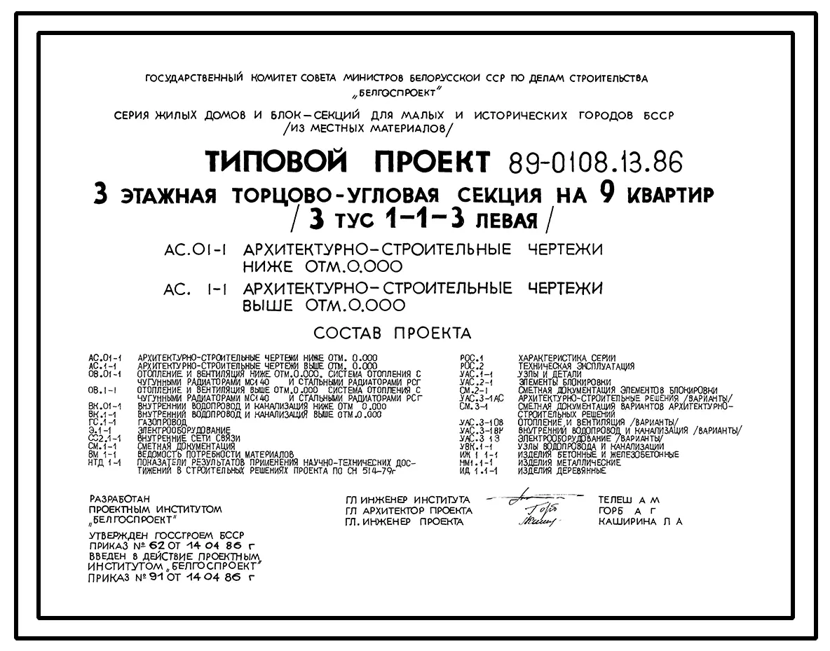 Типовой проект 89-0108.13.86 3 этажная торцово-угловая секция на 9 квартир (3 тус 1-1-3 левая)