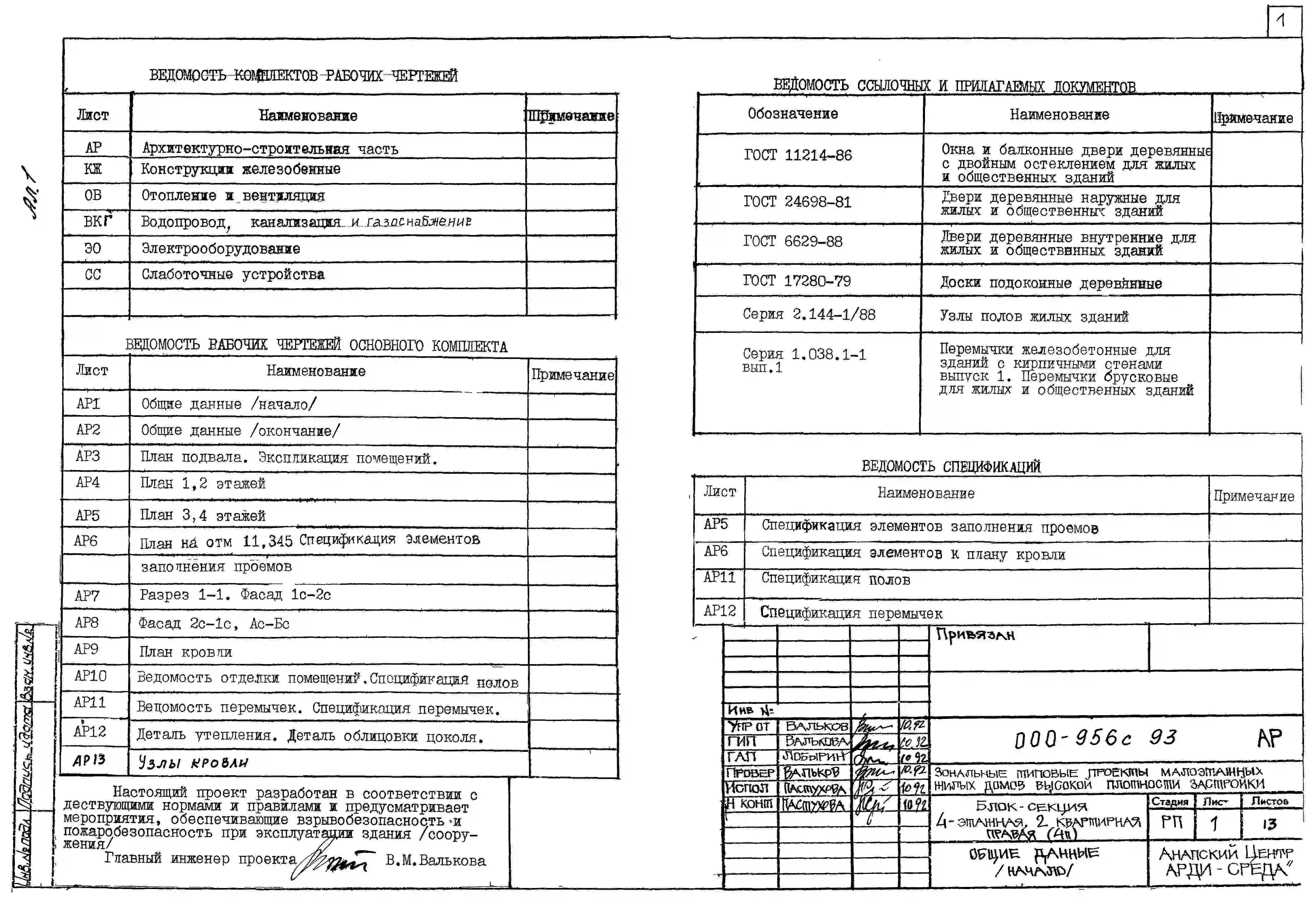 Типовой проект 000-956с.93 Блок-секция 4-этажная 2-квартирная правая (4П) со стенами из кирпича (3Б, 5Б)