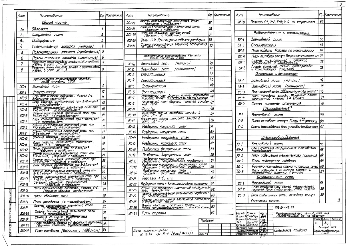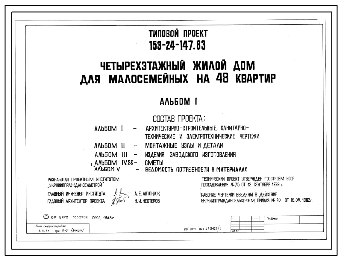 Типовой проект 153-24-147.83 Четырехэтажный жилой дом для малосемейных на 48 однокомнатных квартир