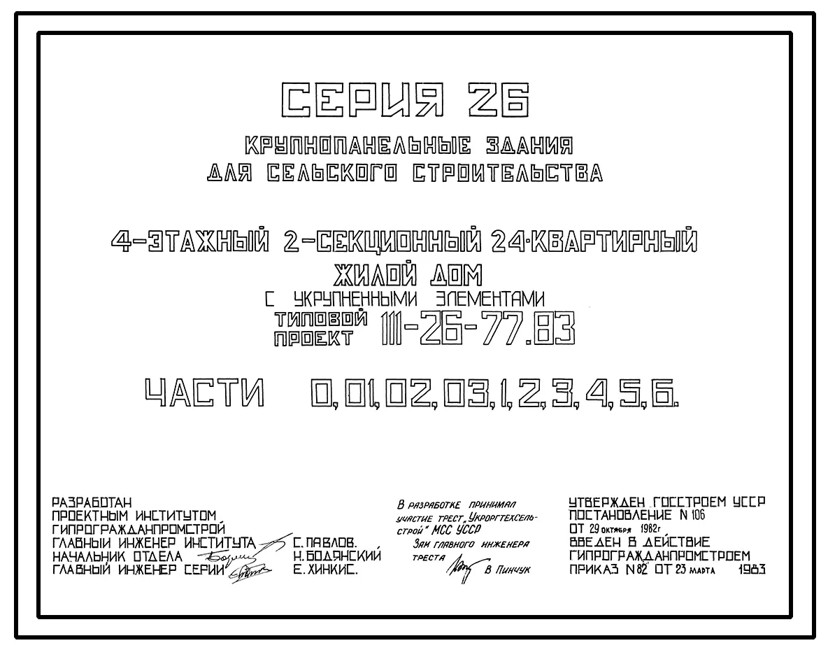 Типовой проект 111-26-77.83 4-этажный двухсекционный 24-квартирный жилой дом с укрупненными элементами