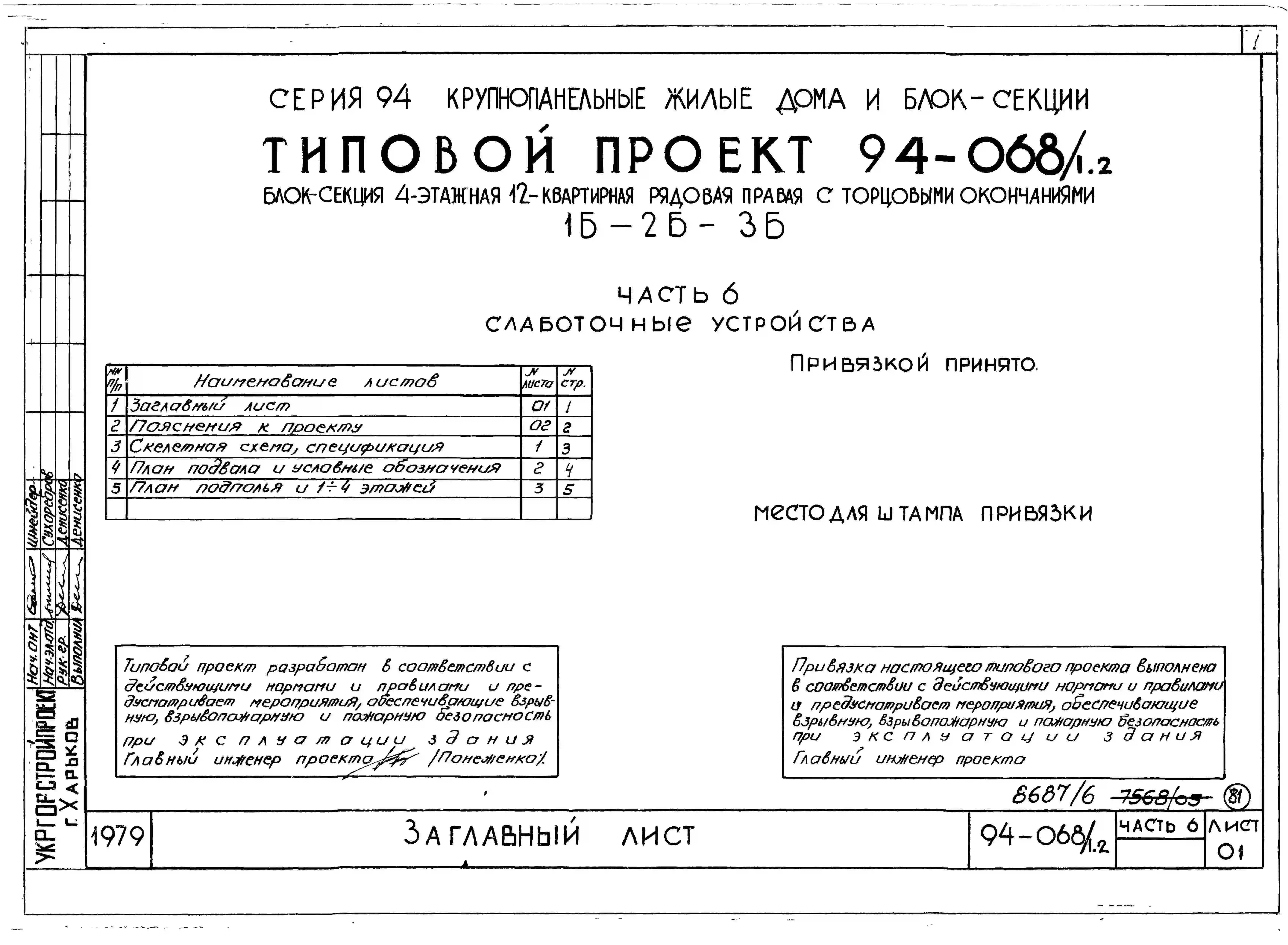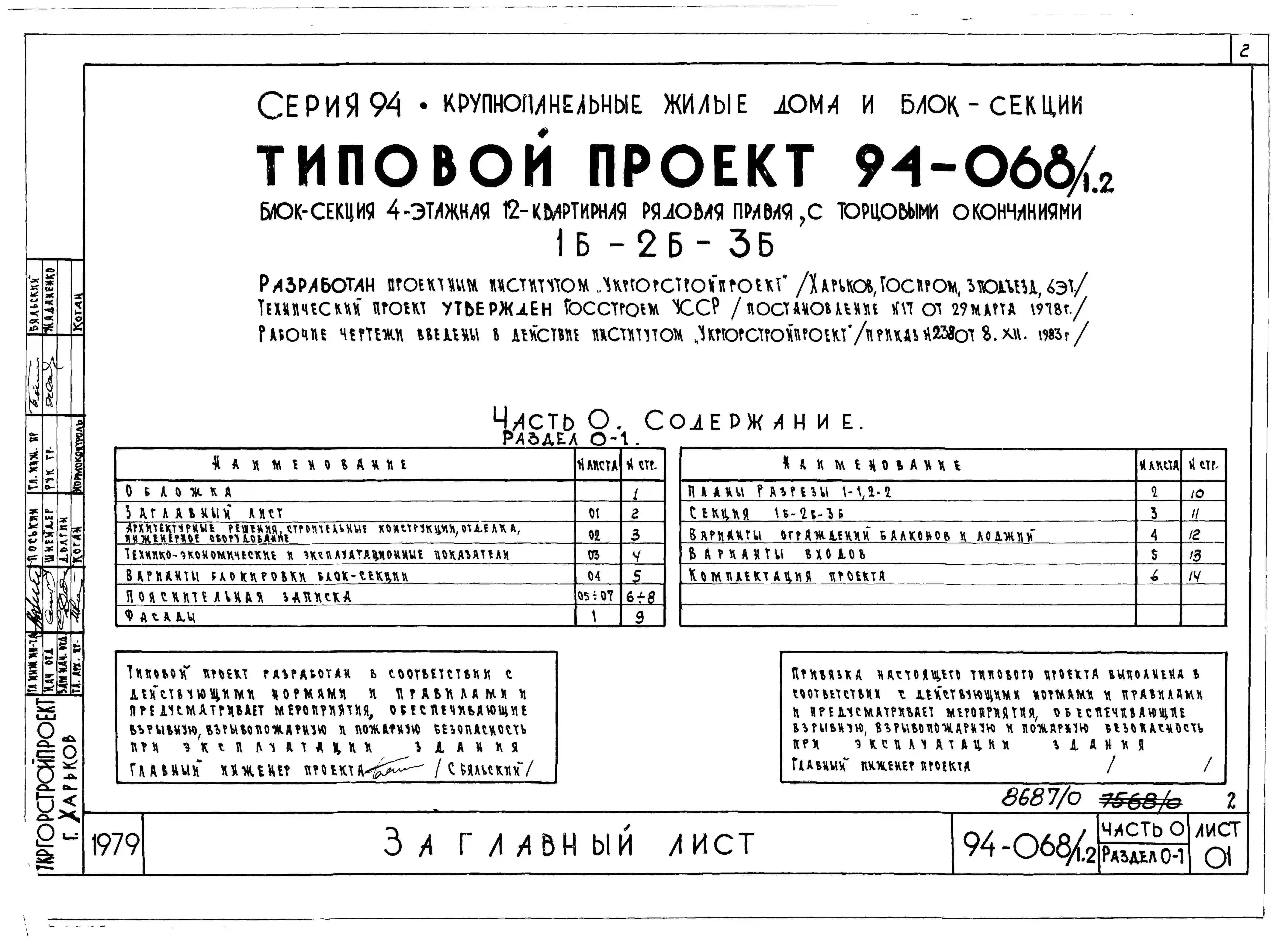Типовой проект 94-068/1.2 Блок-секция 4-этажная 12-квартирная рядовая, правая, с торцовыми окончаниями, 1Б-2Б-3Б