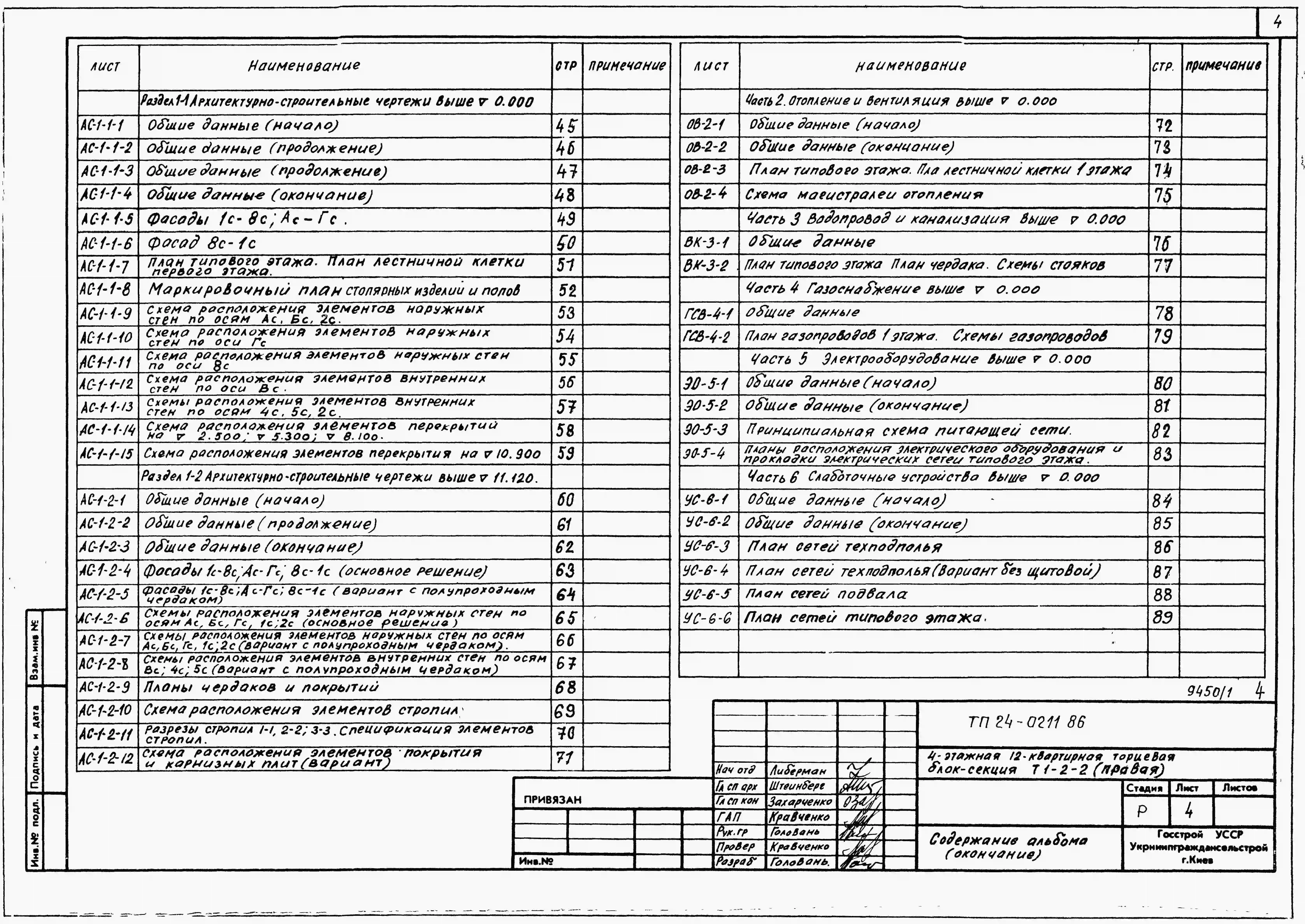 Типовой проект 24-0211.86 4-этажная 12-квартирная торцевая блок-секция Т 1-2-2 (правая)