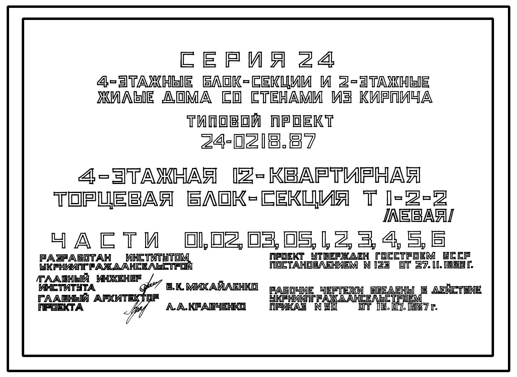 Типовой проект 24-0218.87 4-этажная 12-квартирная торцевая блок-секция Т 1-2-2 (левая)