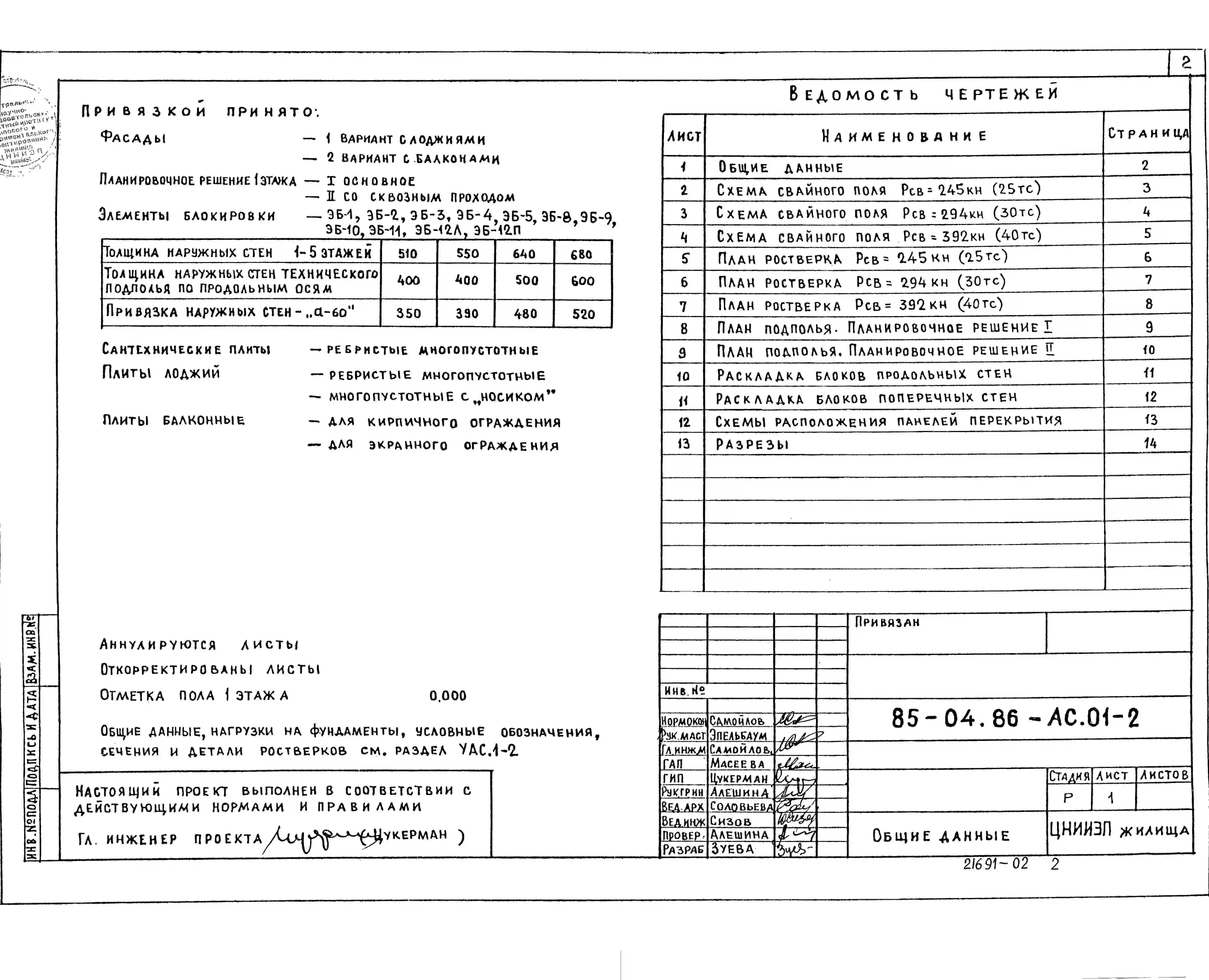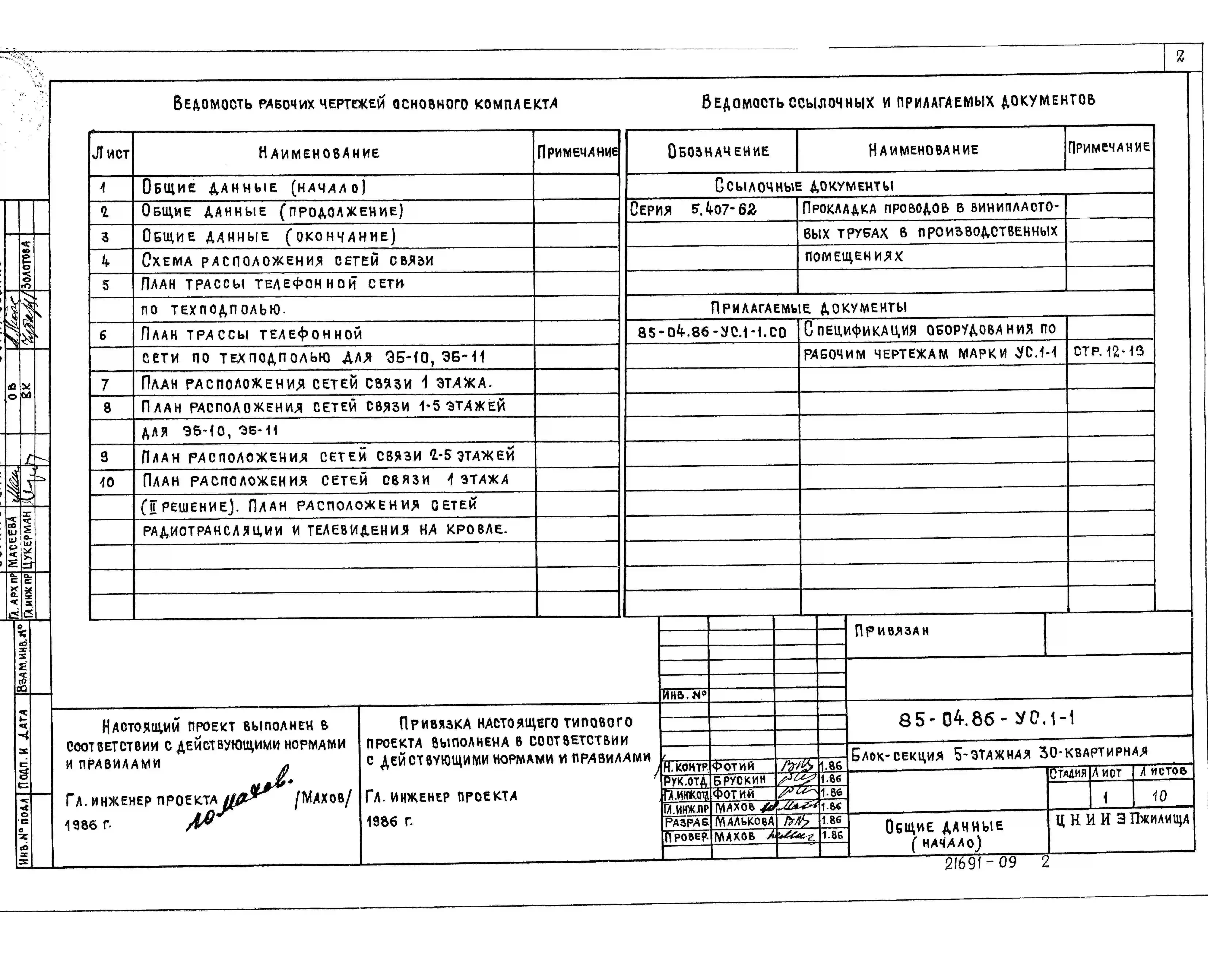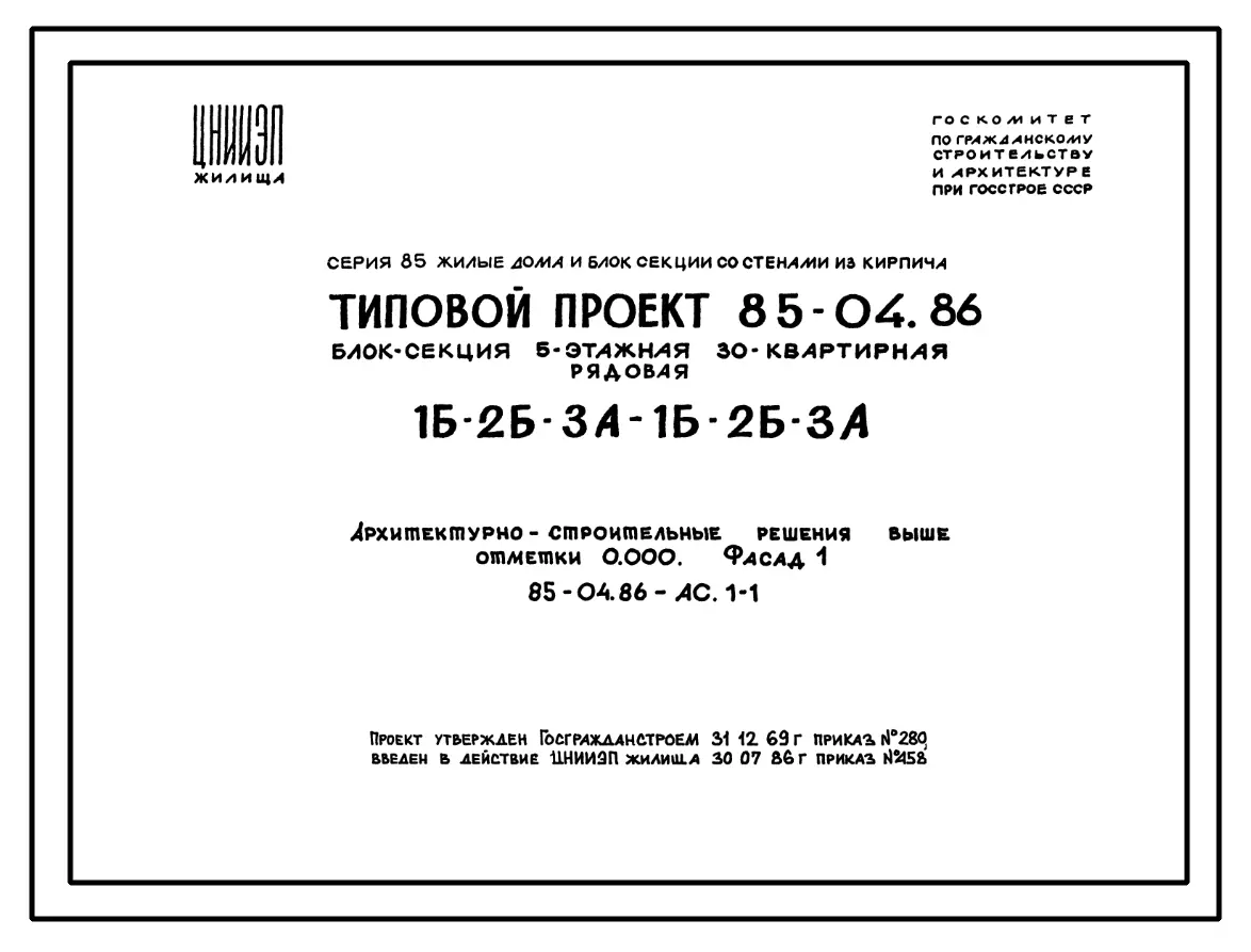 Типовой проект 85-04.86 Блок-секция 5-этажная 30-квартирная 1Б.2Б.3А - 1Б.2Б.3А рядовая