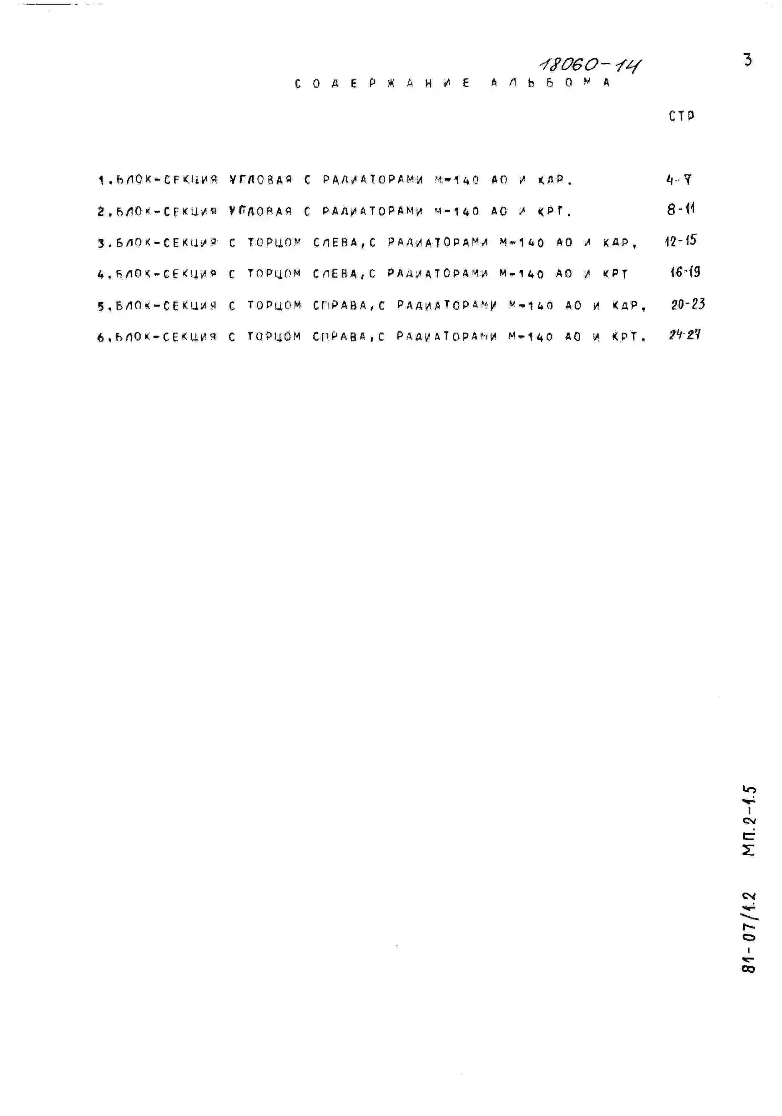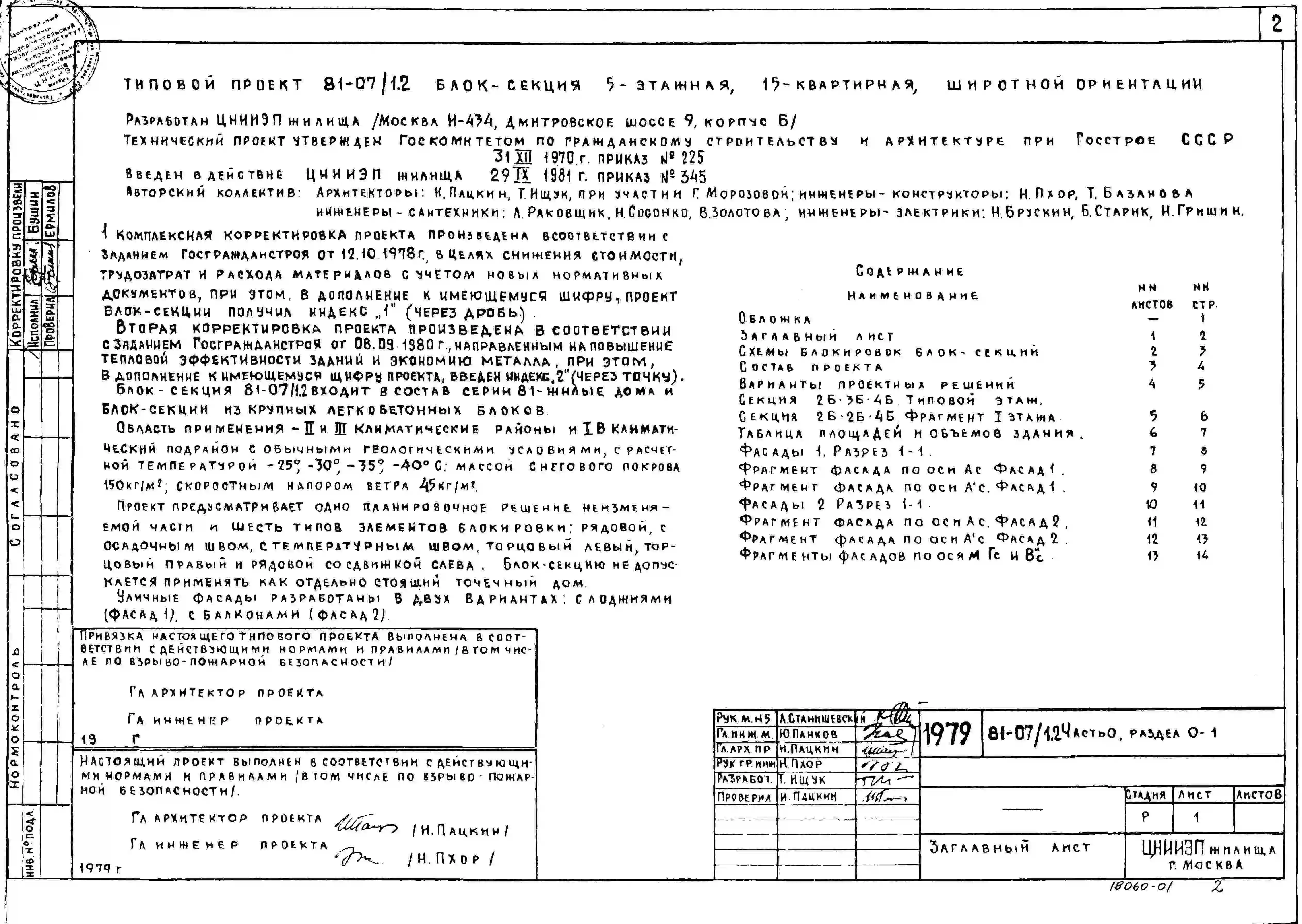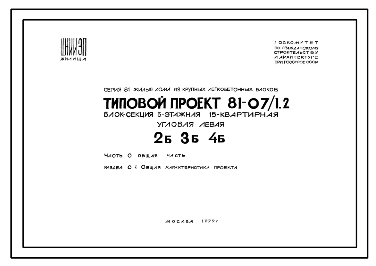 Типовой проект 81-07/1.2 Блок-секция 5-этажная 15-квартирная угловая левая 2Б.3Б.4Б