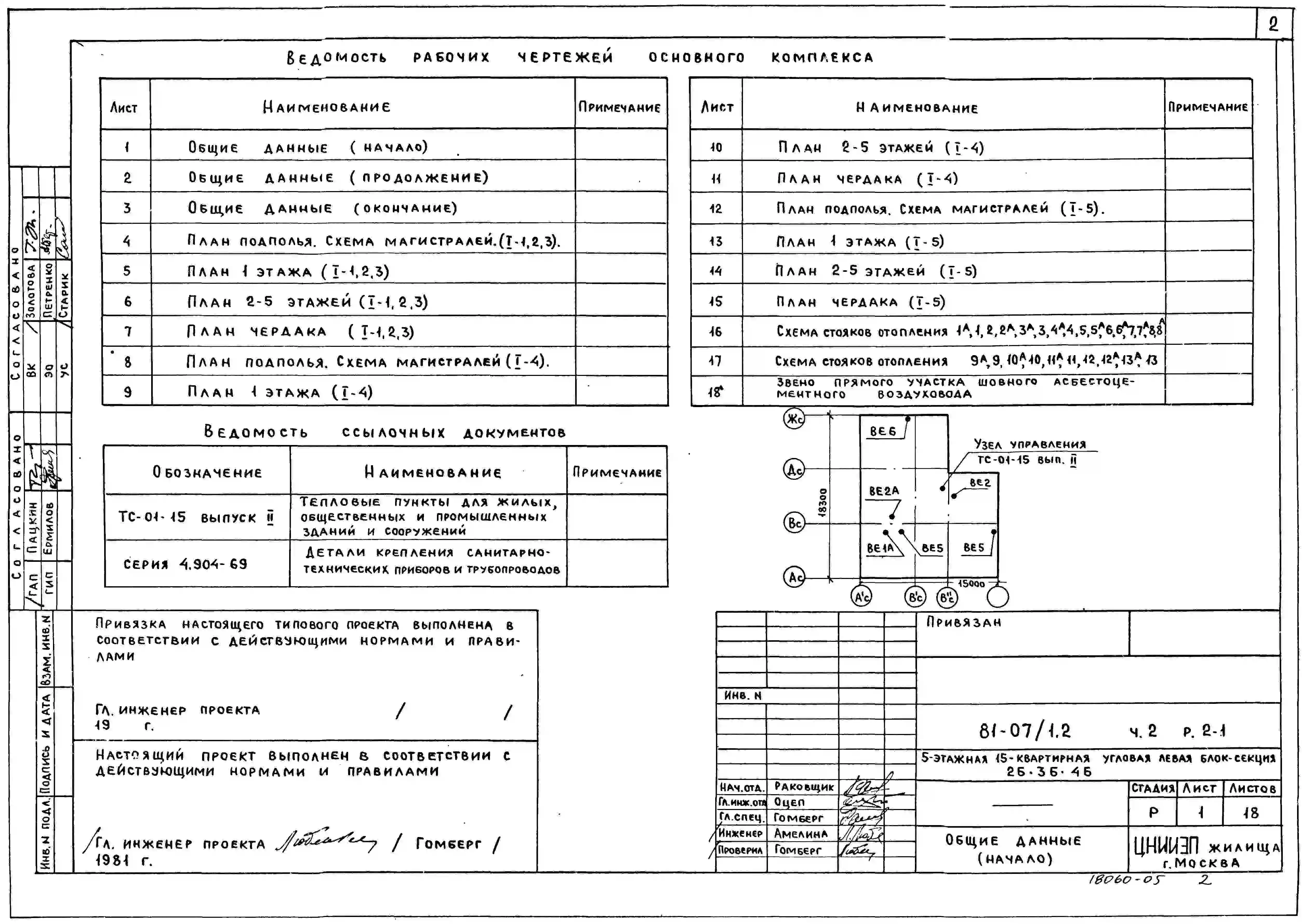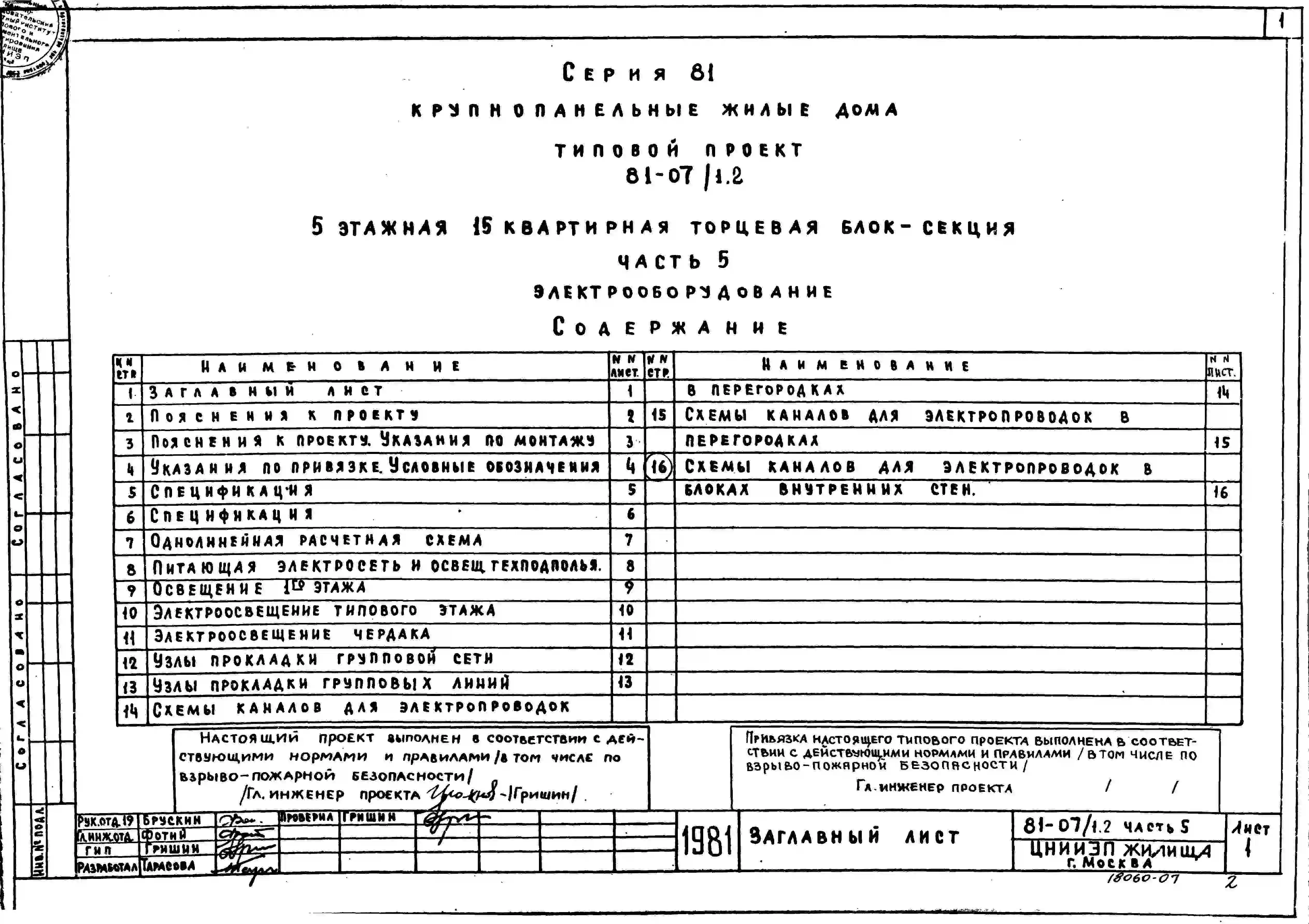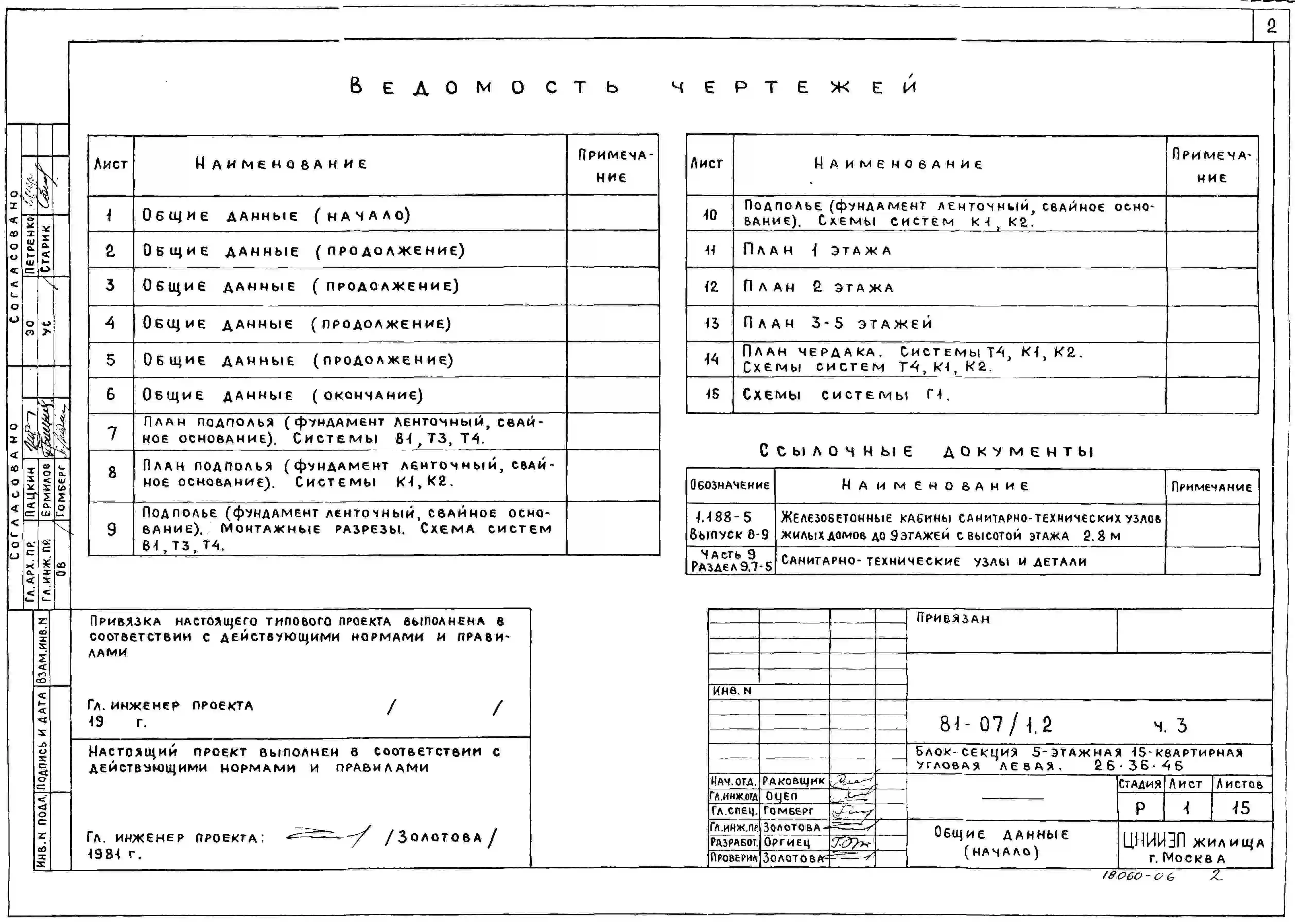 Типовой проект 81-07/1.2 Блок-секция 5-этажная 15-квартирная угловая левая 2Б.3Б.4Б