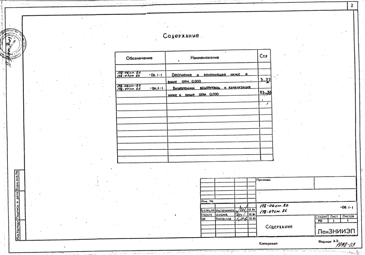 Типовой проект 178-06см.86 Блок-секция 5-этажная 20-квартирная рядовая 1Б-2Б-3Б-3Б