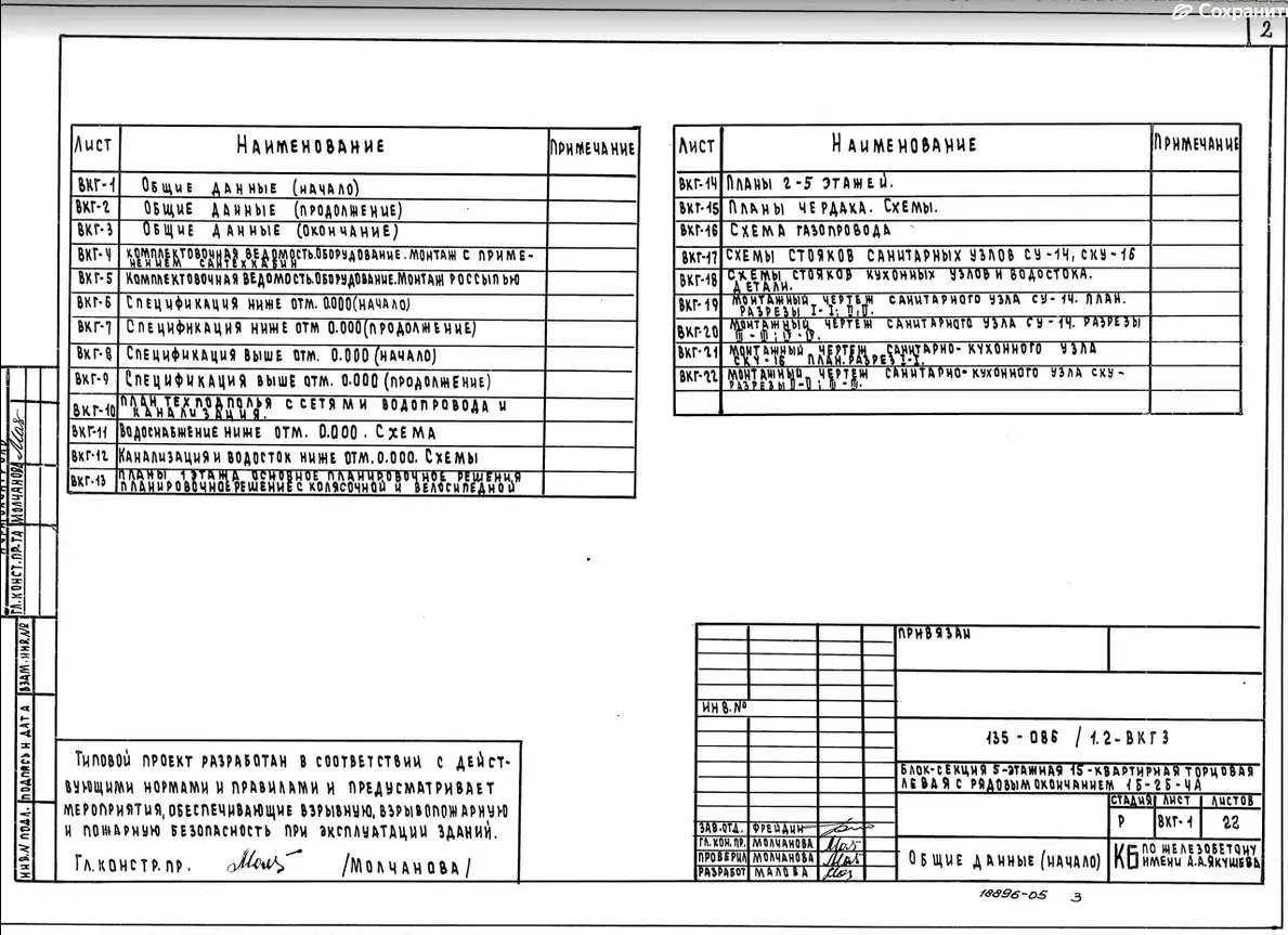 Типовой проект 135-086/1.2 5-этажная 15-квартирная торцевая лева блок-секция с торцовым окончанием 1-Б 2-Б 4-А.