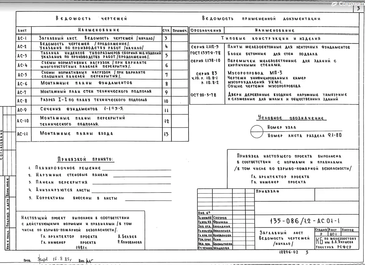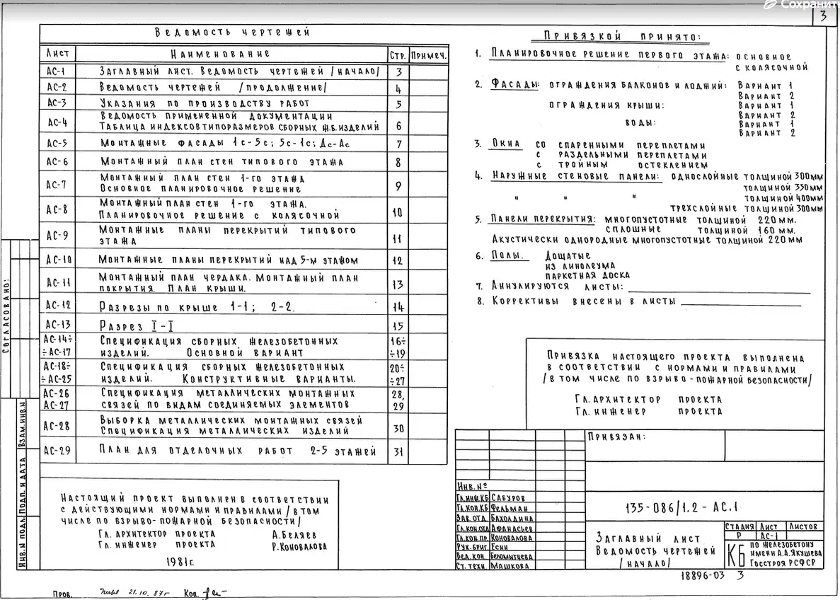 - наличия/отсутствия в конкретном проекте (при наличии чертежей, а не только паспорта проекта) нужных разделов