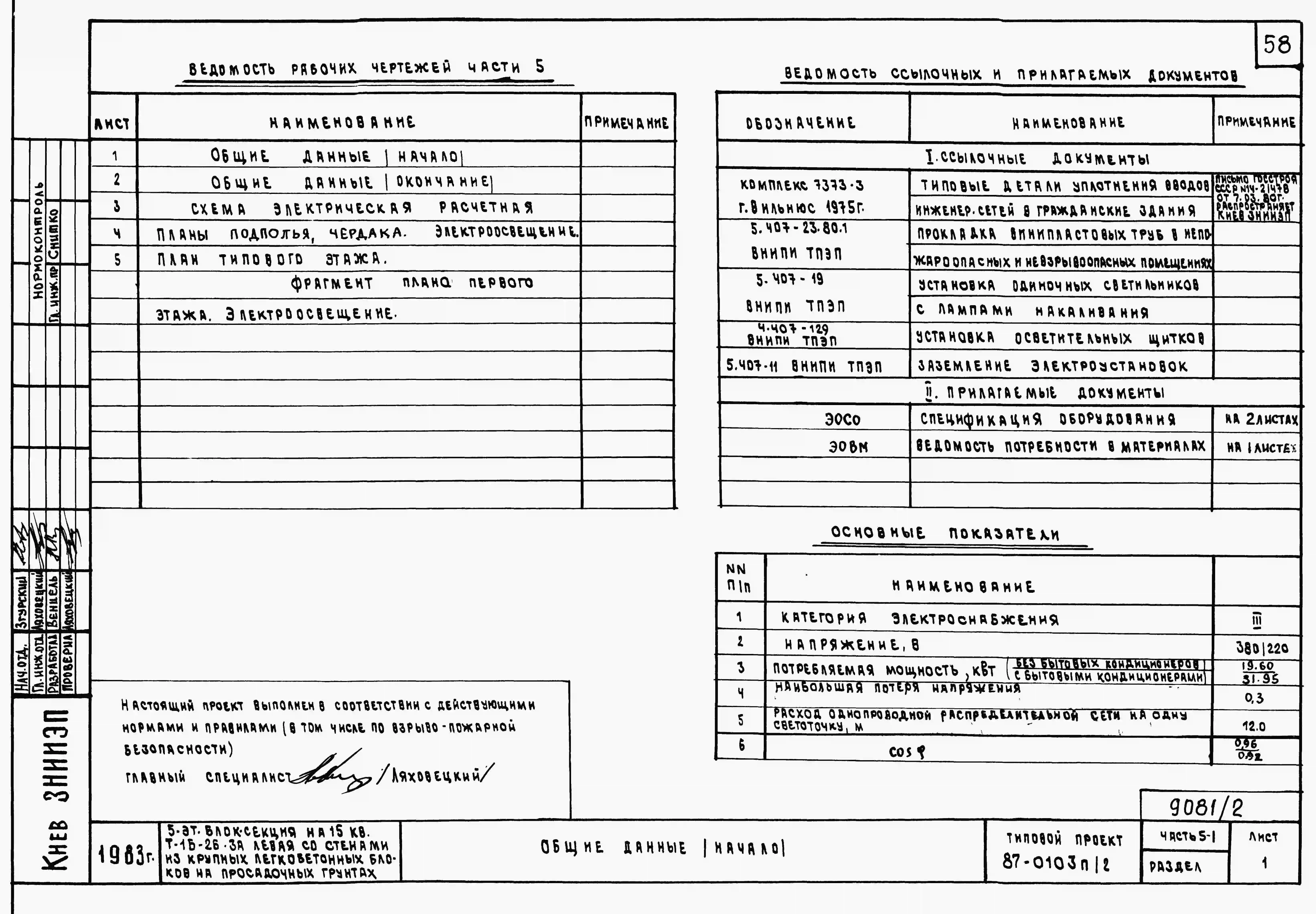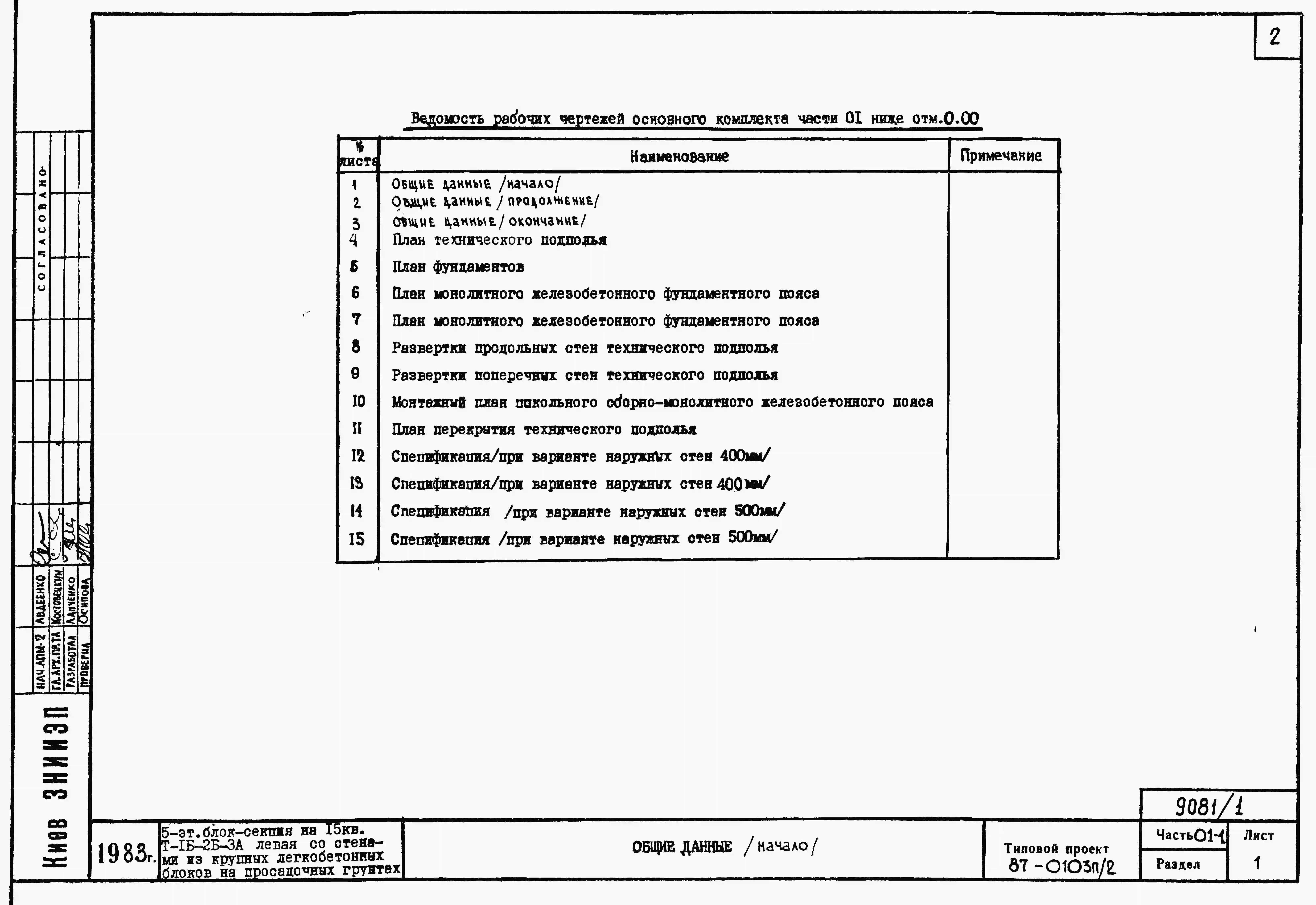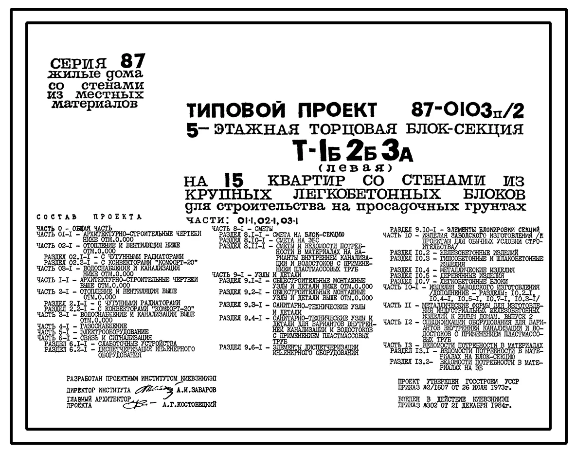 Типовой проект 87-0103п/2 Блок-секция торцовая левая 5-этажная 15-квартирная Т-1Б-2Б-3А