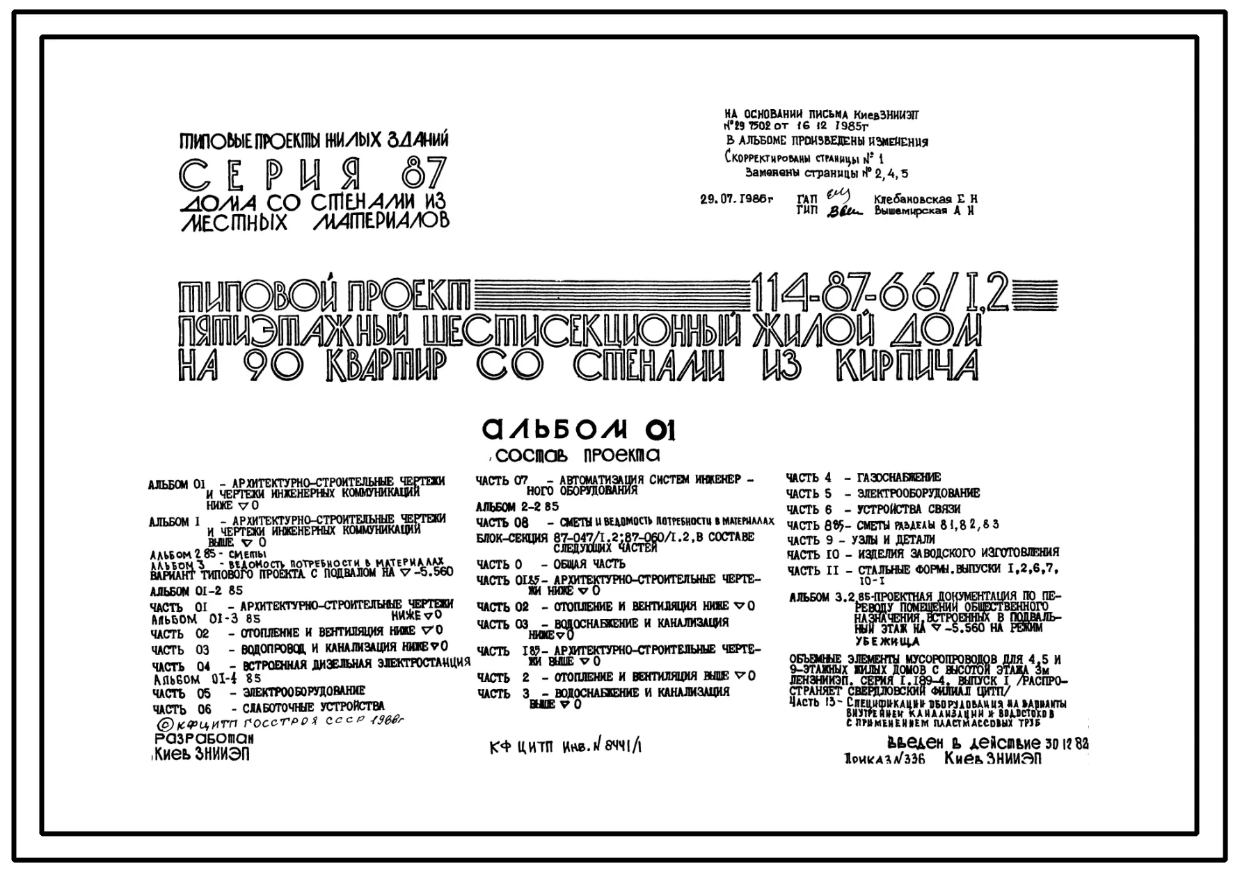 Типовой проект 114-87-66/1.2 Пятиэтажный шестисекционный жилой дом на 90 квартир