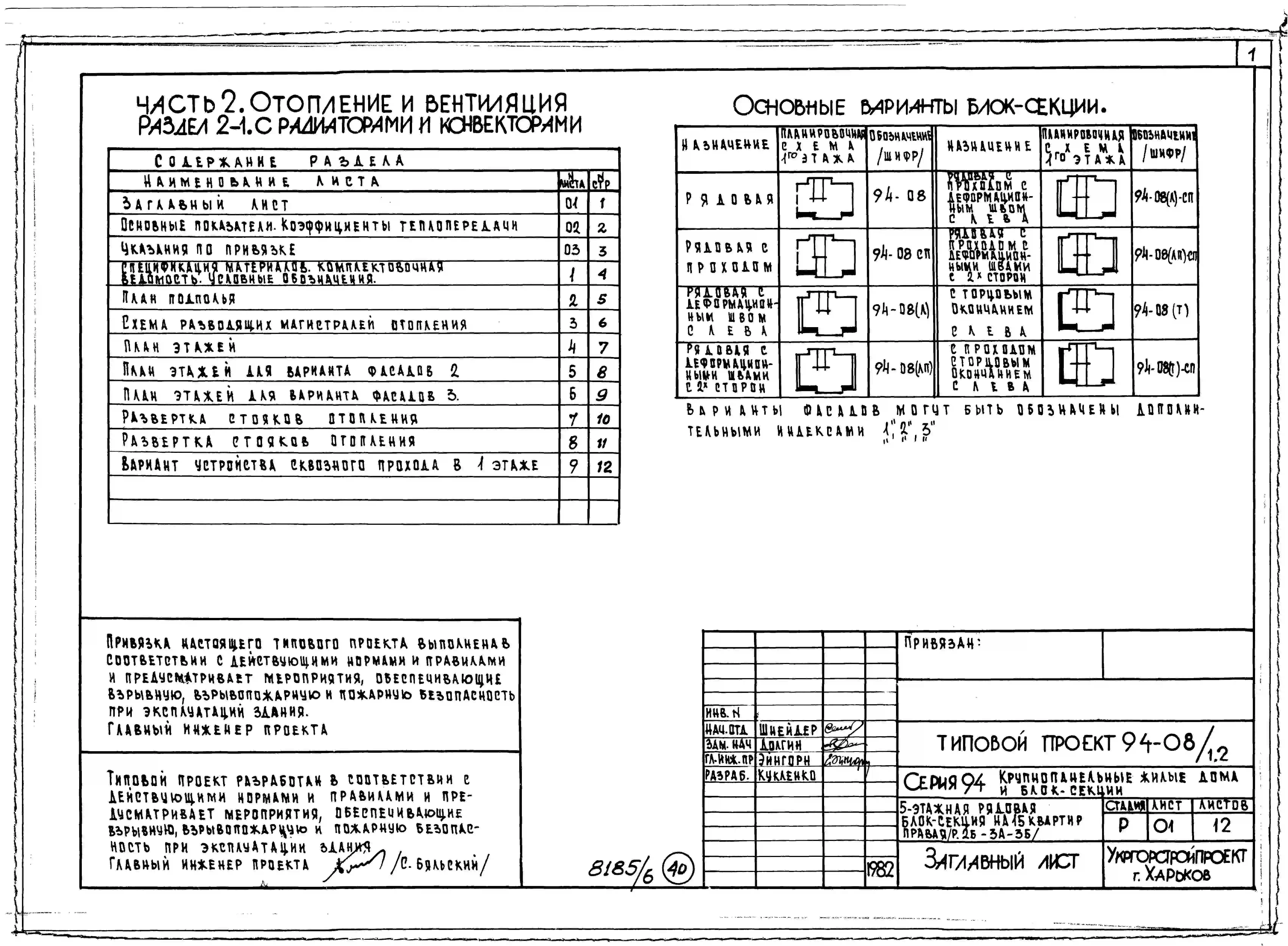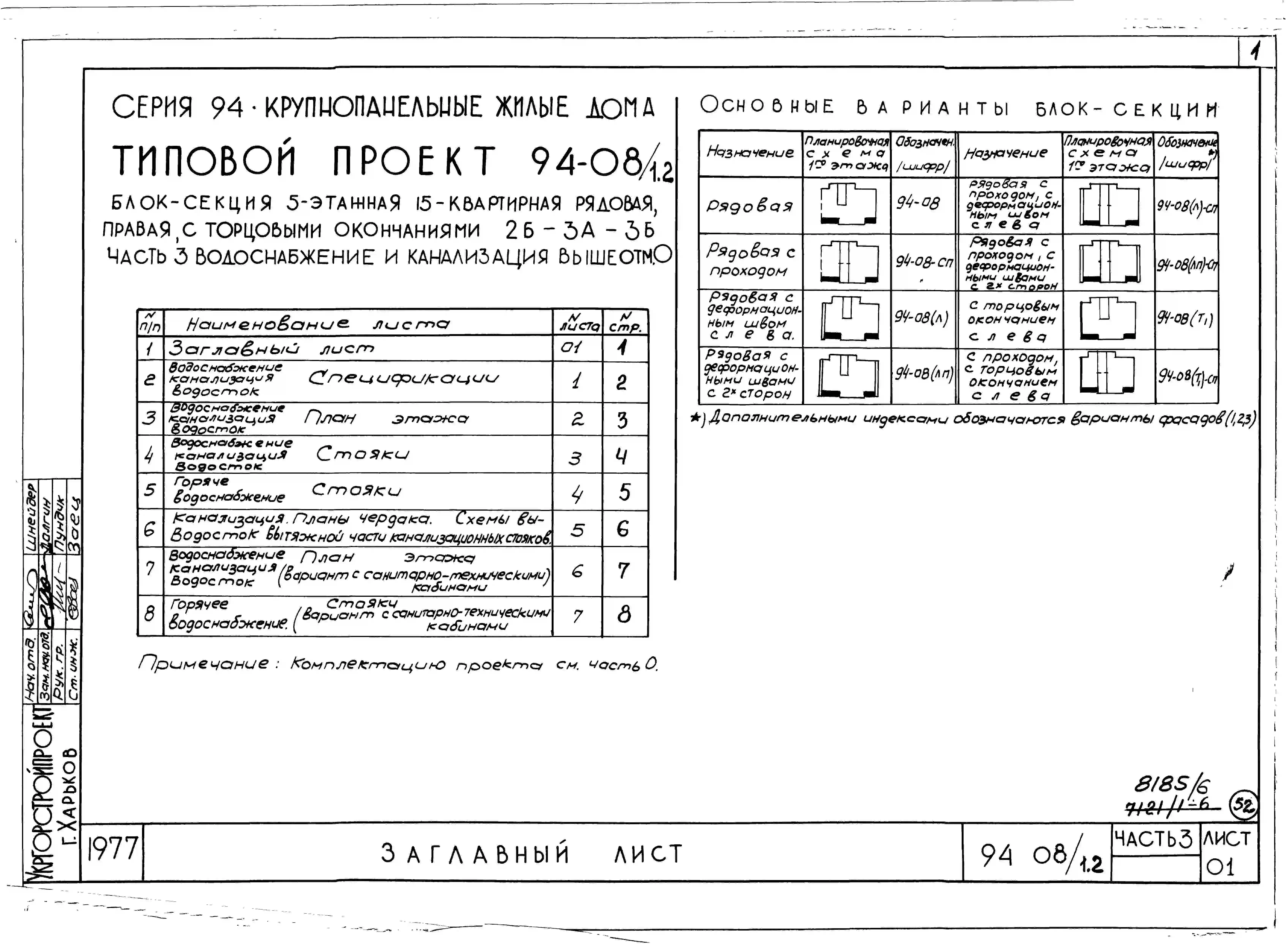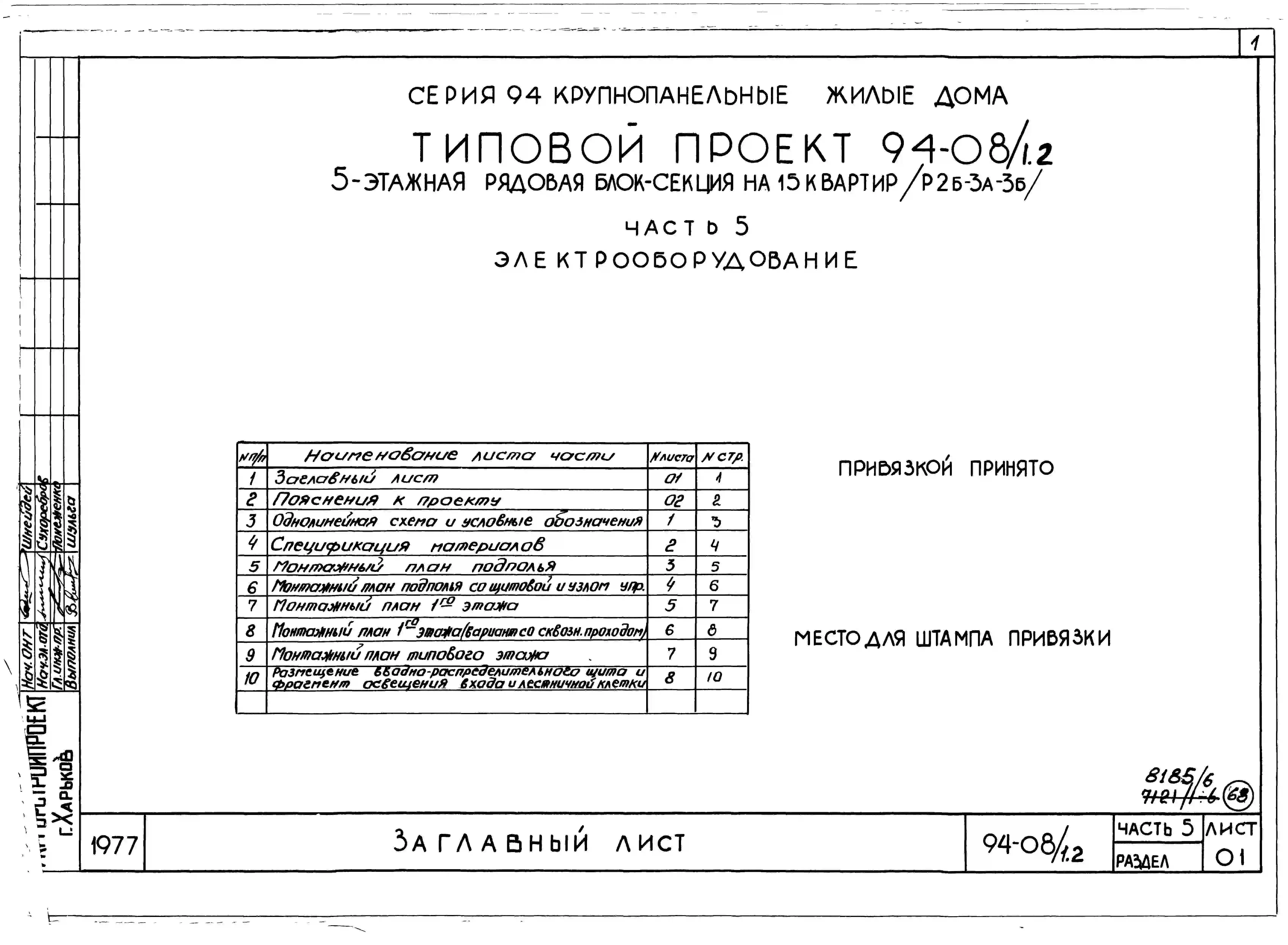 Типовой проект 94-08/1.2 Блок-секция 5-этажная 15-квартирная рядовая правая 2Б-3А-3Б