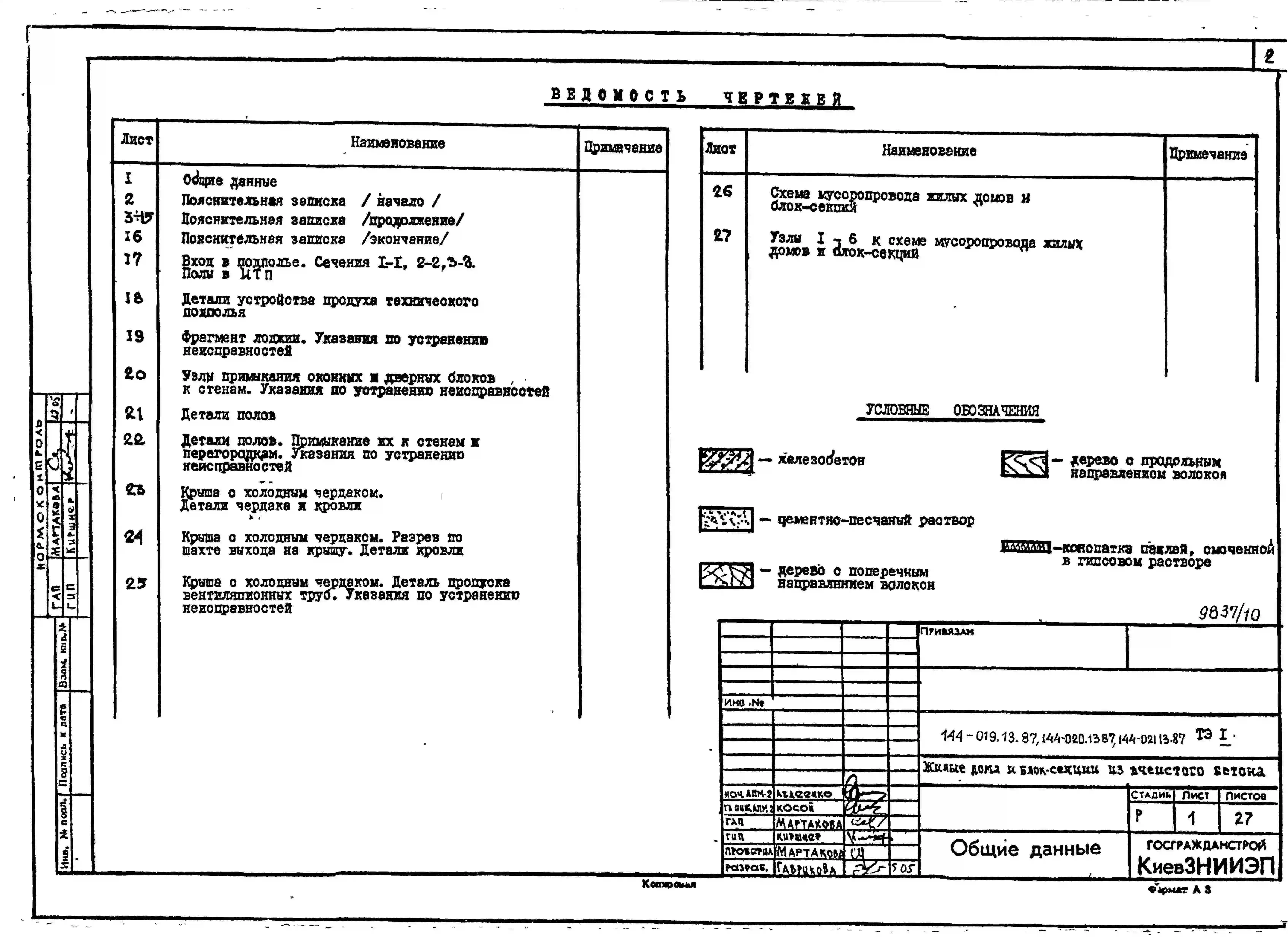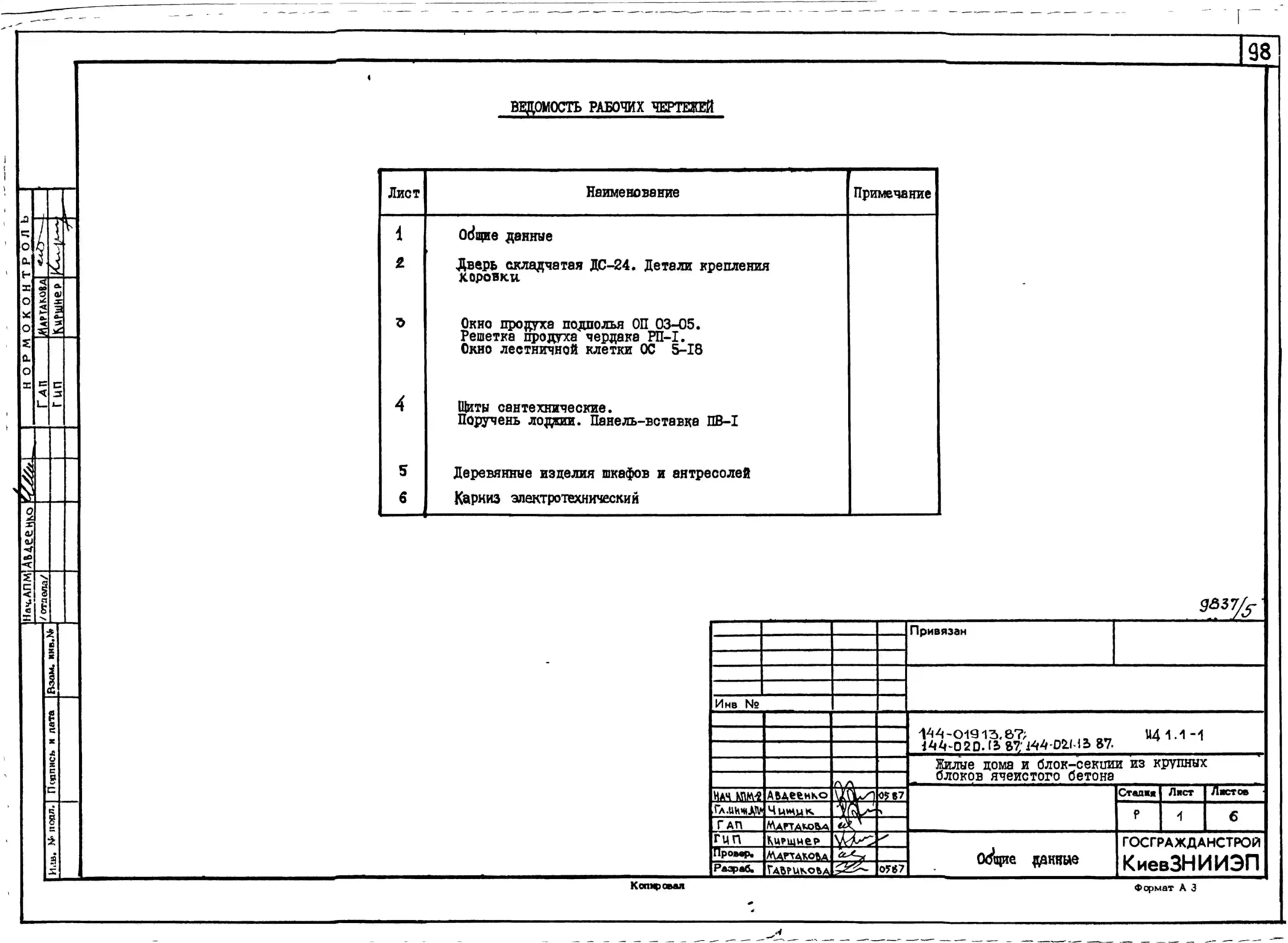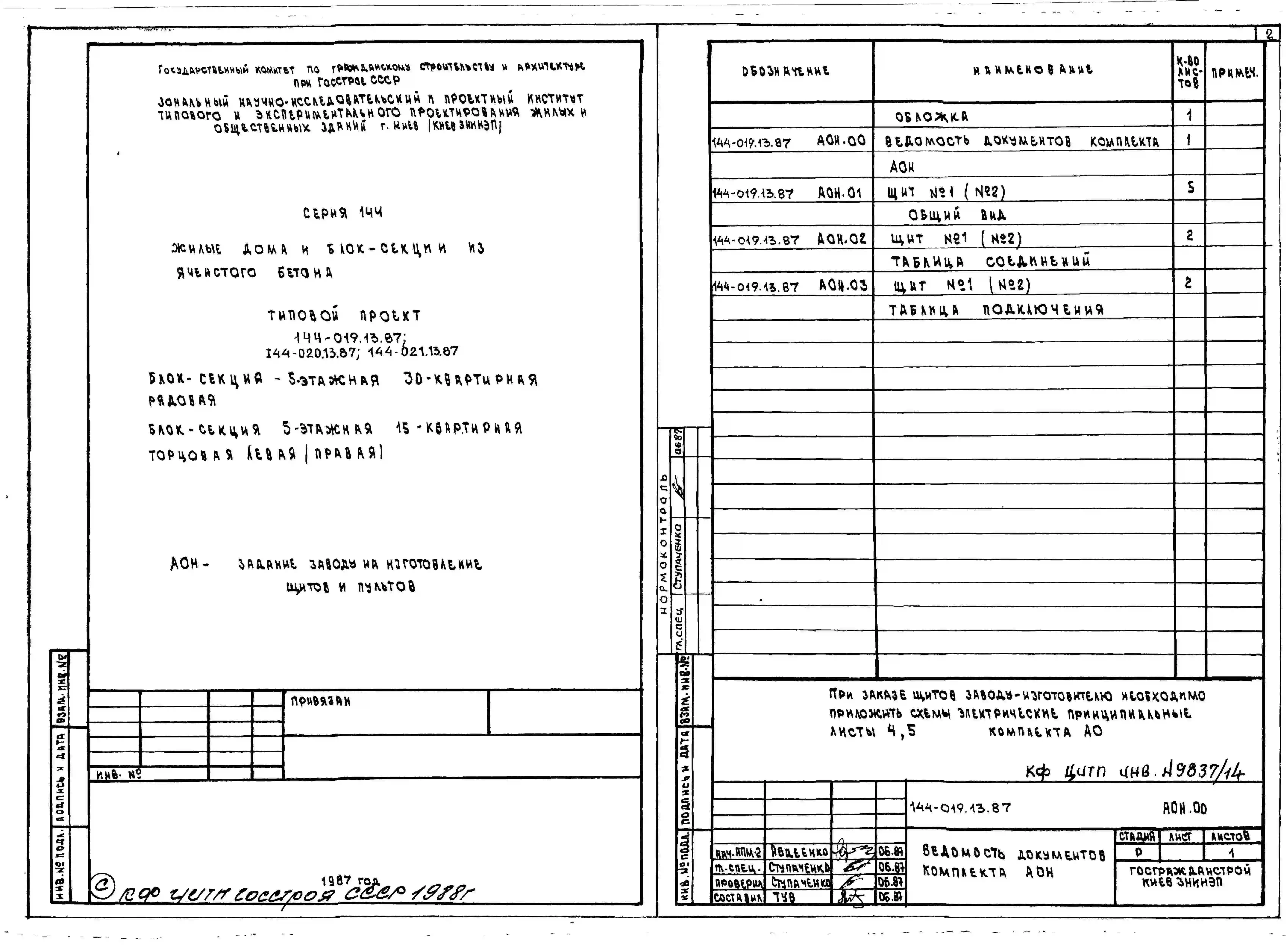 Типовой проект 144-021.13.87 Блок-секция 5-этажная 15-квартирная торцовая правая 1-2-3 /для строительства в УССР/
