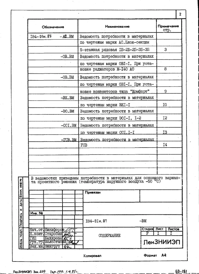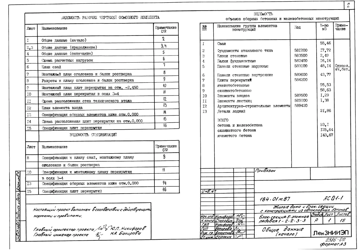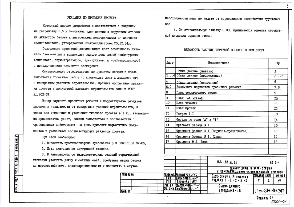 Типовой проект 184-01м.87 Блок-секция 5-этажная рядовая 1-2-2-3-3.