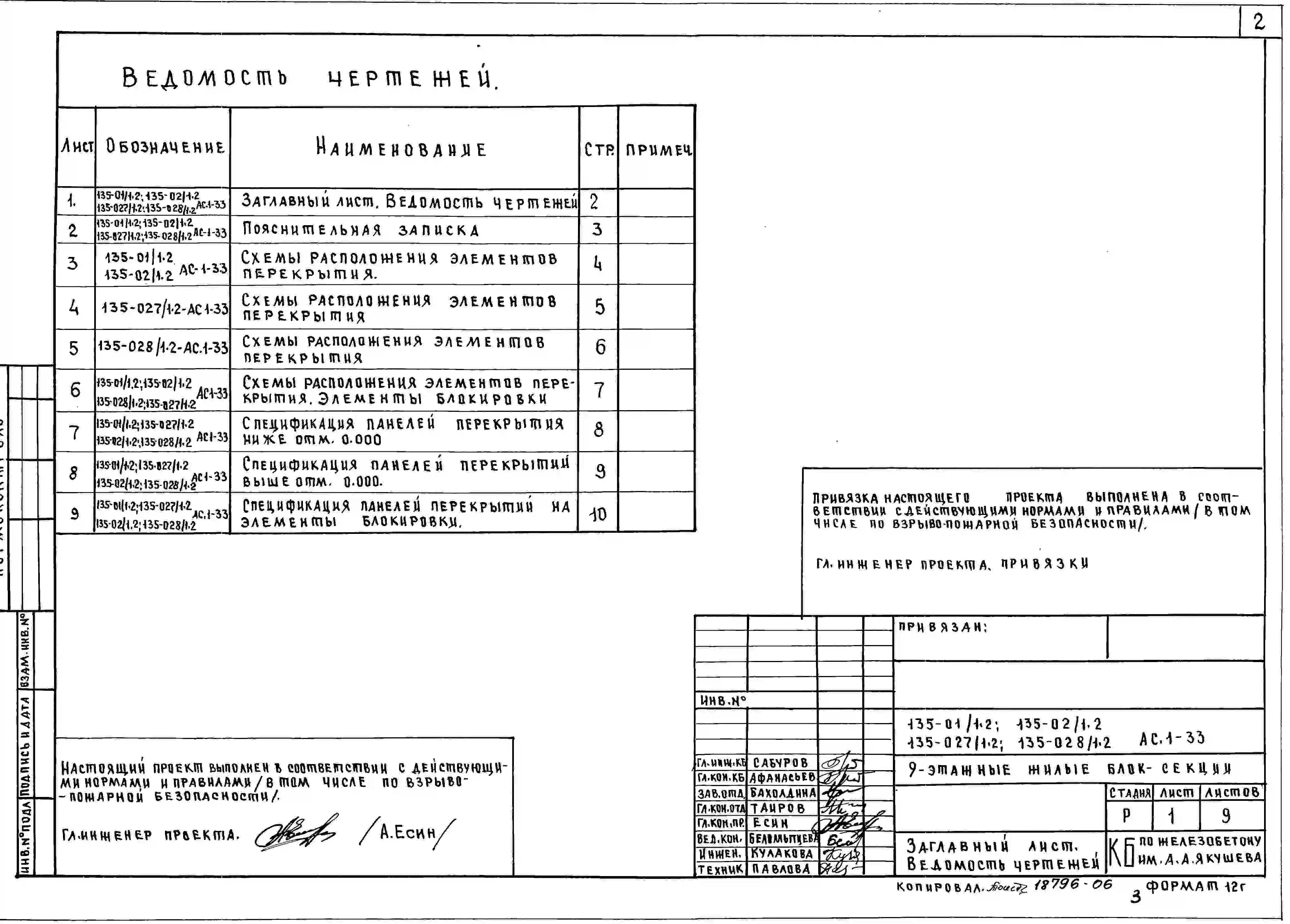 Типовой проект 135-027/1.2 Блок-секция 9-этажная 36 квартирная торцовая левая с рядовым окончанием 1Б-2Б-2Б-3Б