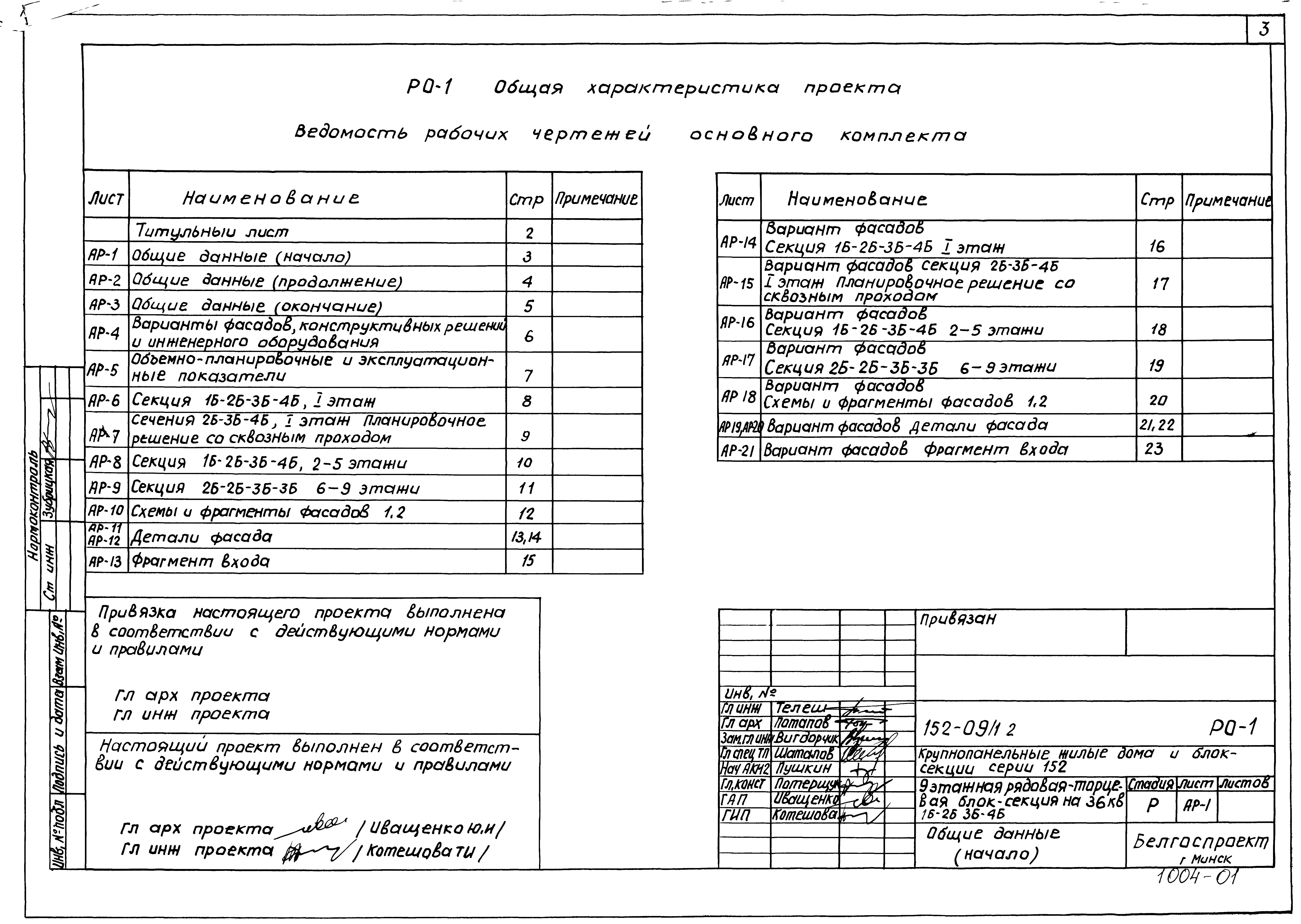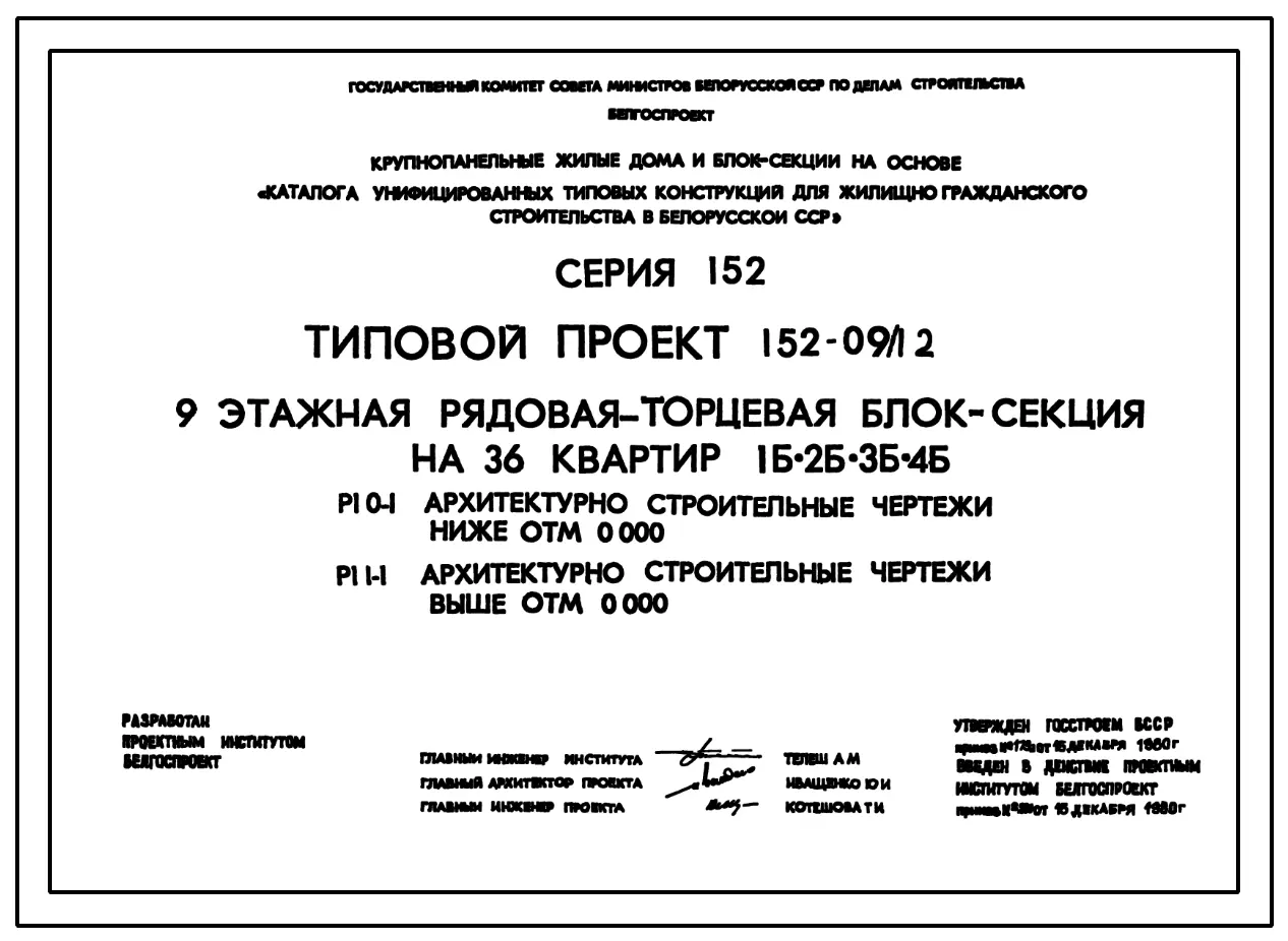 Типовой проект 152-09/1.2 9-этажная рядовая-торцевая блок-секция на 36 квартир 1Б-2Б-3Б-4Б