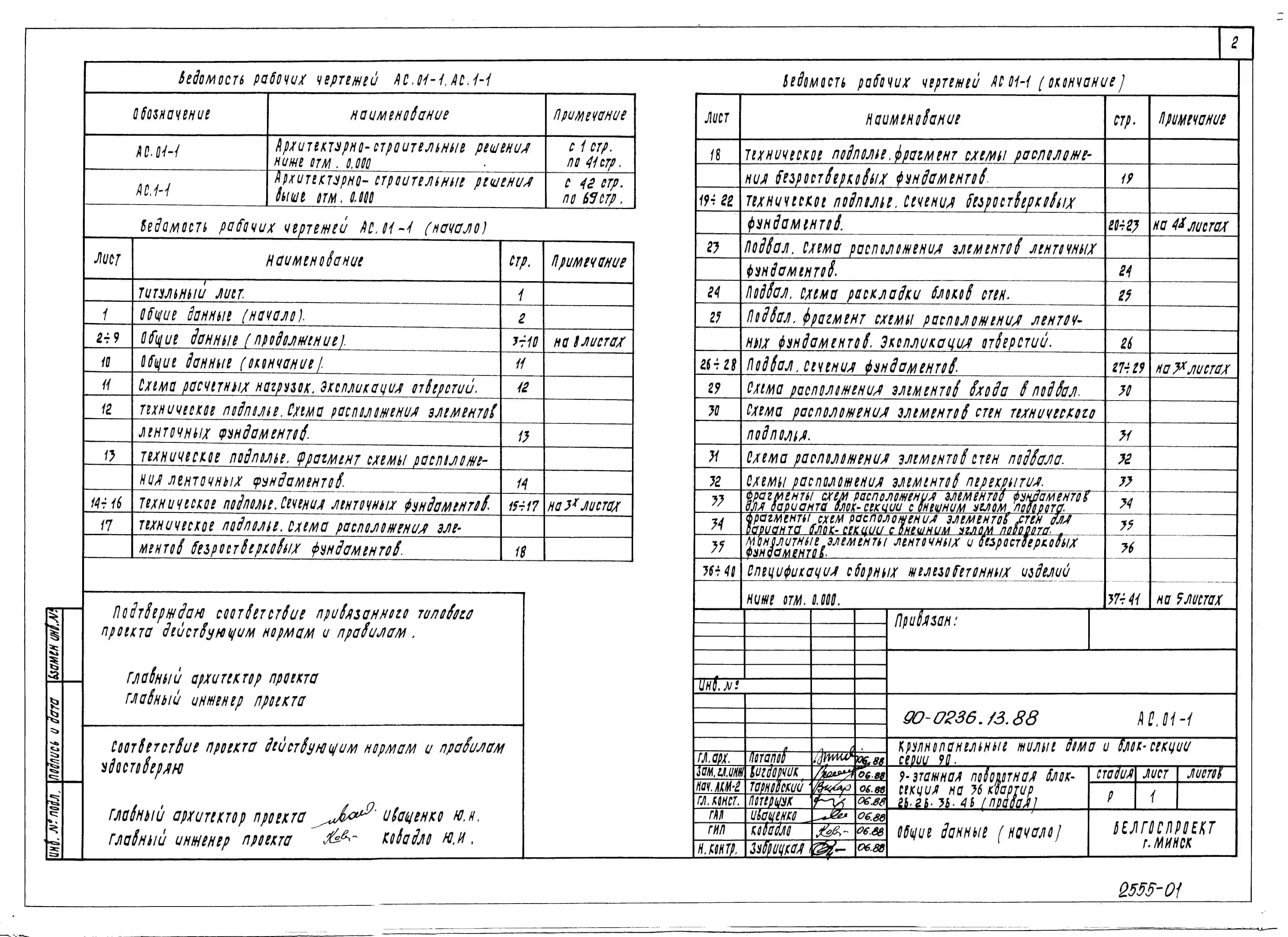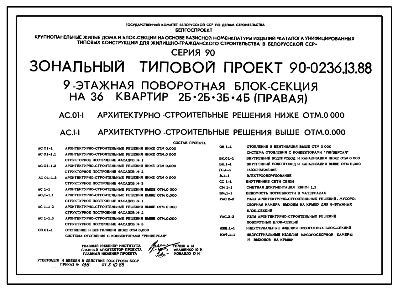 Типовой проект 90-0236.13.88 9-этажная поворотная блок-секция на 36 квартир 2-2-3-4 (правая) (для строительства в Белорусской ССР)
