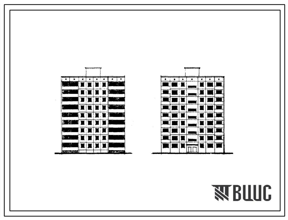 Типовой проект 1-464Д-0115 Девятиэтажная крупнопанельная торцевая (левая) блок-секция на 36 квартир (однокомнатных-9, двухкомнатных-9, трехкомнатных-9, четырехкомнатных-9). Для строительства в районах с расчетной наружной температурой -39 0С.