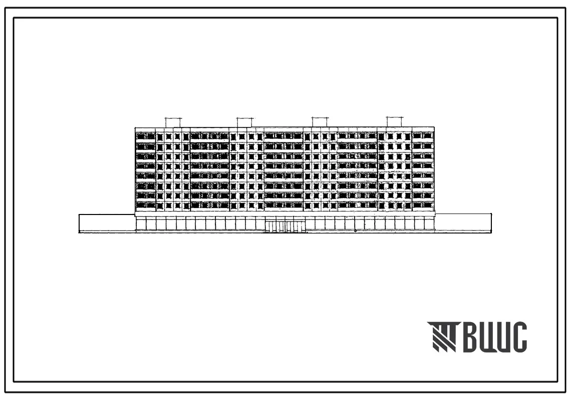 Типовой проект 1-464Д-129 9-этажный 4-секционный крупнопанельный 128-квартирный дом с магазином в первом этаже для строительства во 2 и 3 строительно-климатических зонах.