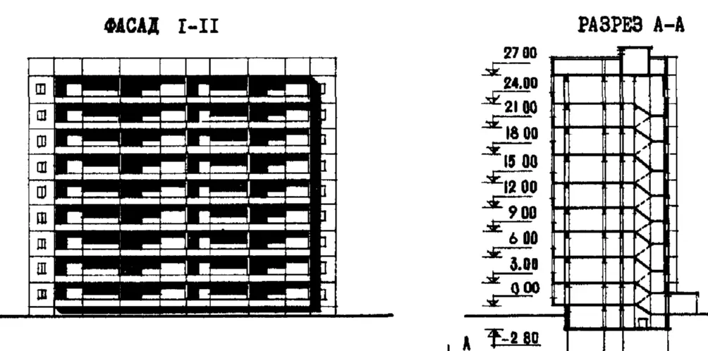 Типовой проект сп/I Дом девятиэтажный двухсекционный 54-квартирный крупнопанельный типа 2Б.