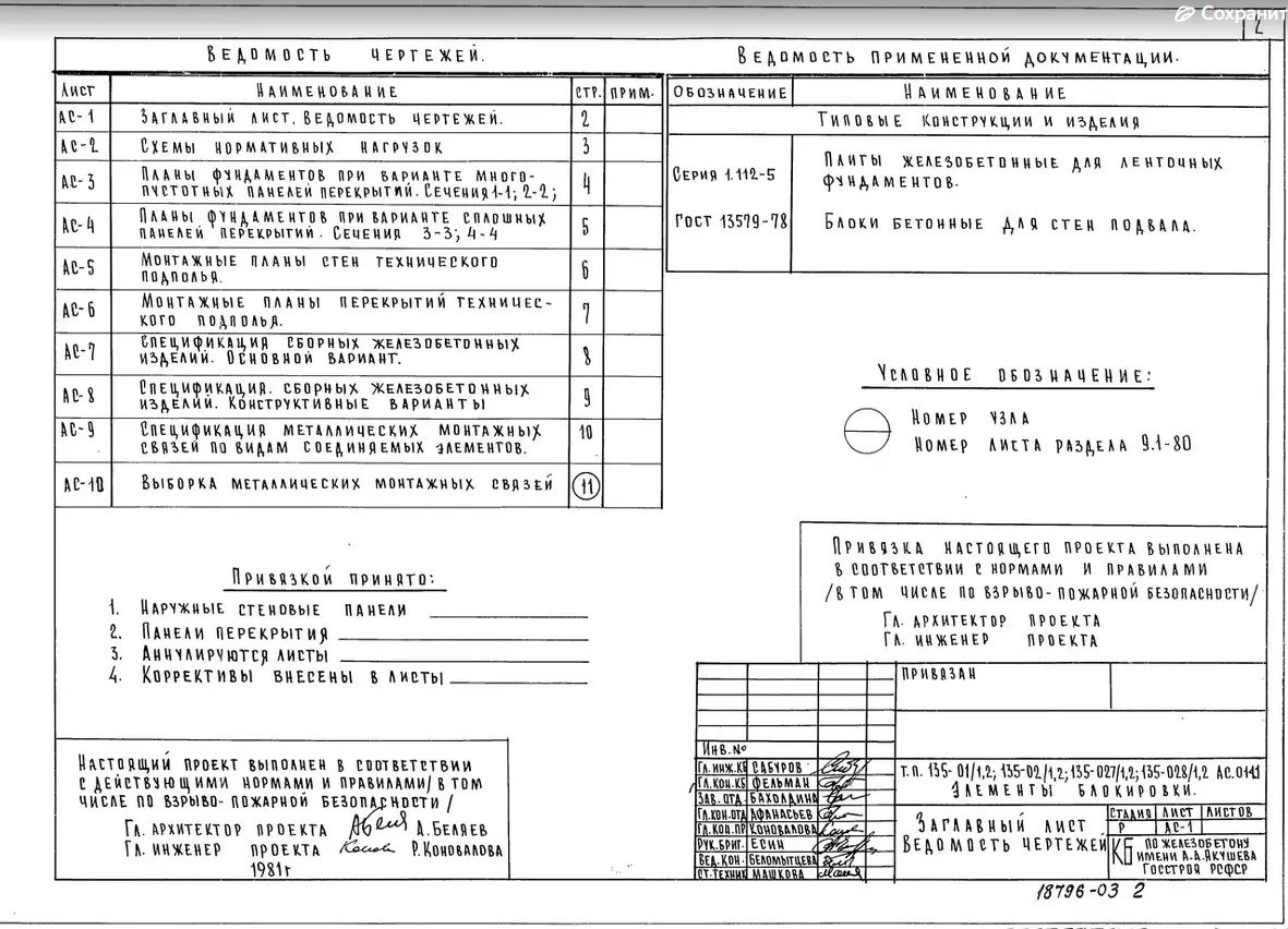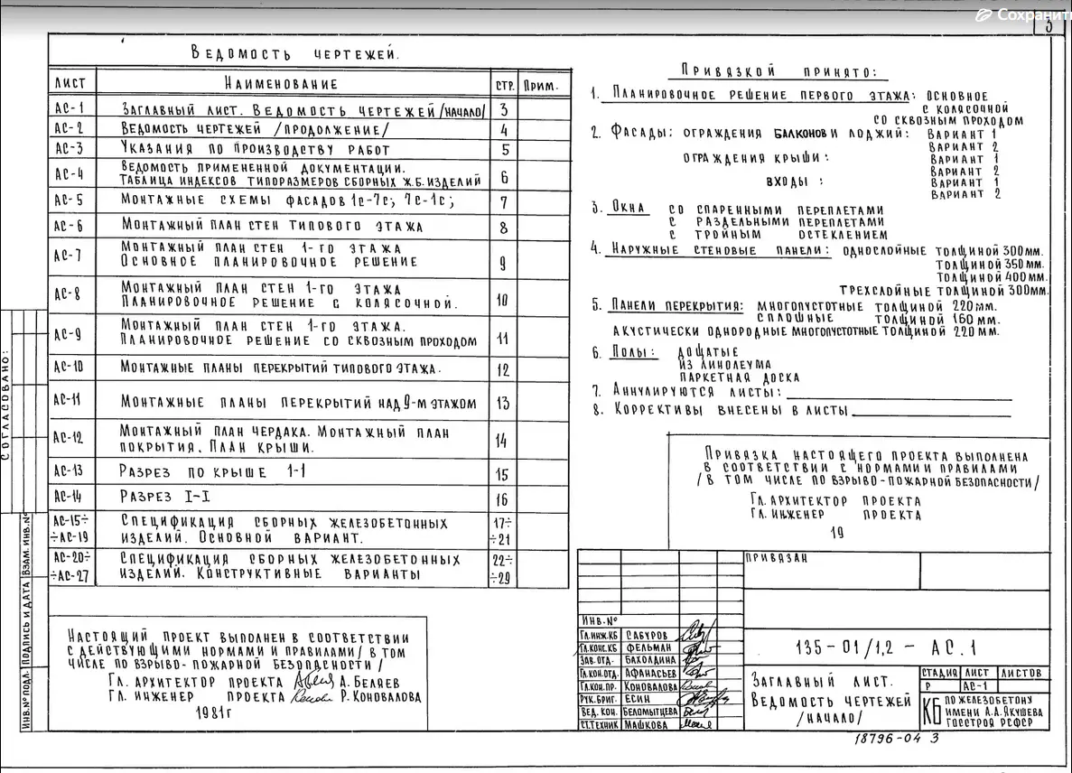 - наличия/отсутствия в конкретном проекте (при наличии чертежей, а не только паспорта проекта) нужных разделов