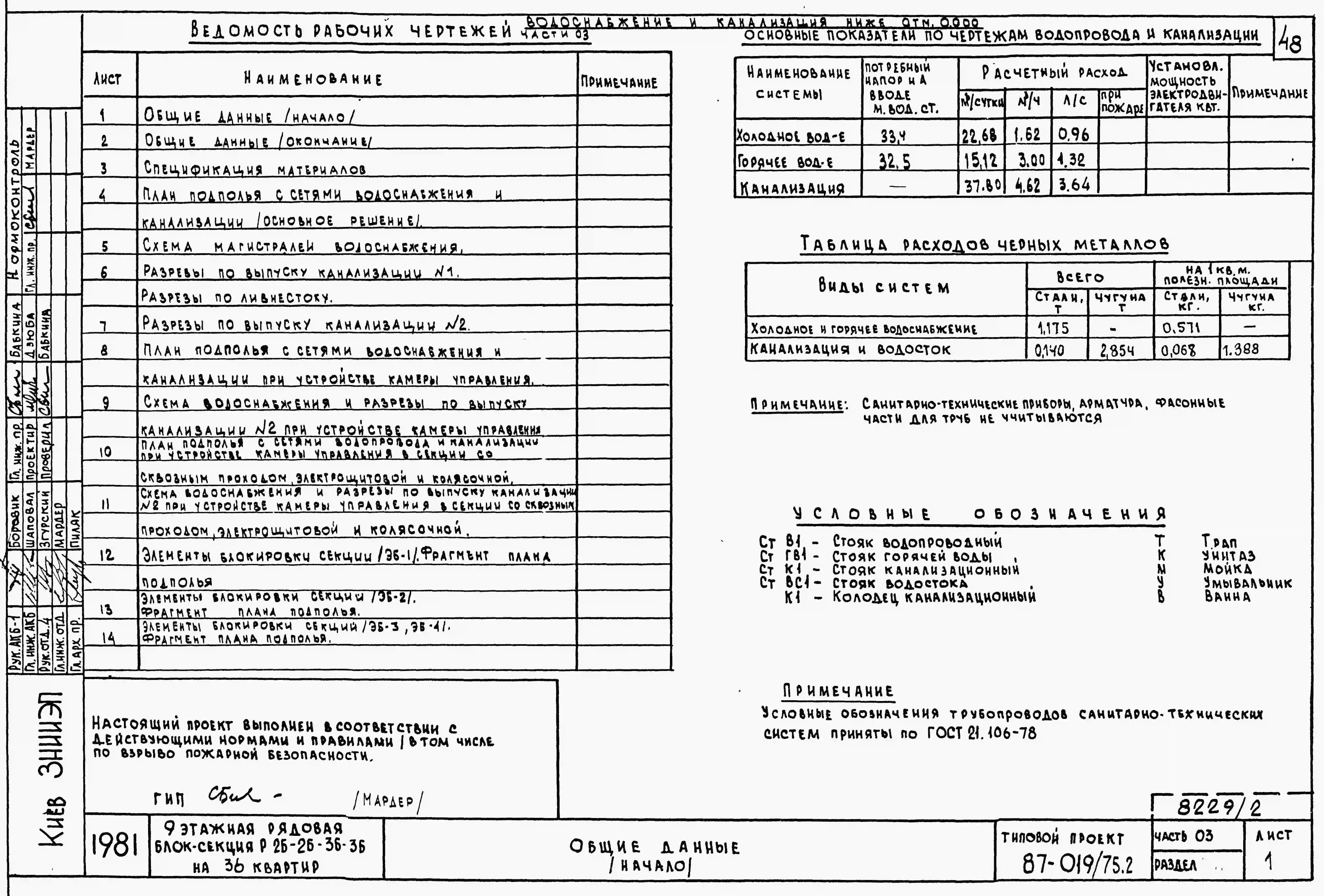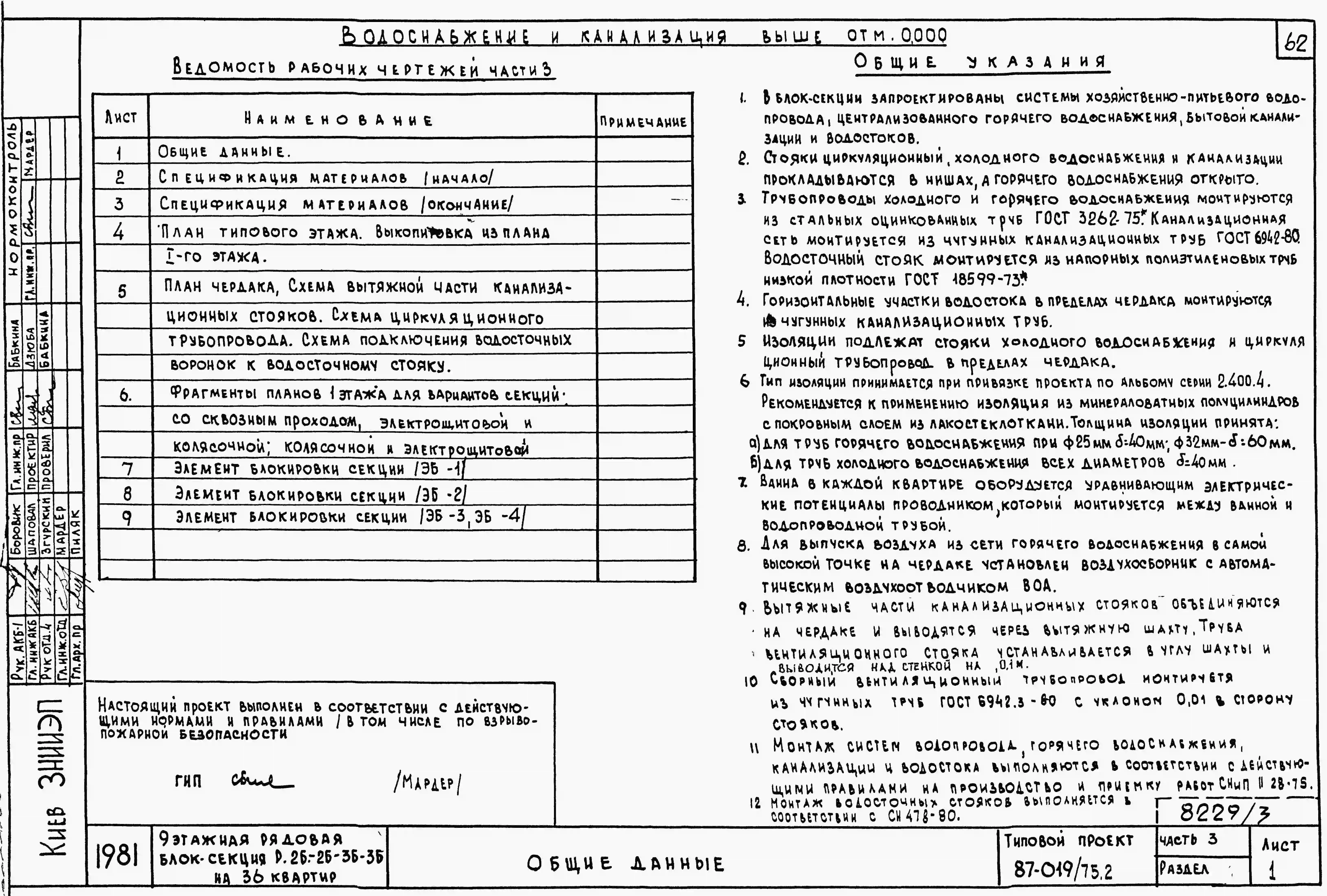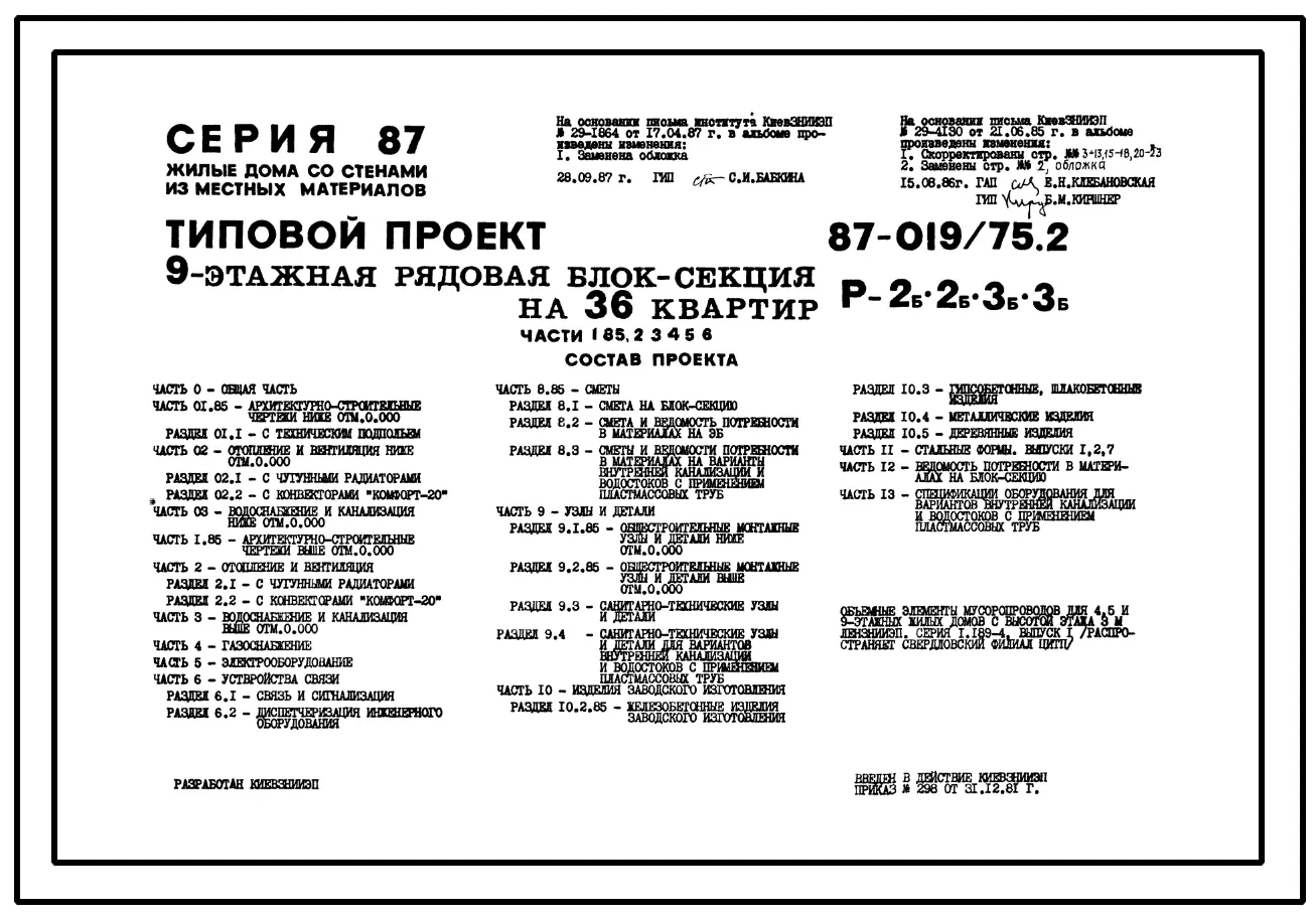 Типовой проект 87-019/75.2 9-этажная рядовая блок-секция Р-2Б-2Б-3Б-3Б на 36 квартир