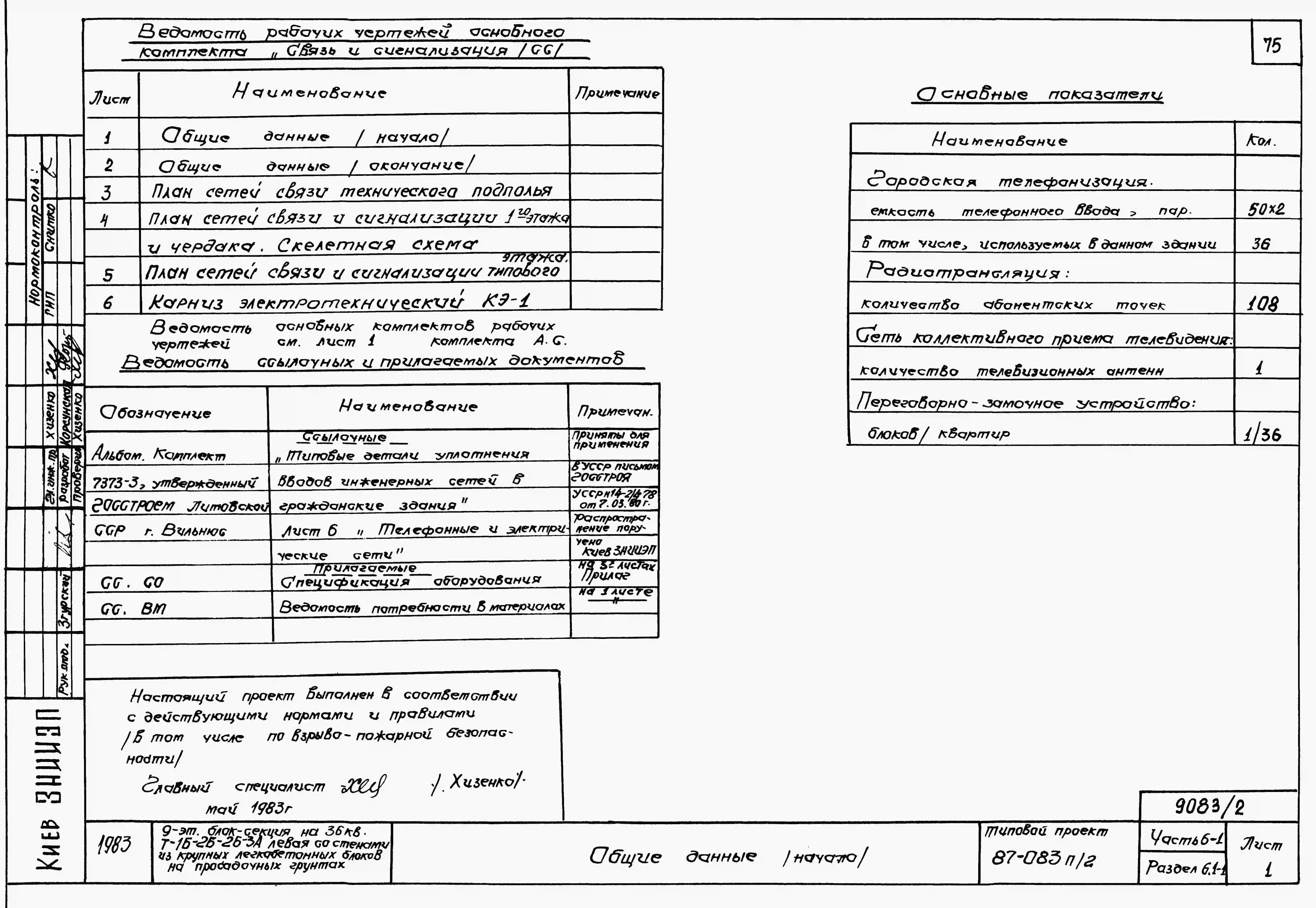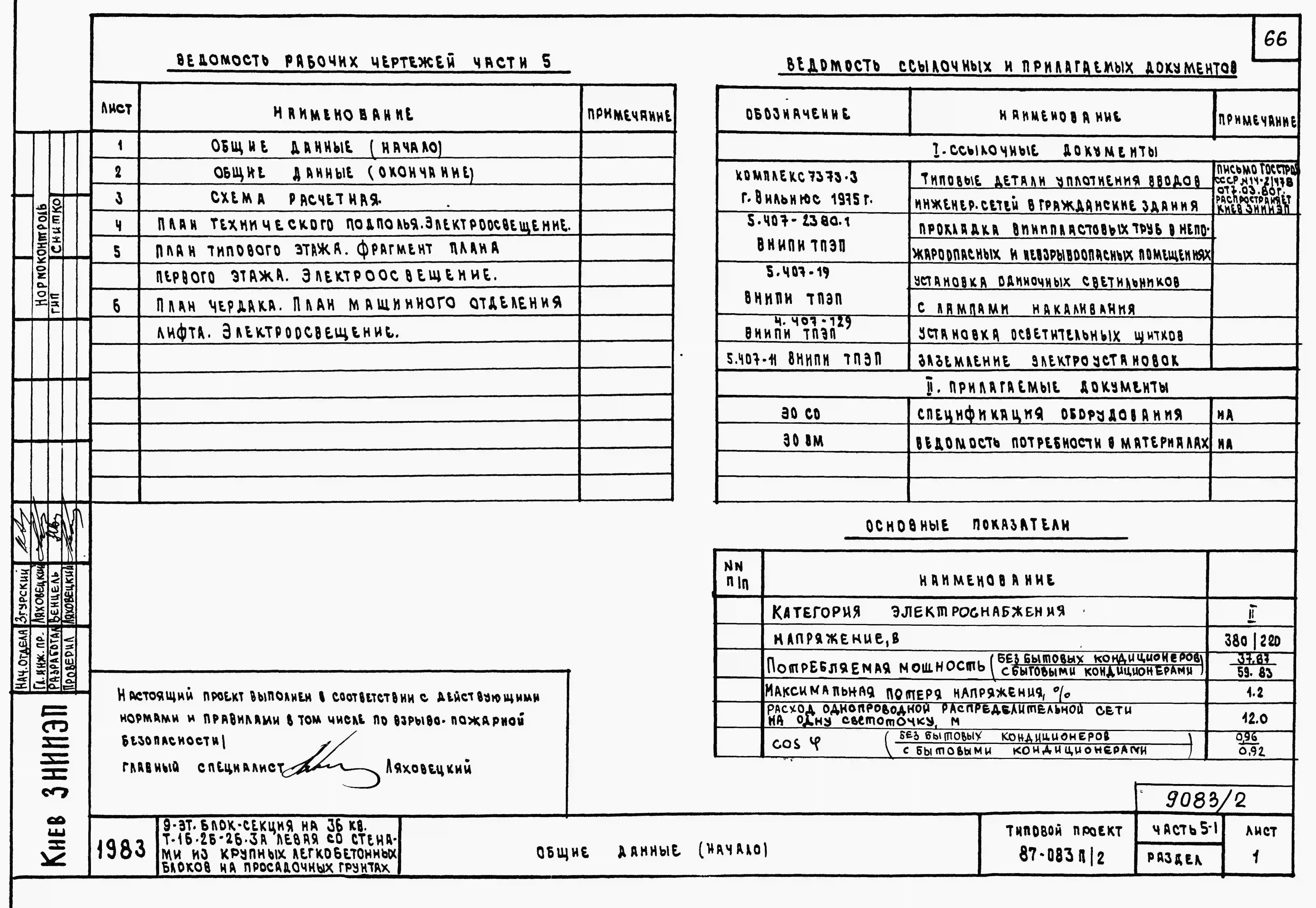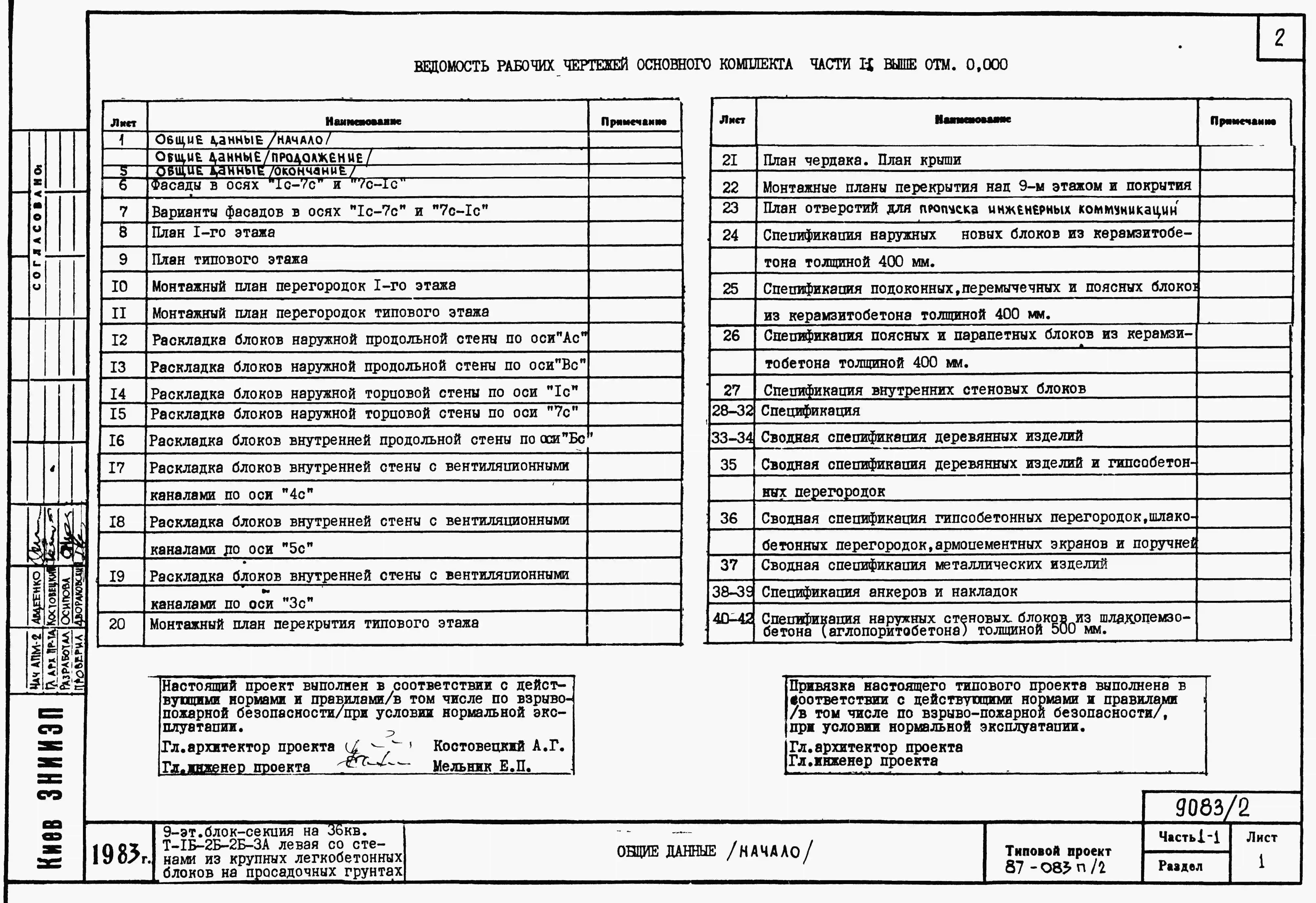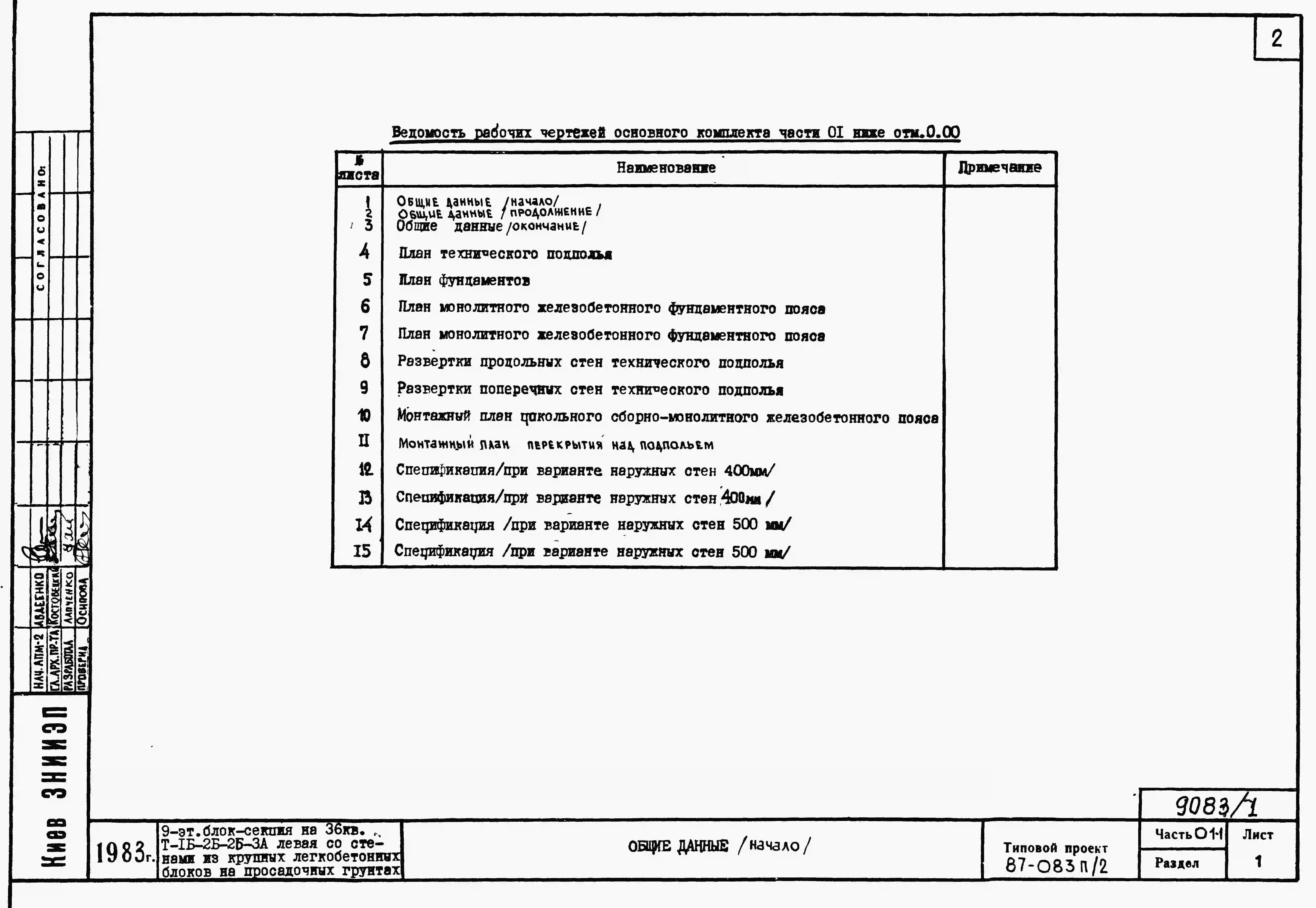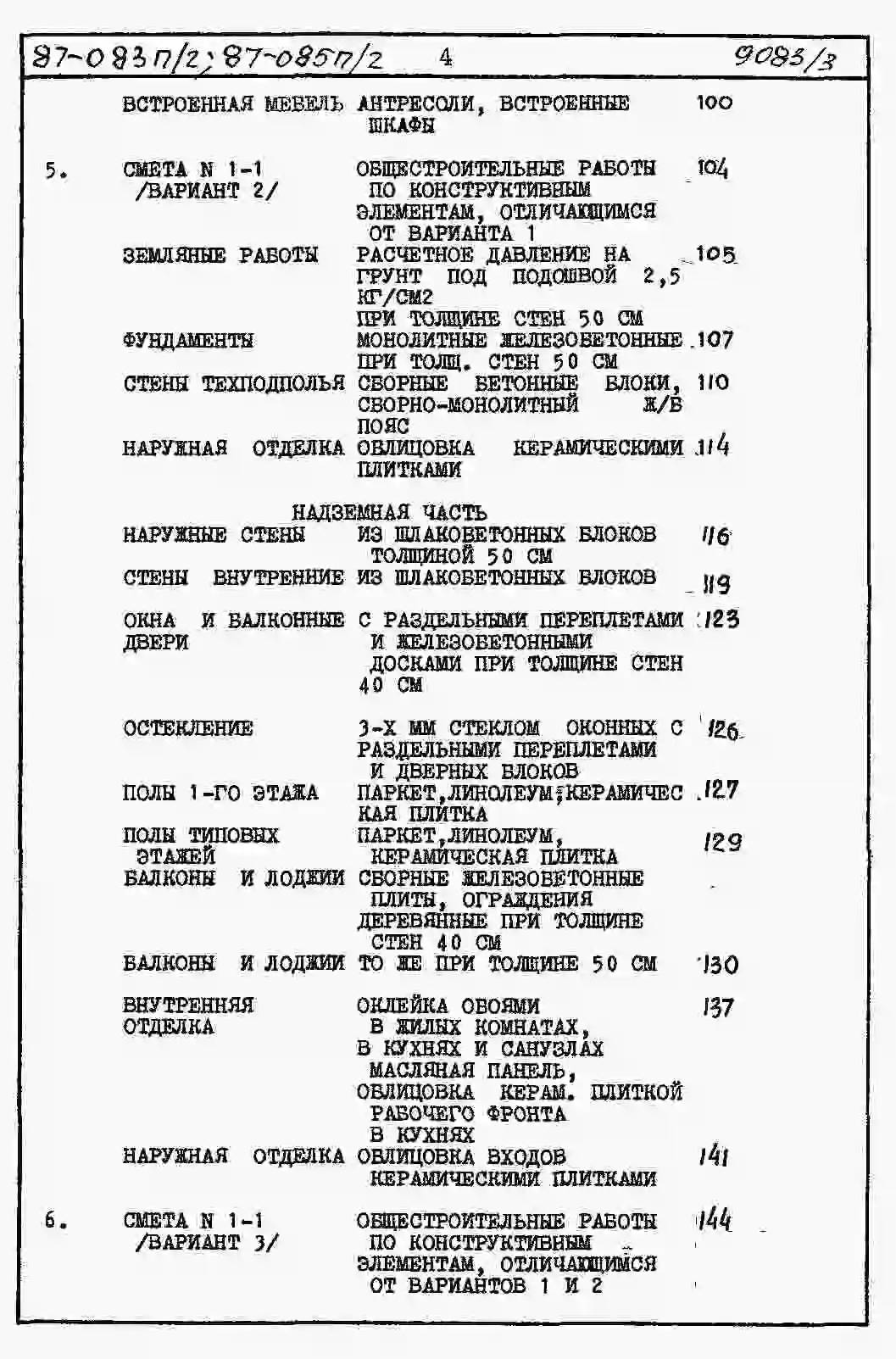 Типовой проект 87-083п/2 Блок-секция торцовая левая 9-этажная 36-квартирная Т-1Б-2Б-2Б-3А