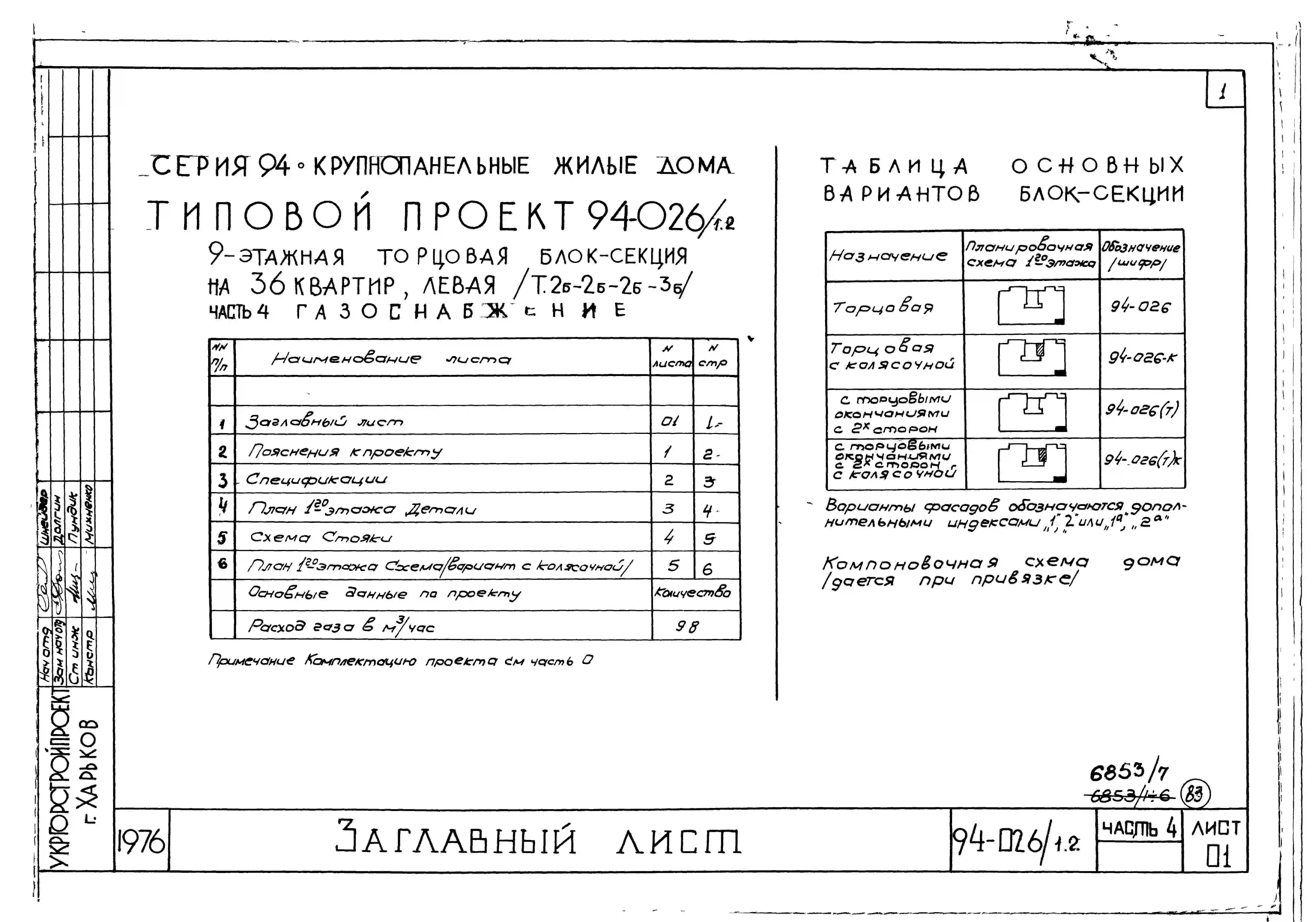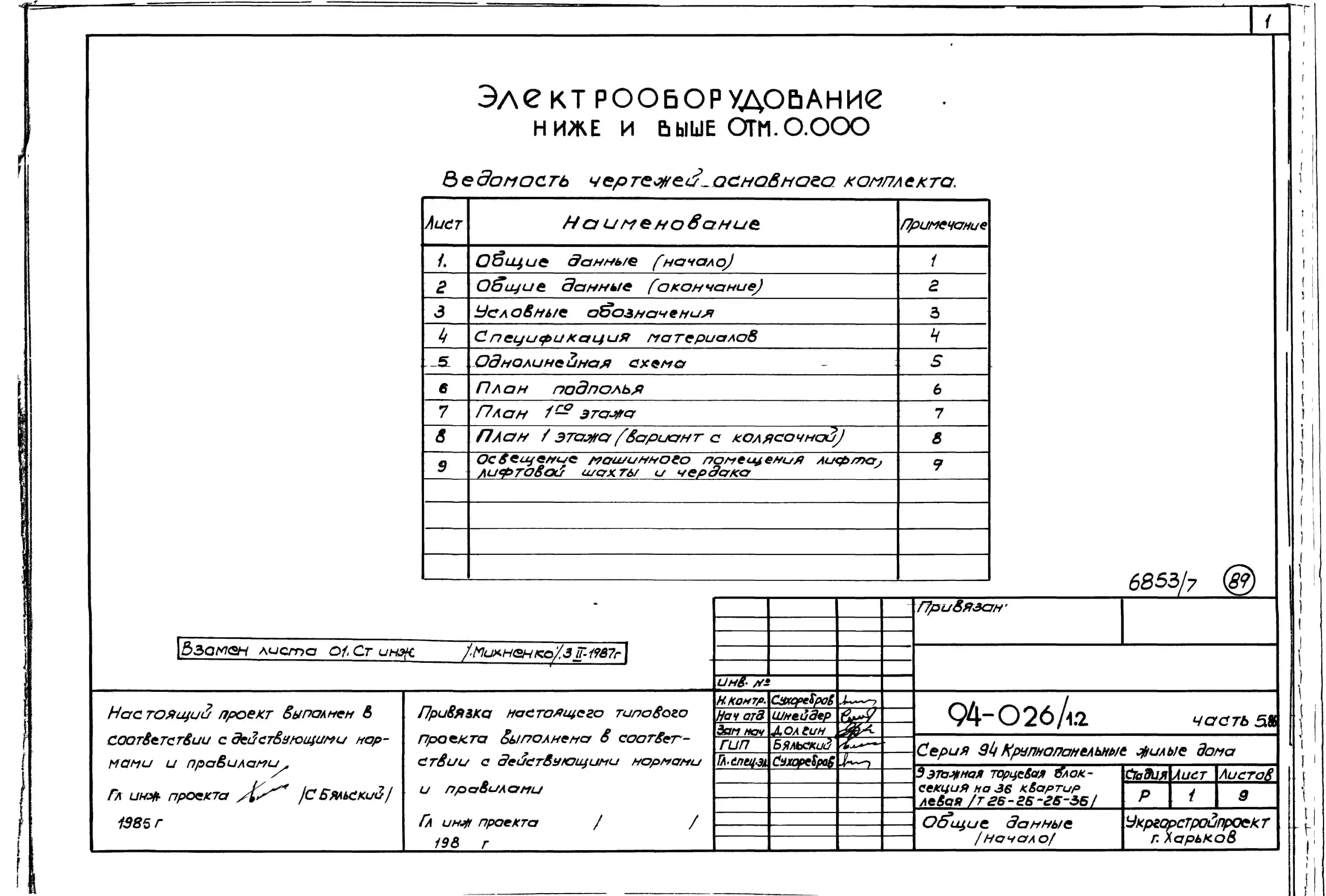 Типовой проект 94-026/1.2 Блок-секция 9-этажная 36-квартирная рядовая с торцовая, левая 2Б-2Б-2Б-3Б