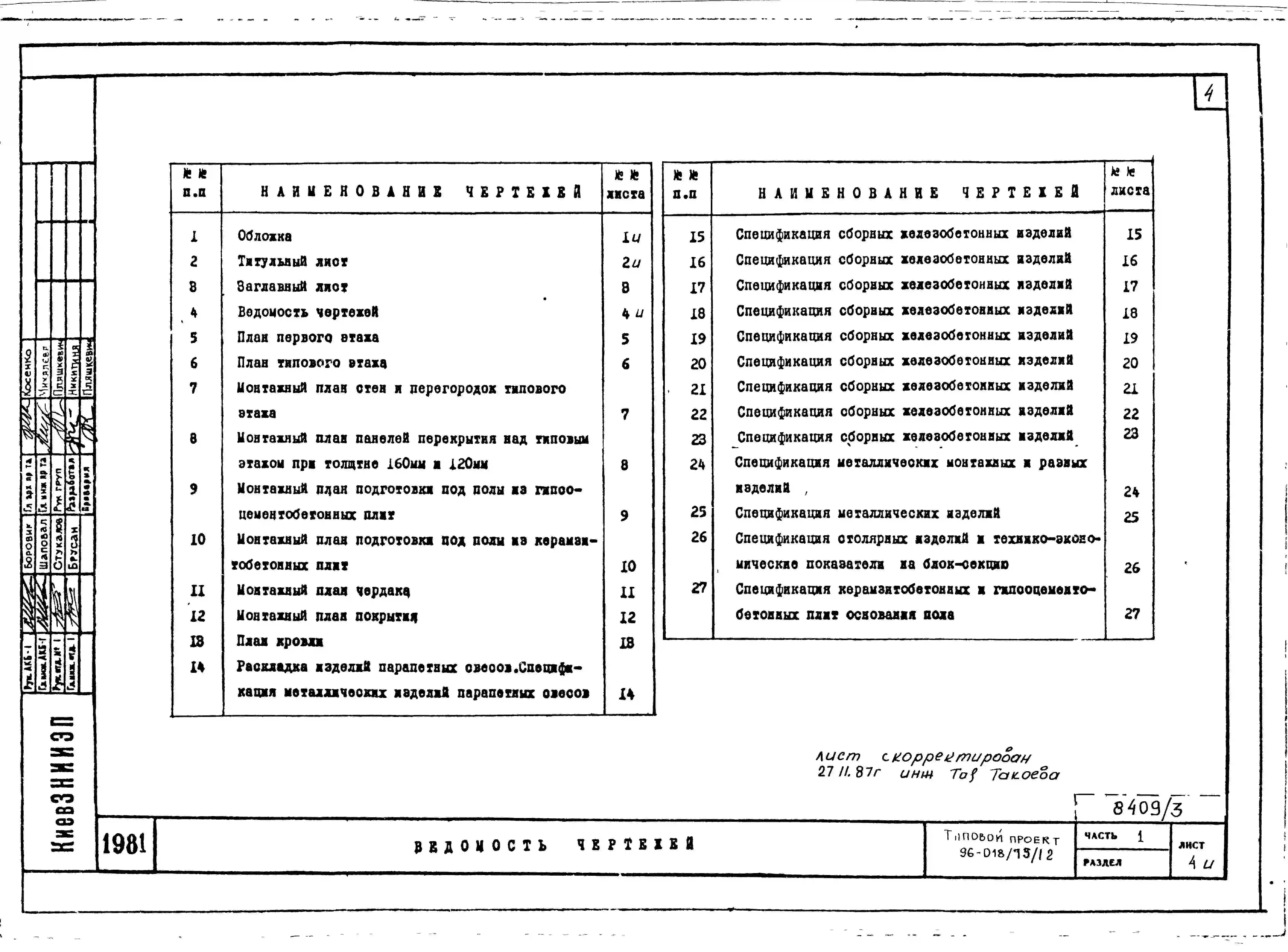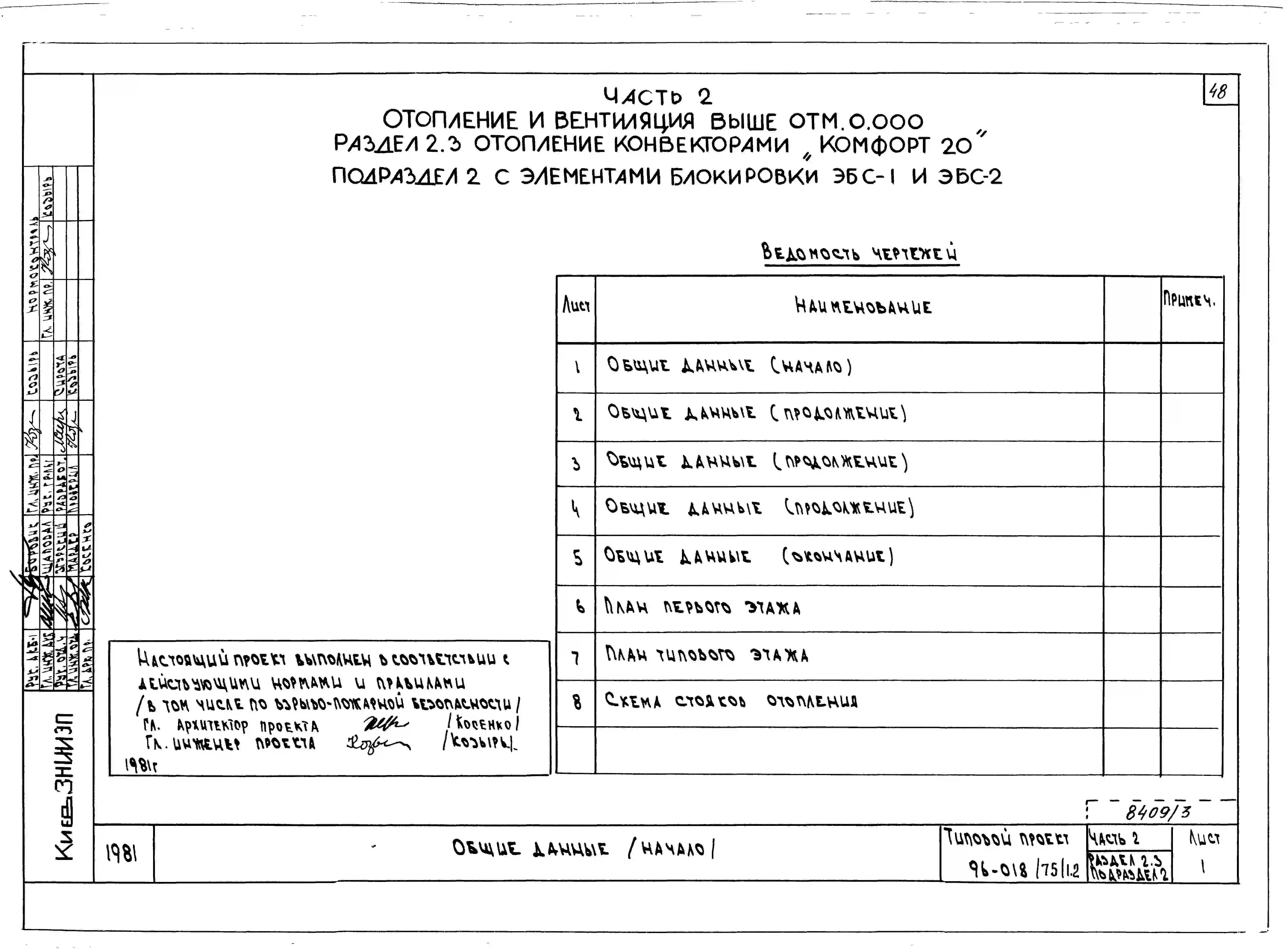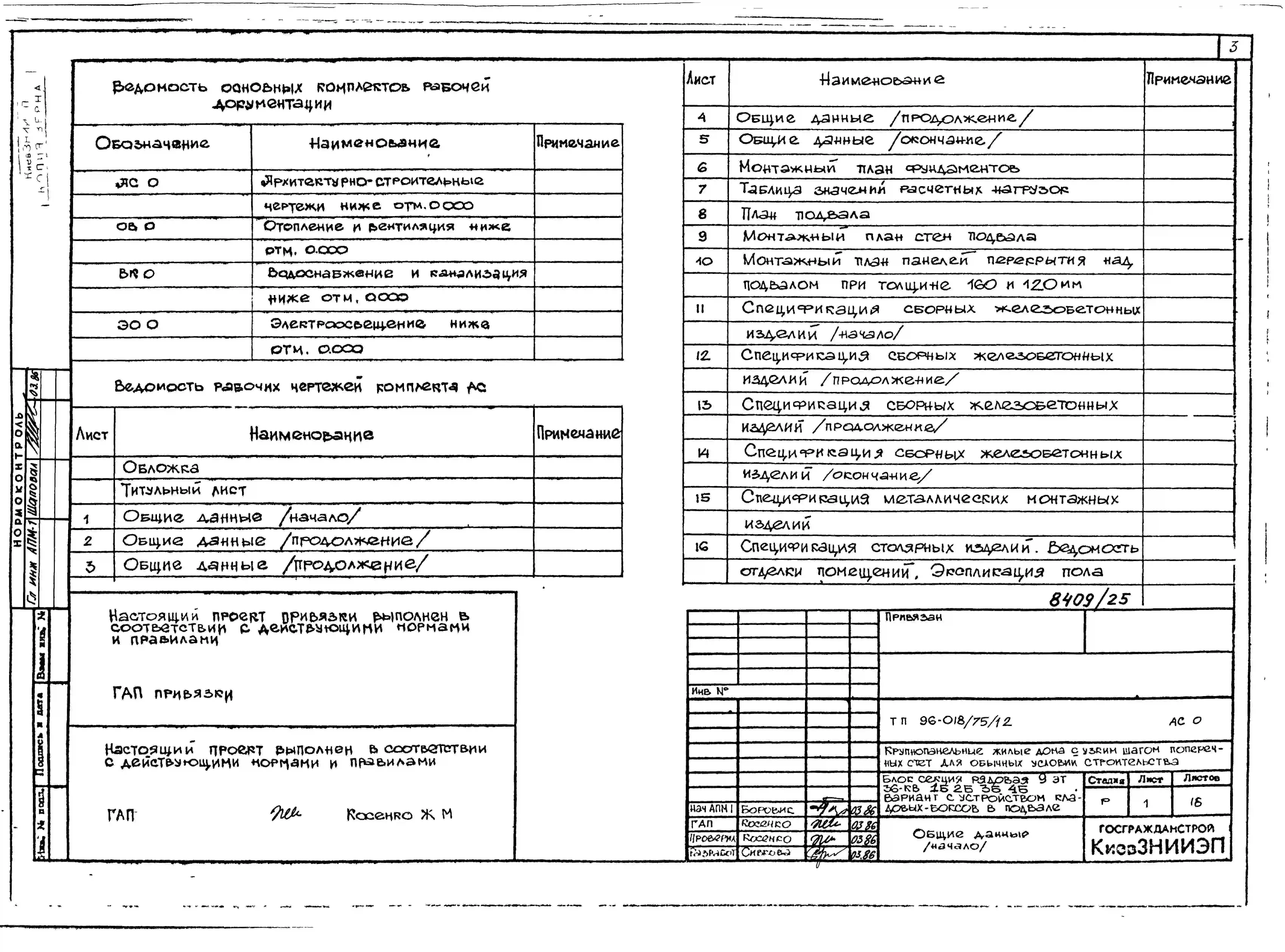 Типовой проект 96-018/75/1.2 Блок-секция рядовая 9-этажная 36-квартирная 1Б-2Б-3Б-4Б