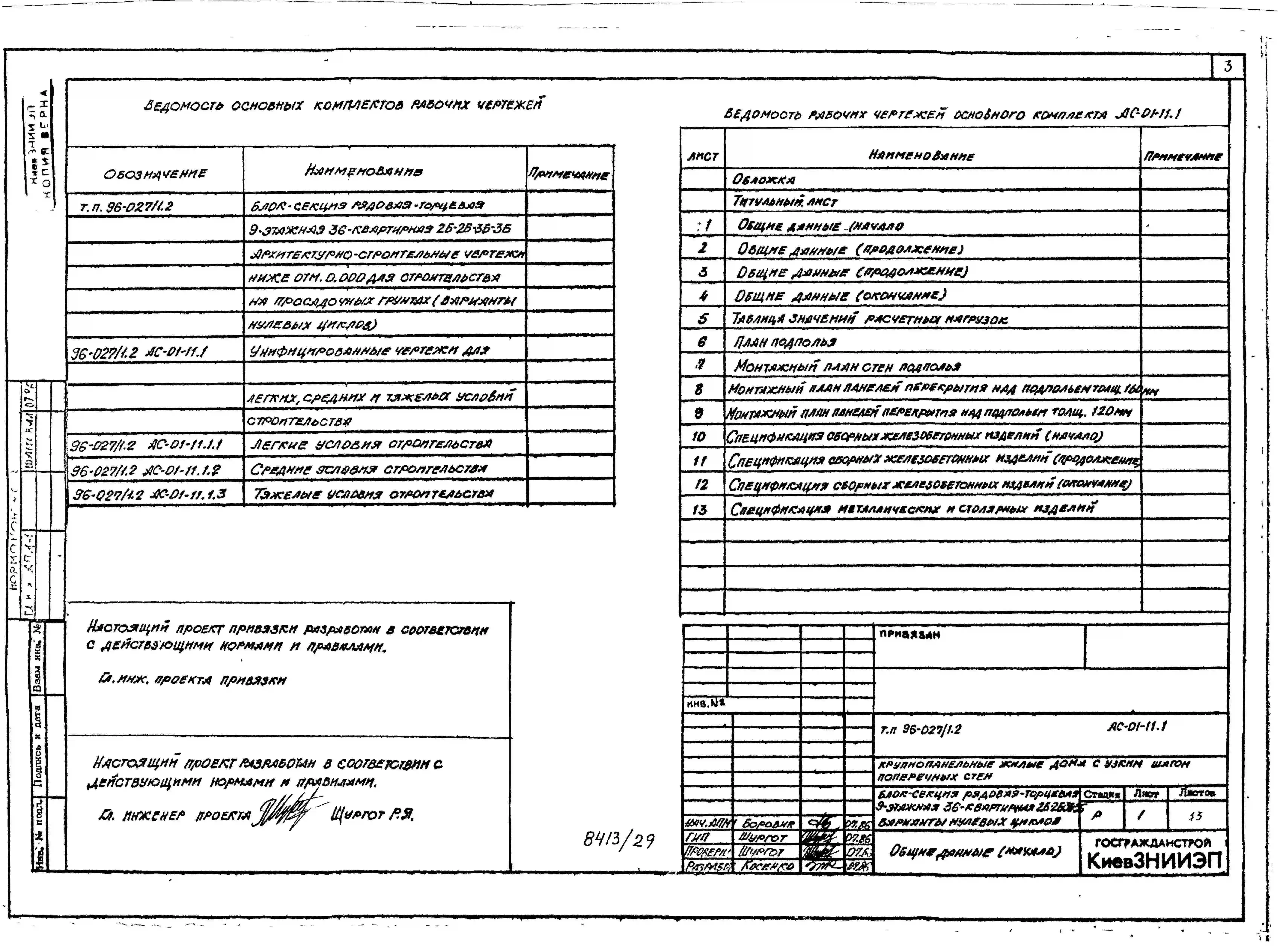 Типовой проект 96-027/1.2 Блок-секция рядовая-торцевая 9-этажная 36-квартирная РТ 2Б-2Б-3Б-3Б