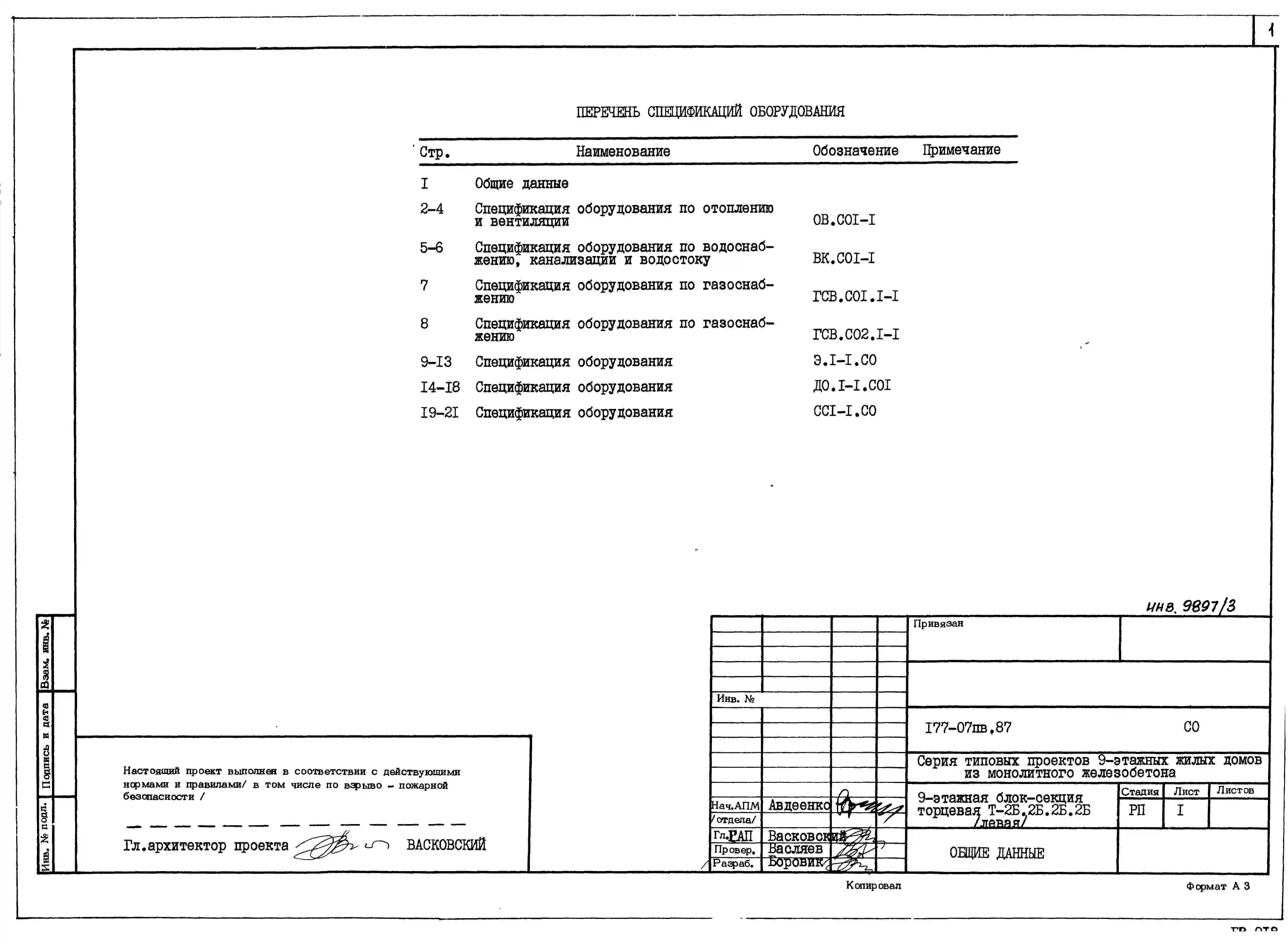 Типовой проект 177-07пв.87 9-этажная блок-секция рядовая 2, 2, 3, 3, 36-квартирная