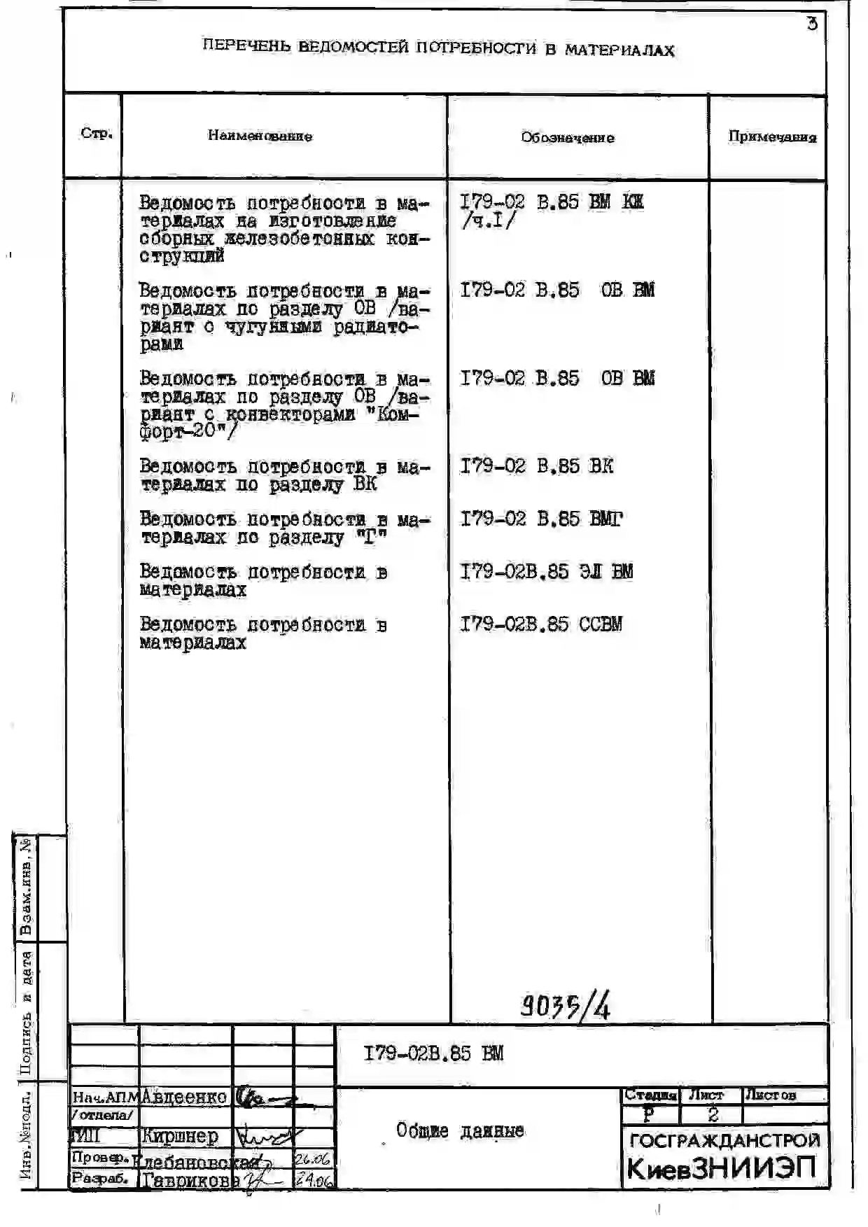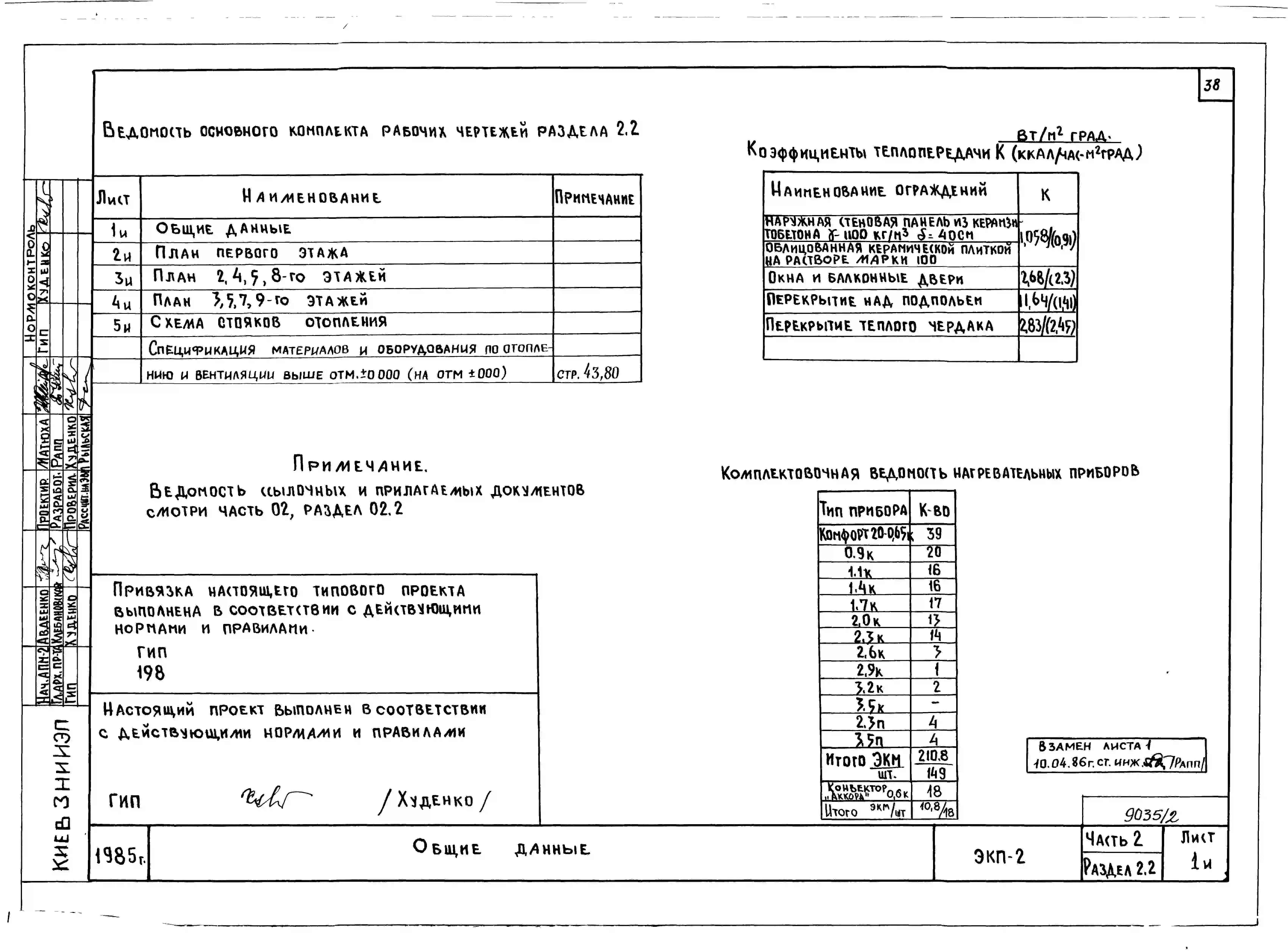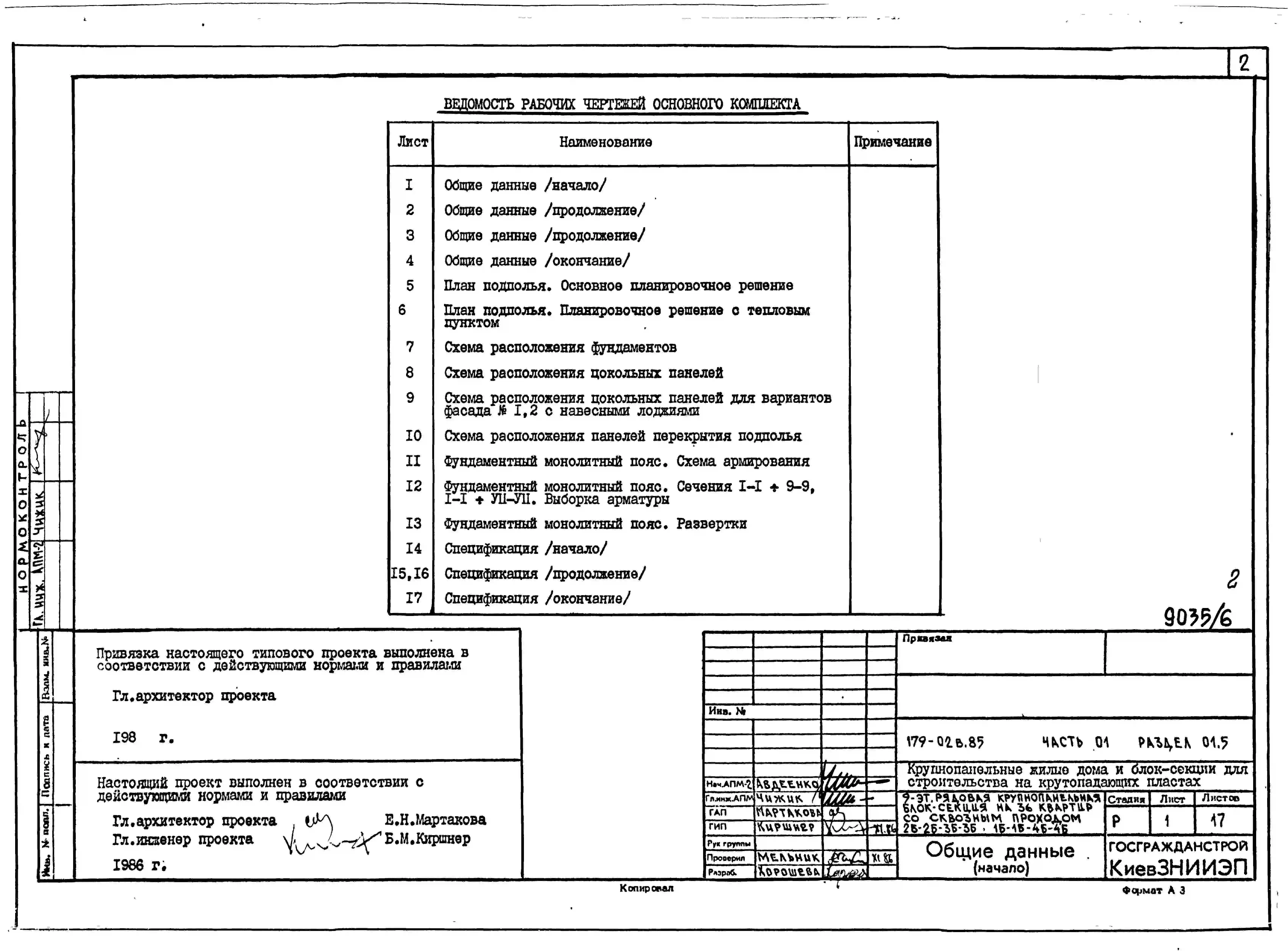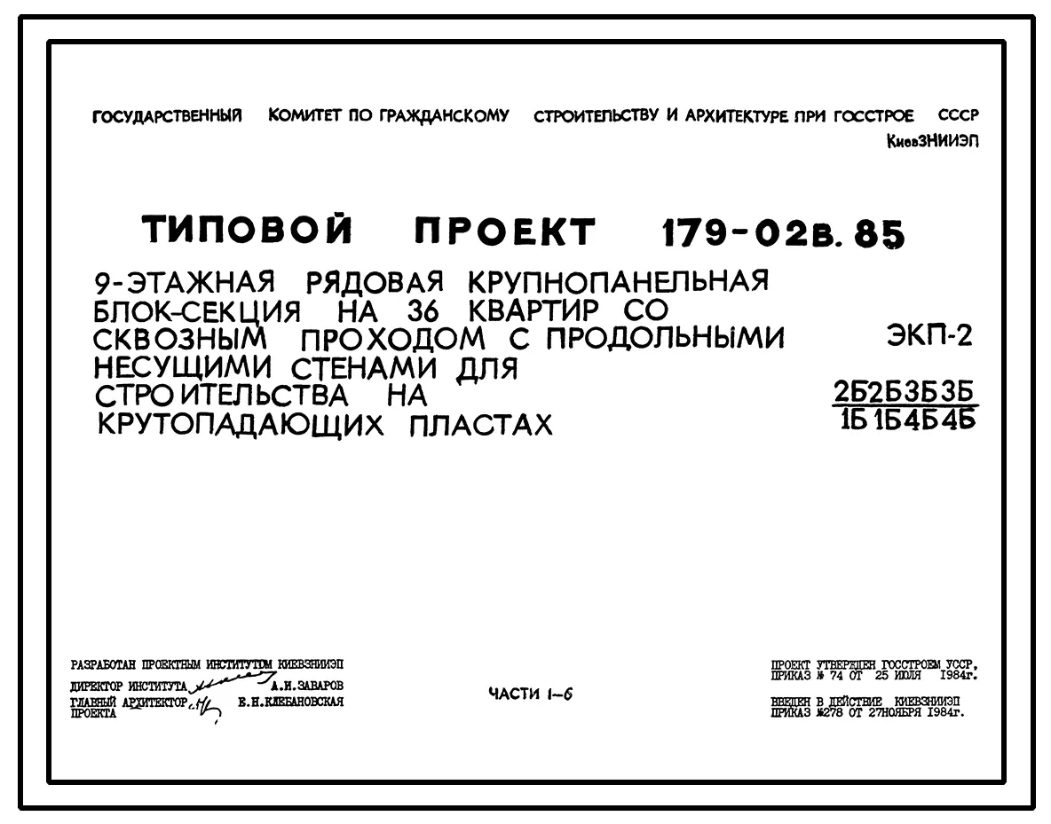 Типовой проект 179-02в.85 Блок-секция рядовая (торцевая) 9-этажная 36-квартирная для Пантелеймоновского ЖБИ /ЭКП-2/
