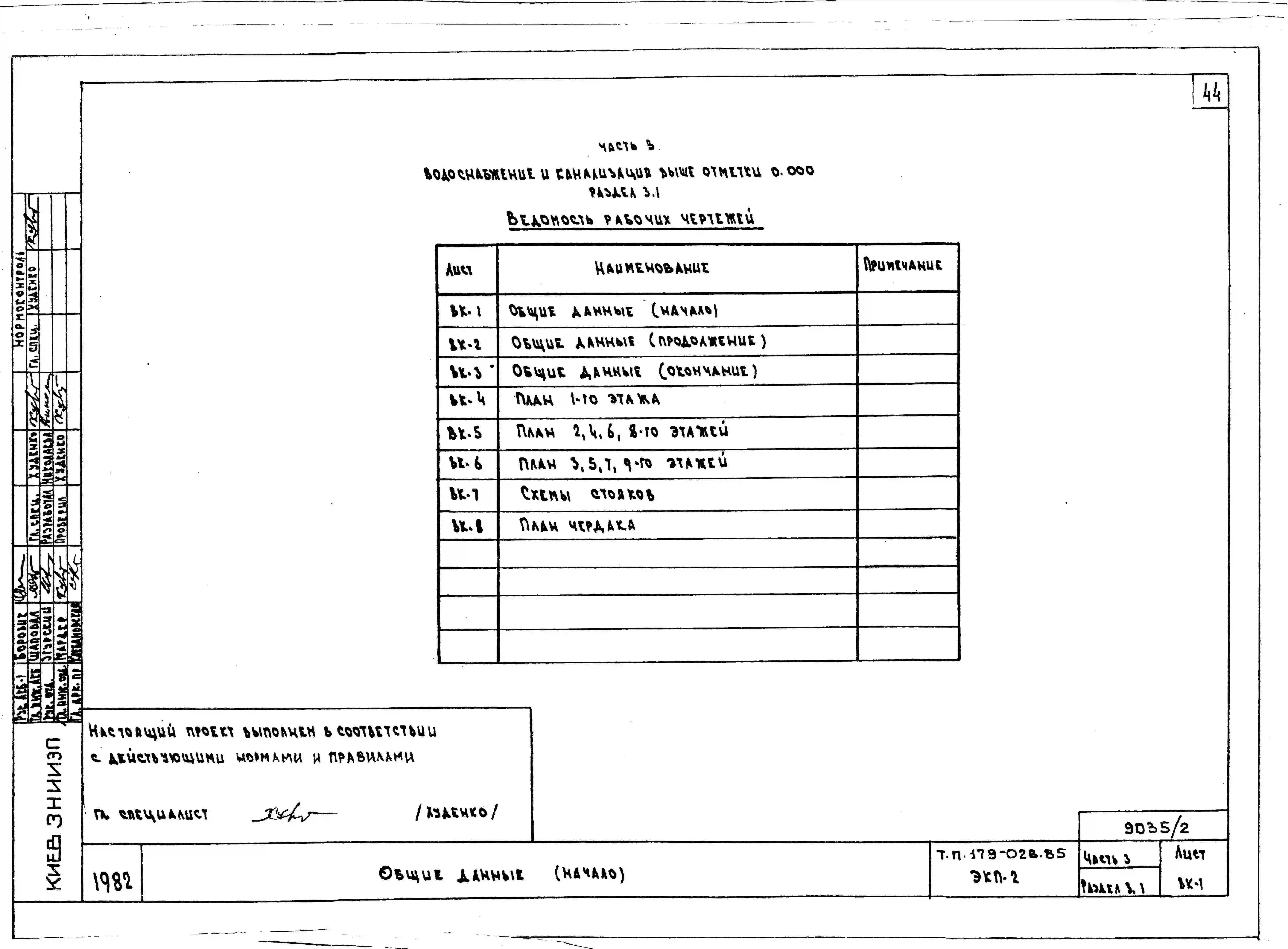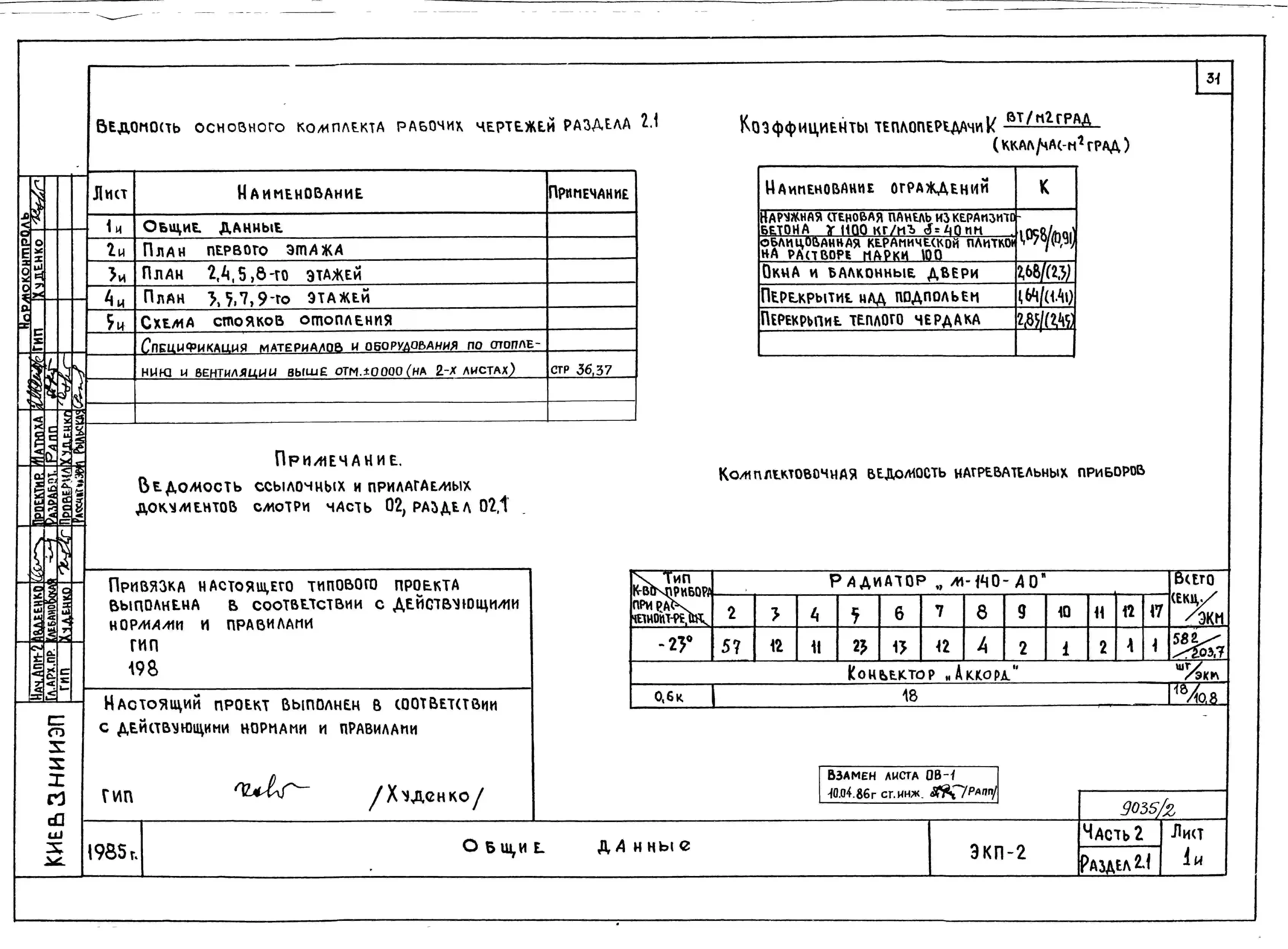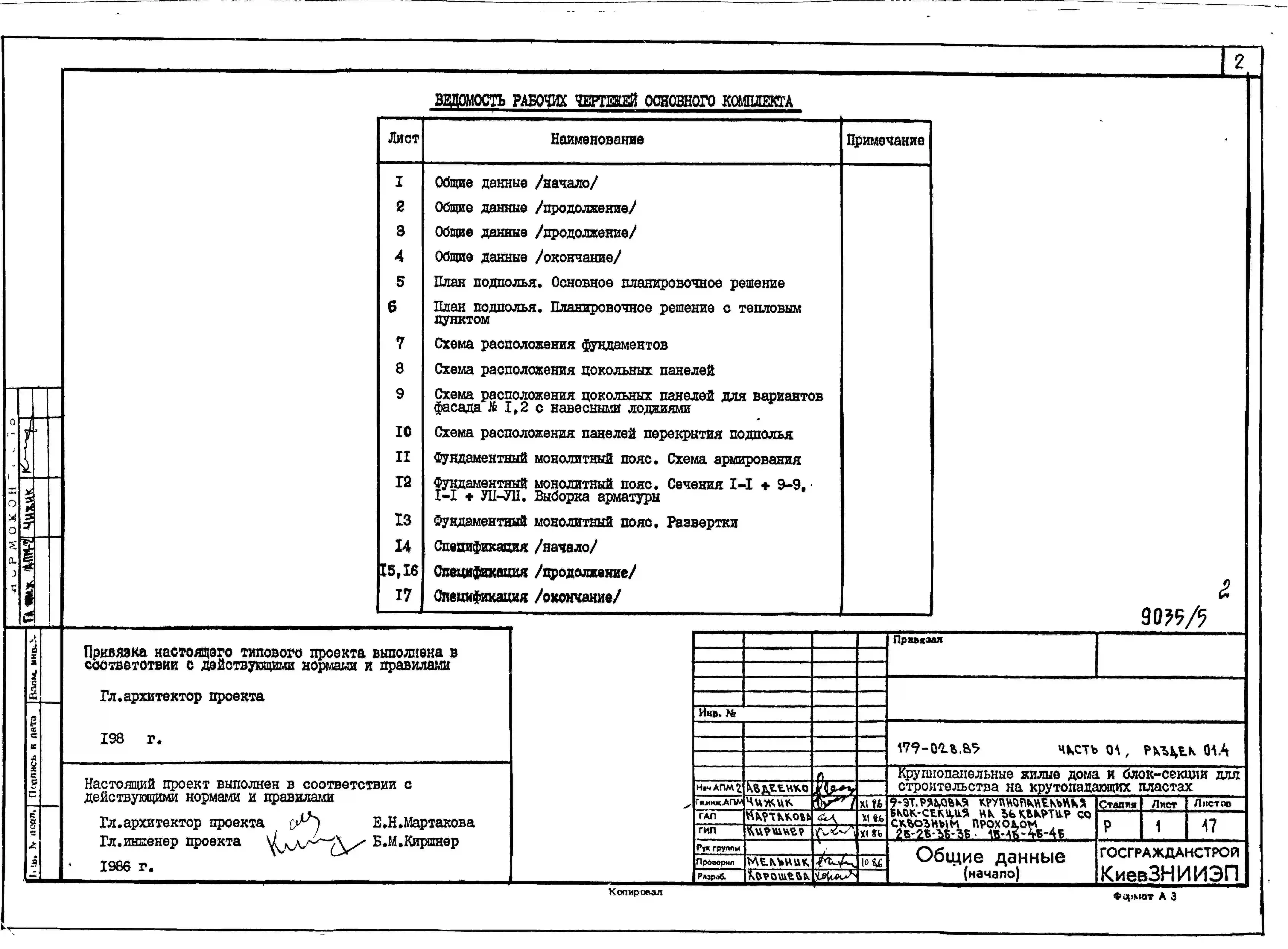 Типовой проект 179-02в.85 Блок-секция рядовая (торцевая) 9-этажная 36-квартирная для Пантелеймоновского ЖБИ /ЭКП-2/