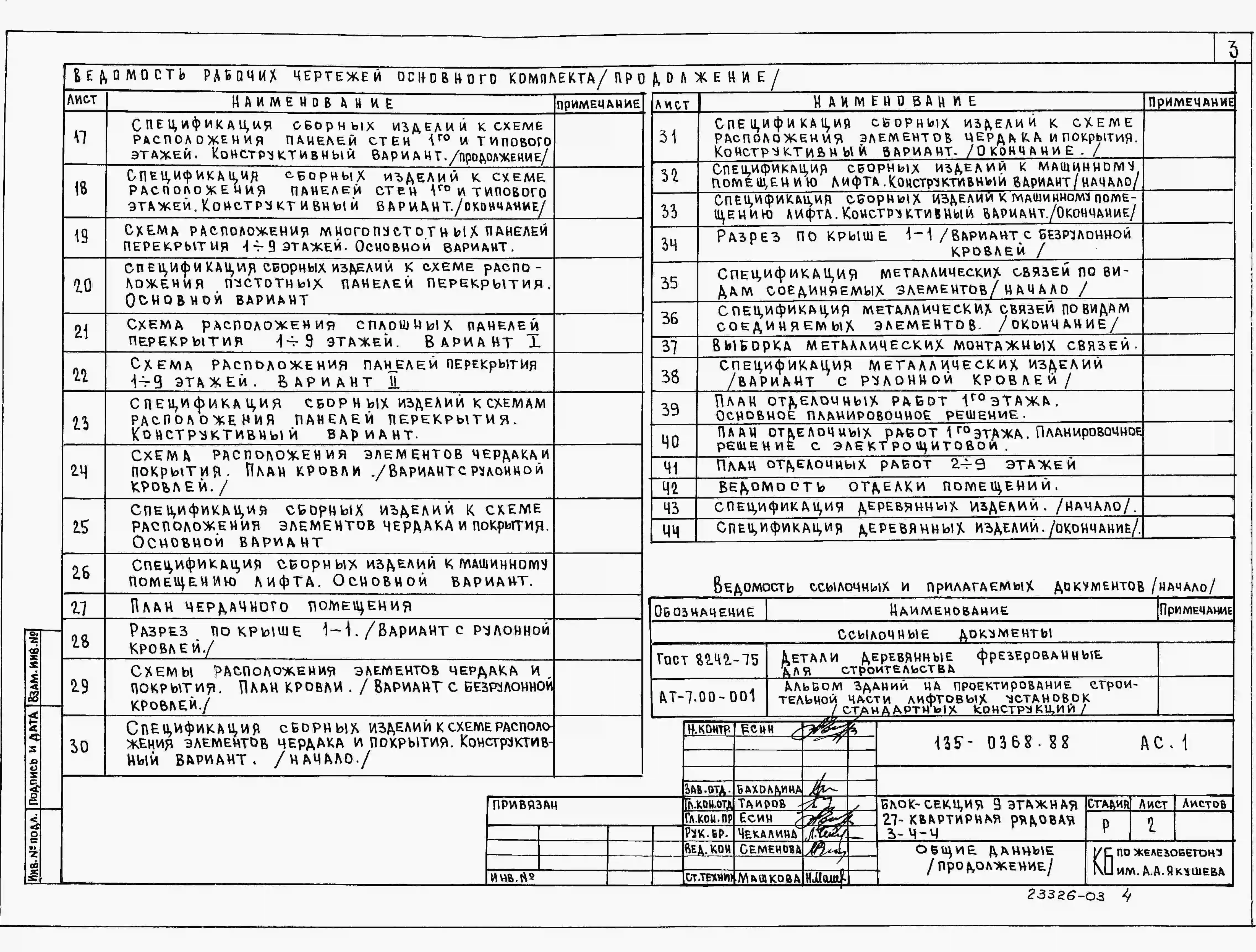 Типовой проект 135-0368.88 Блок-секция 9-этажная 27-квартирная рядовая 3-4-4