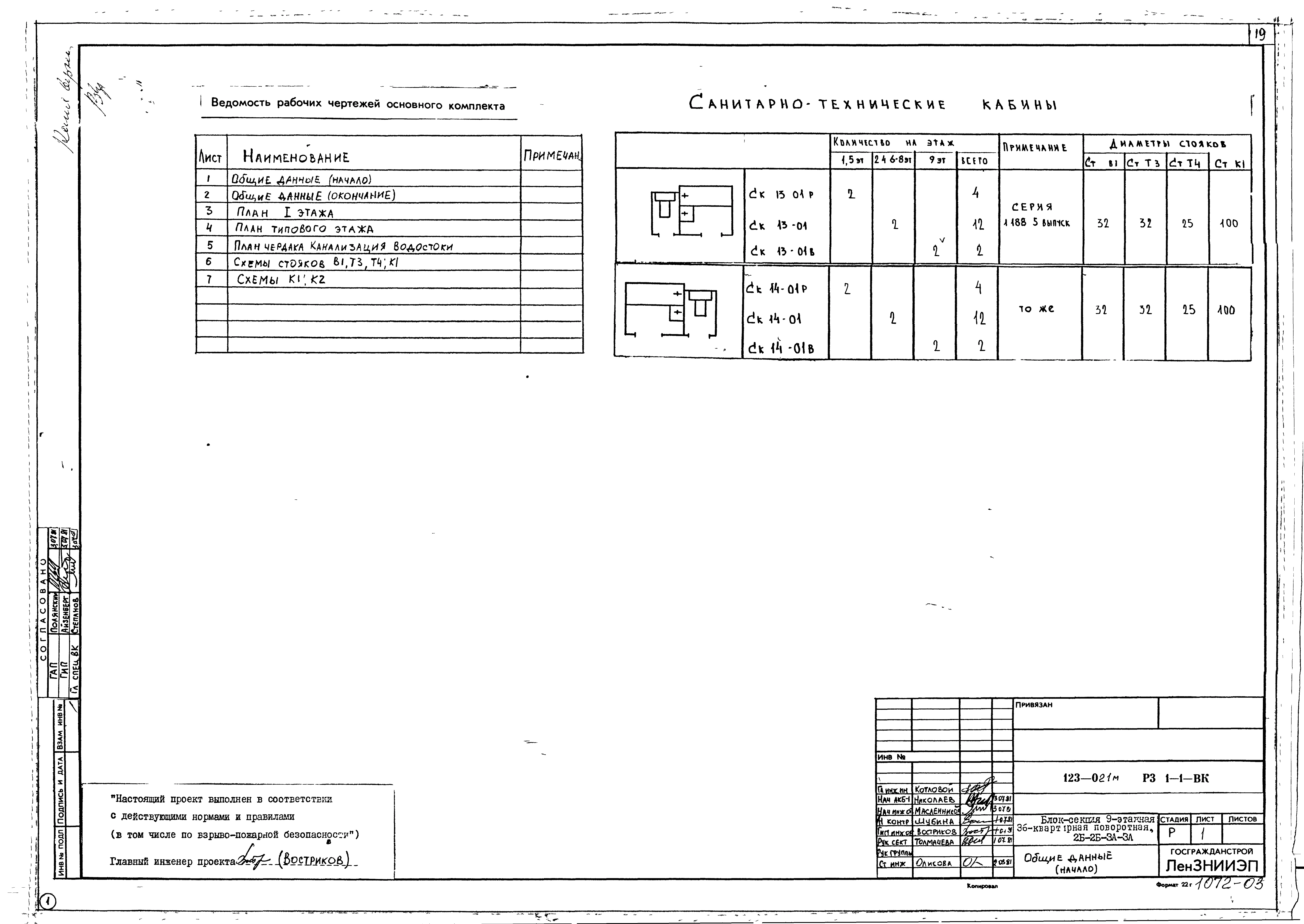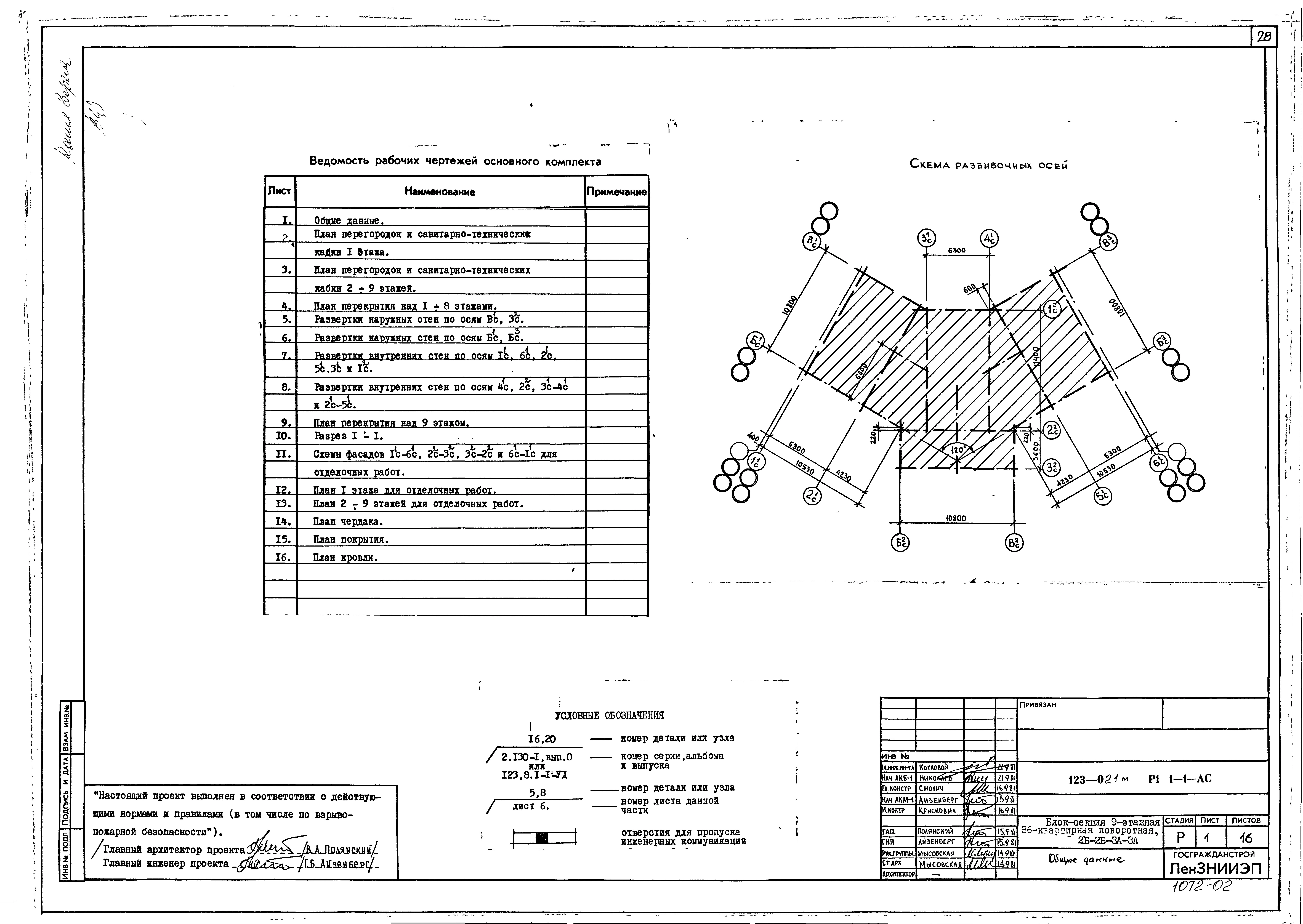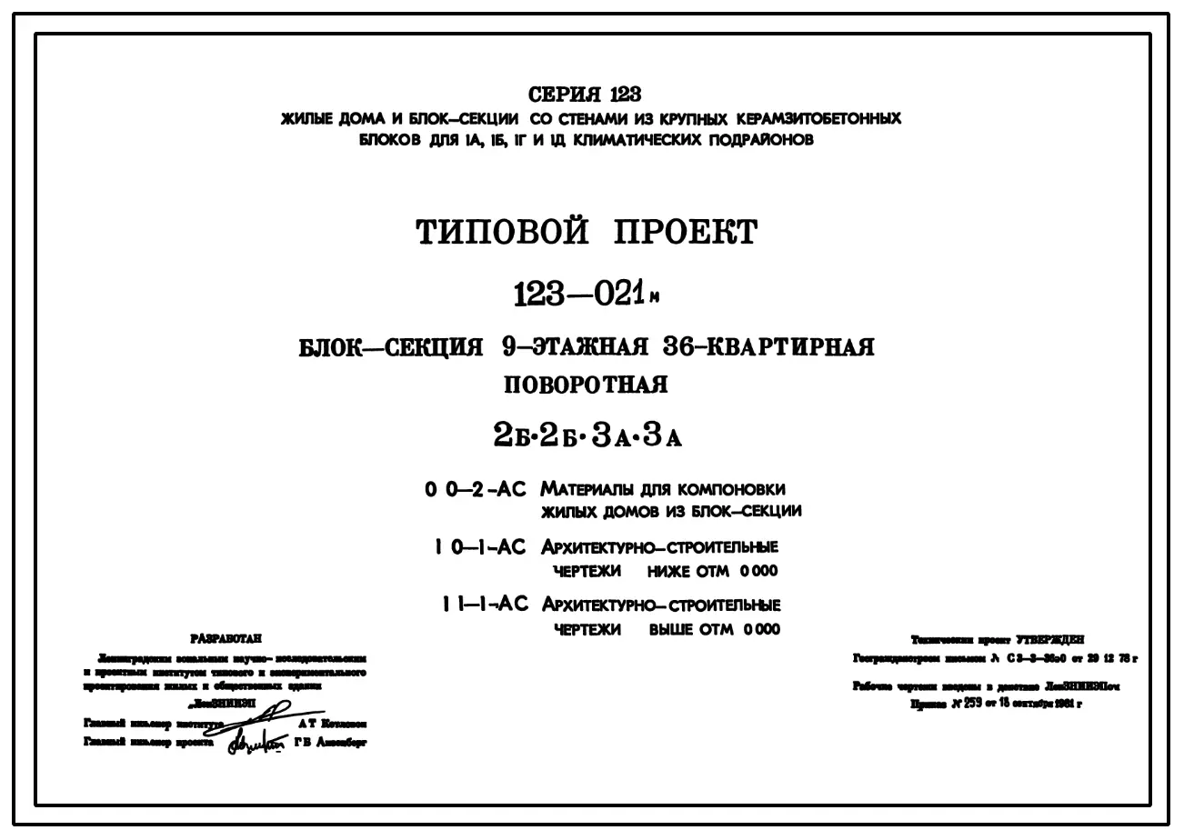 Типовой проект 123-021м Блок-секция девятиэтажная 36-квартирная поворотная, 2Б.2Б.3А.3А.