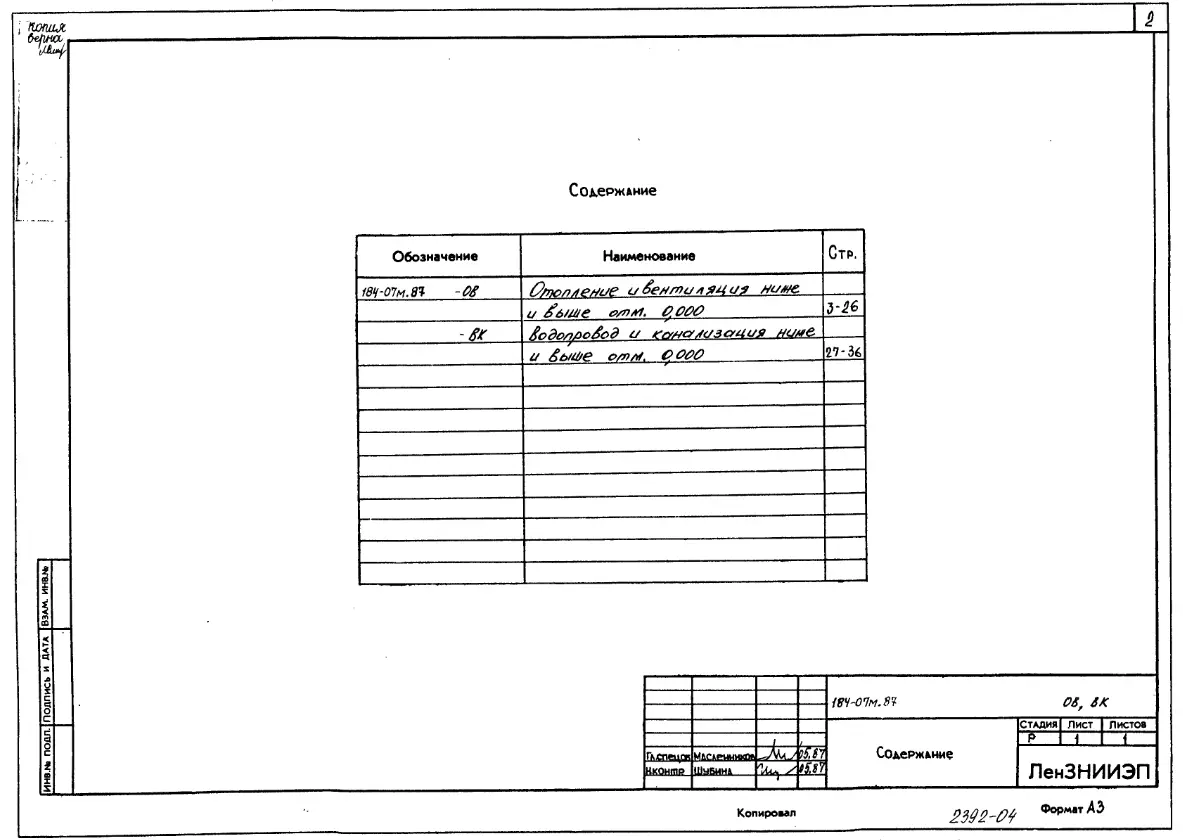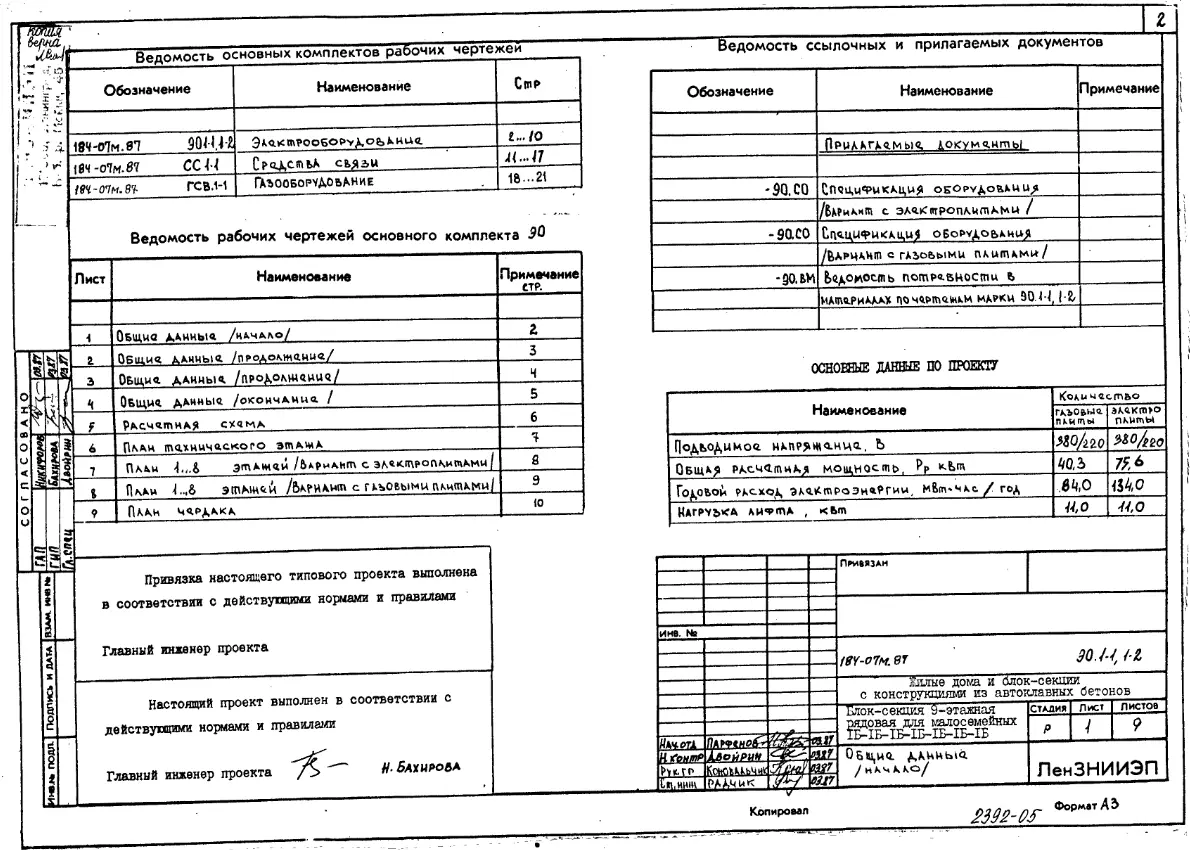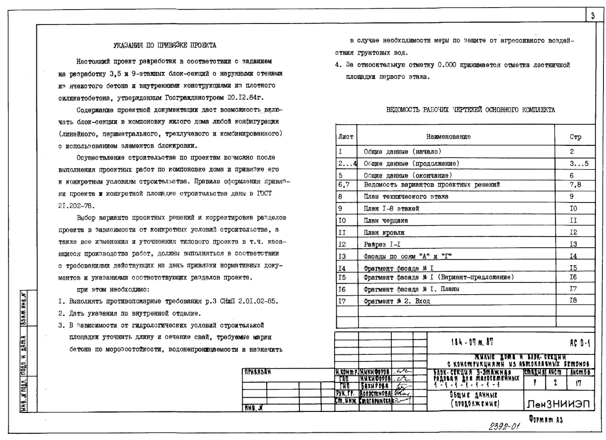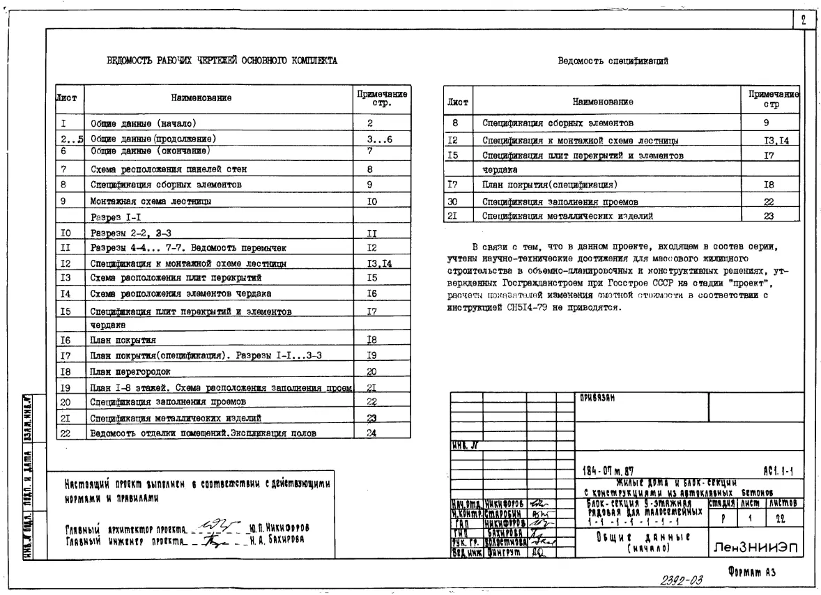 Типовой проект 184-07м.87 Блок-секция 9-этажная рядовая для малосемейных 1-1-1-1-1-1-1.
