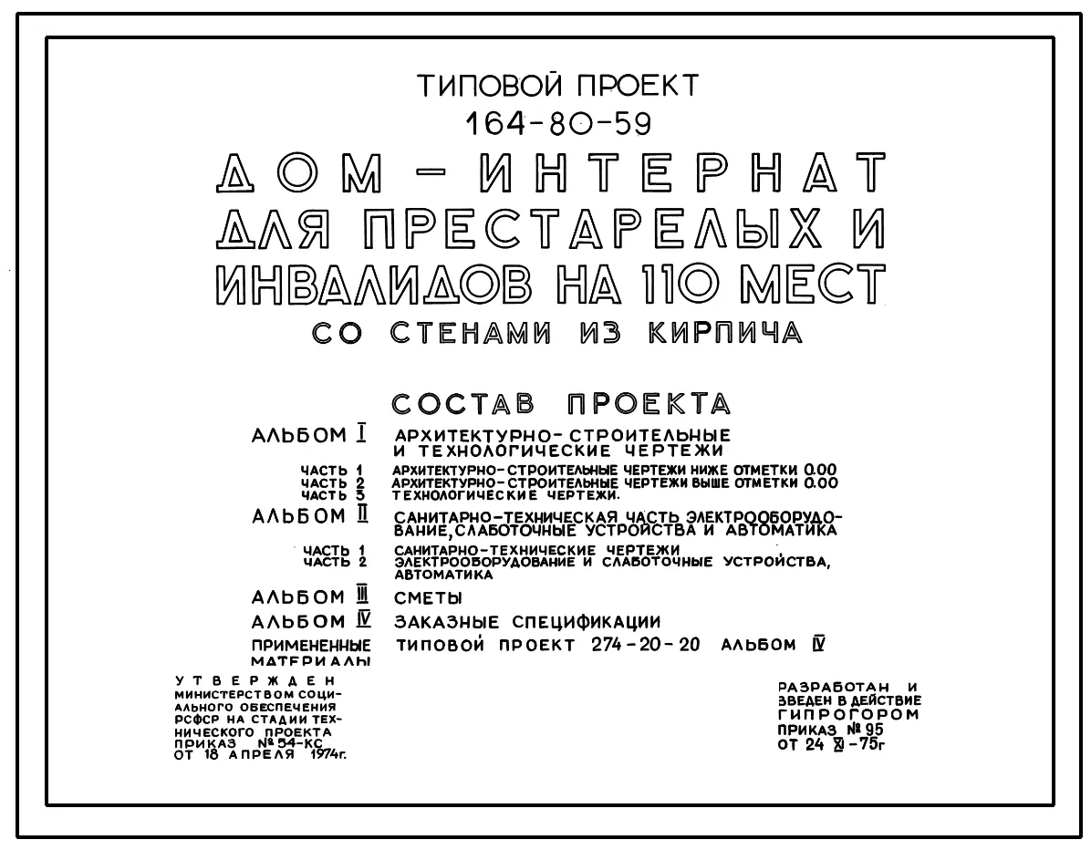Типовой проект 164-80-59 Дом-интернат для престарелых и инвалидов на 110 мест