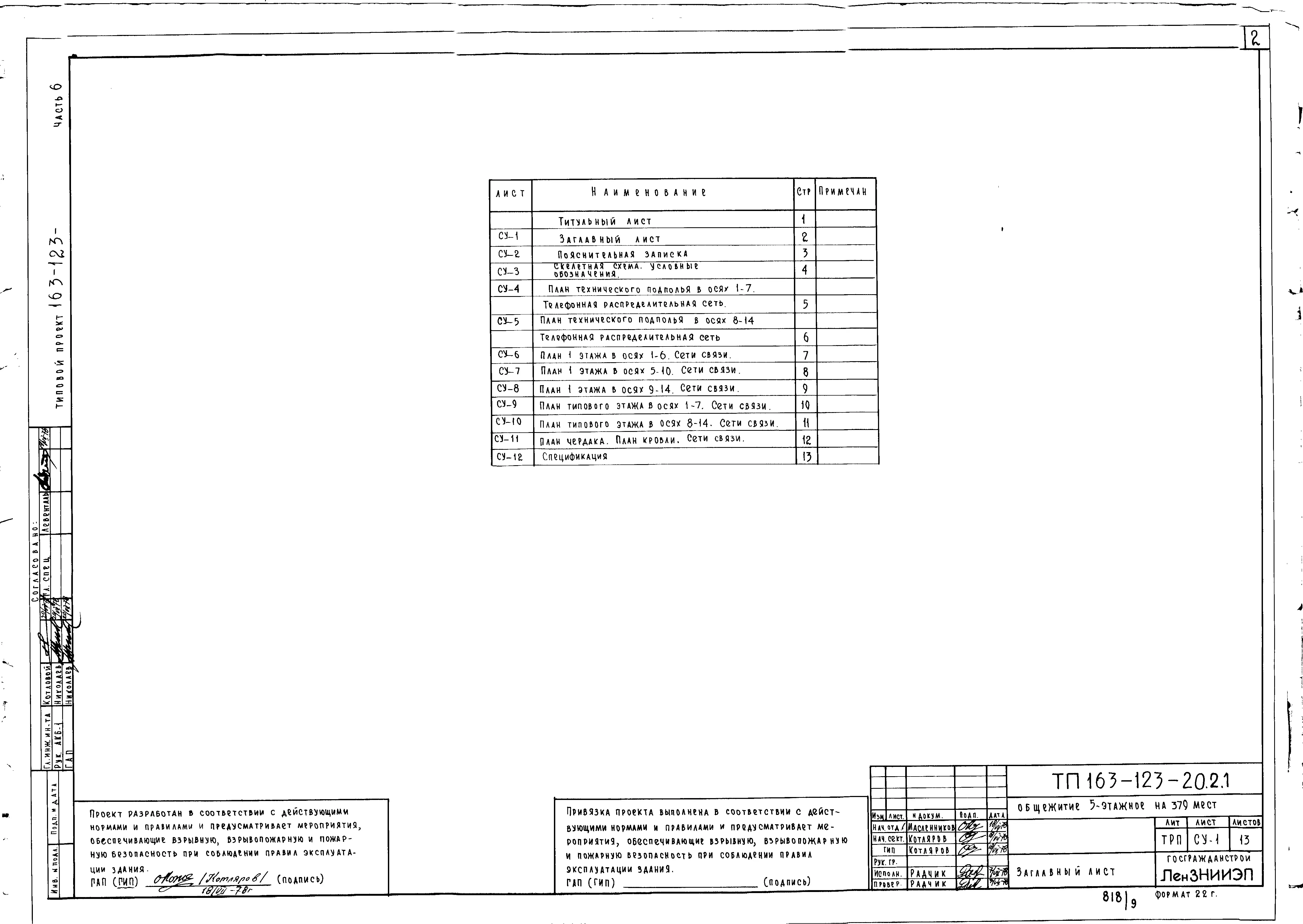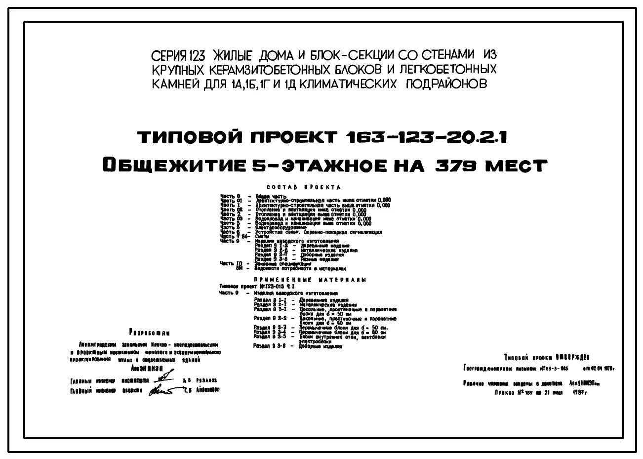 Типовой проект 163-123-20.2.1 Общежитие 5-этажное на 379 мест для рабочих и служащих