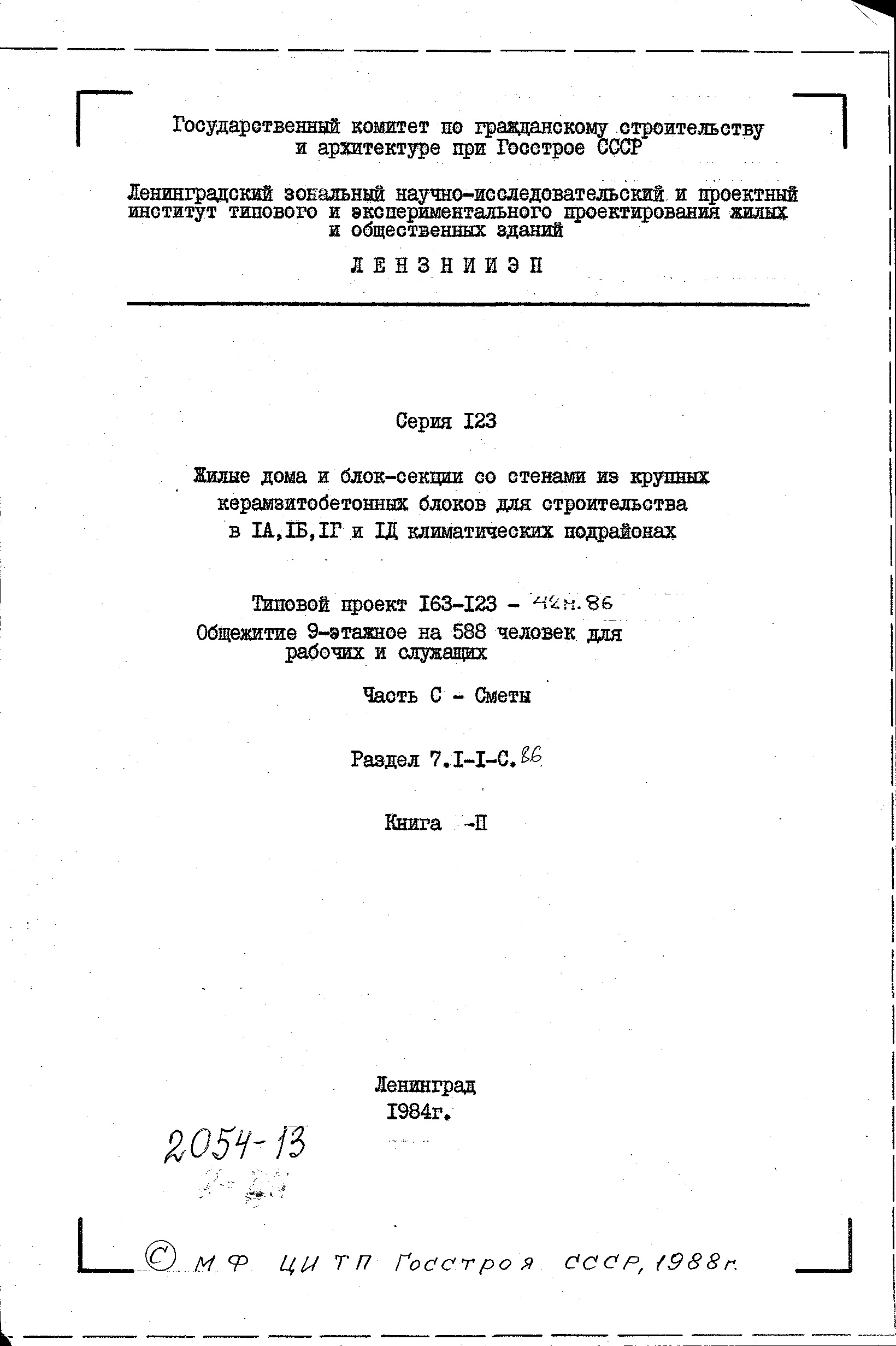 Типовой проект 163-123-42м.86 Общежитие 9-этажное на 588 человек для рабочих и служащих