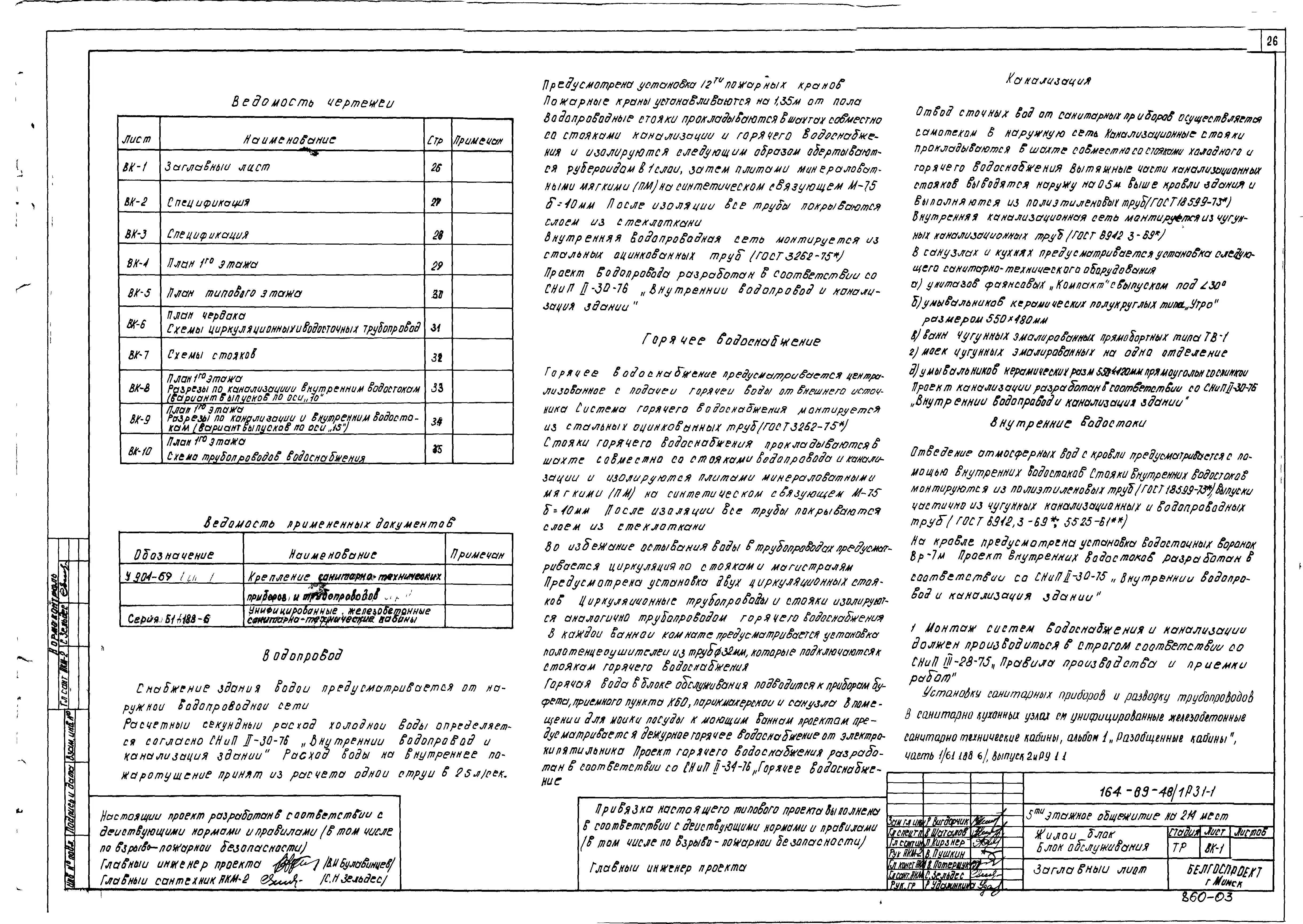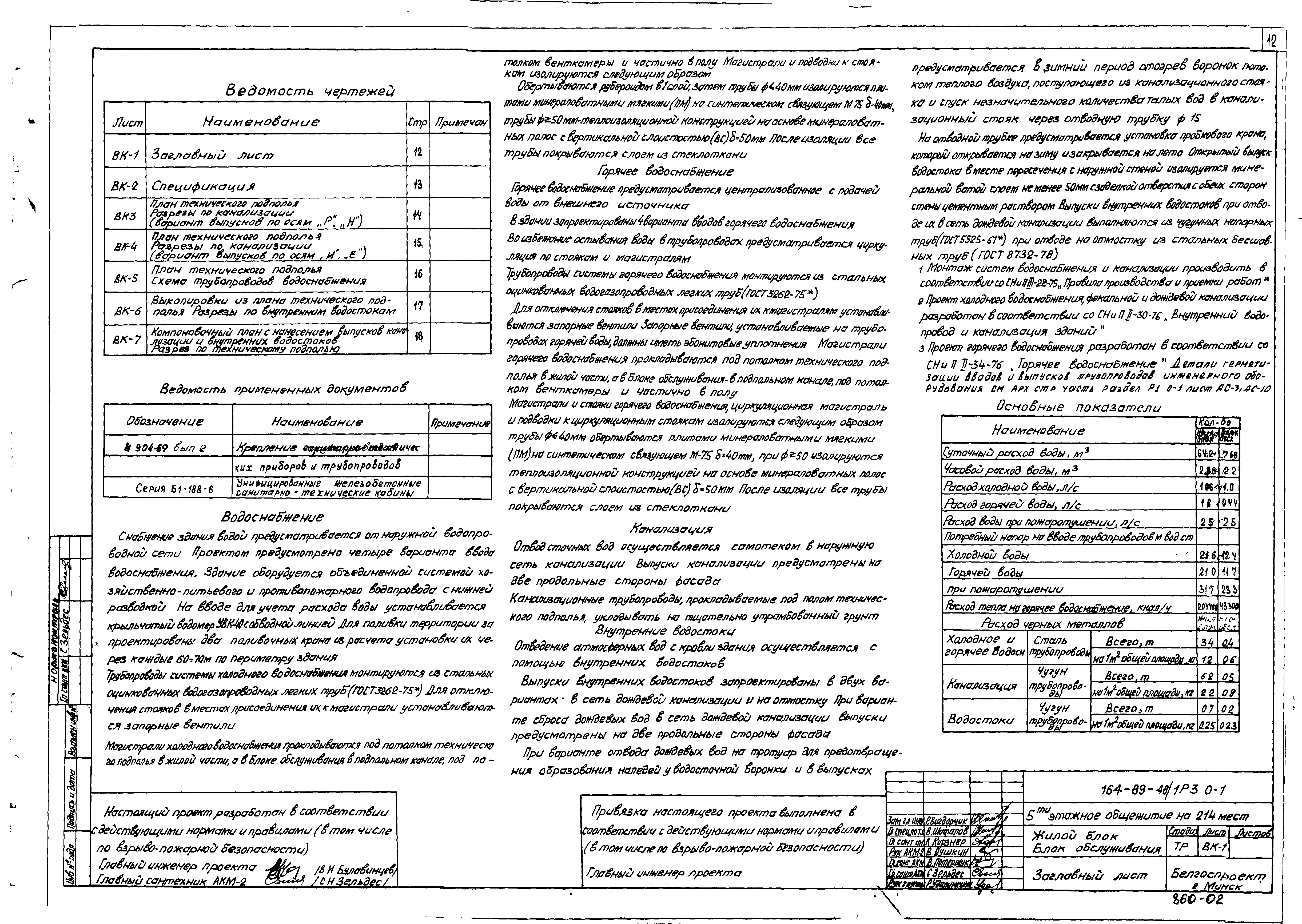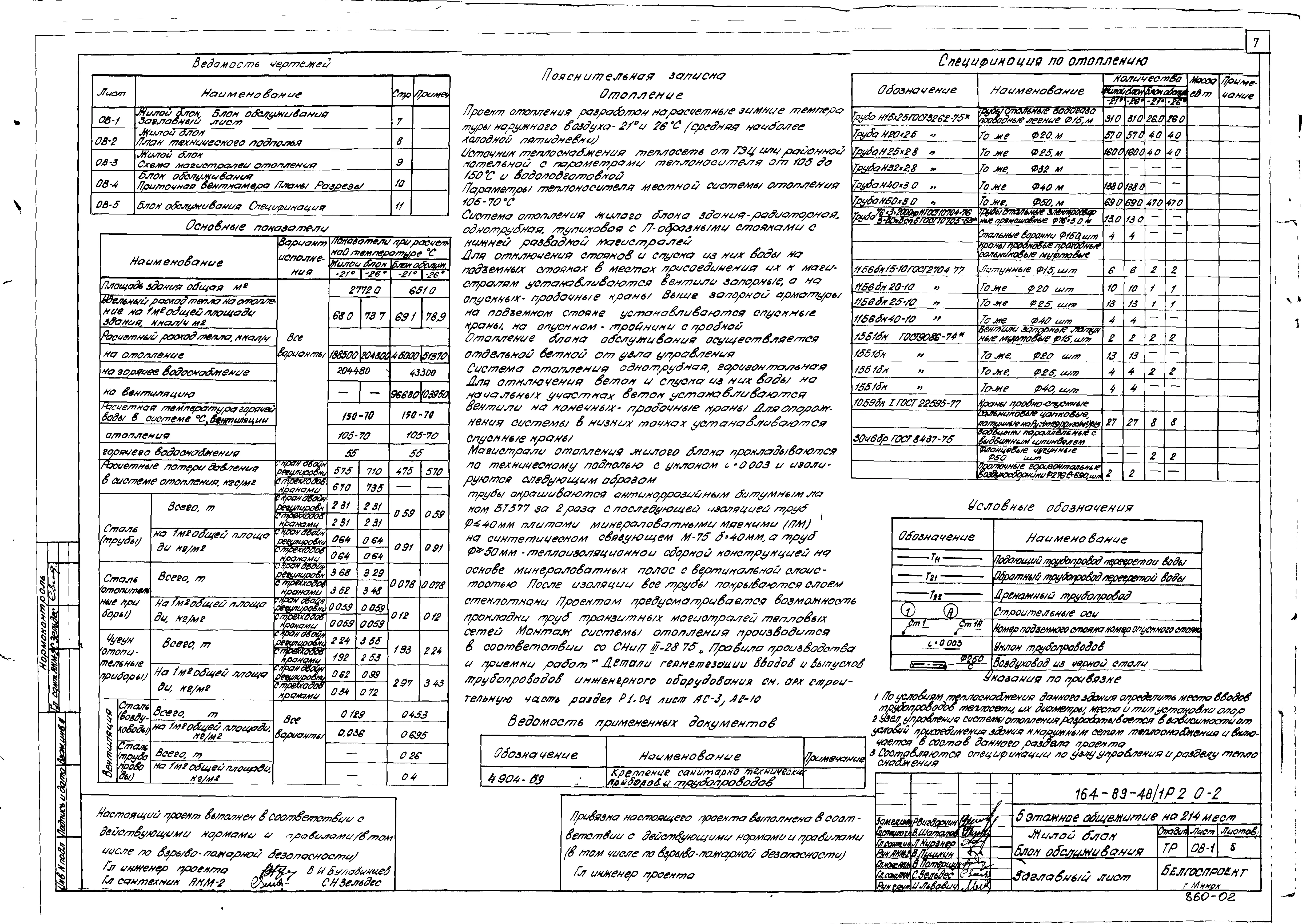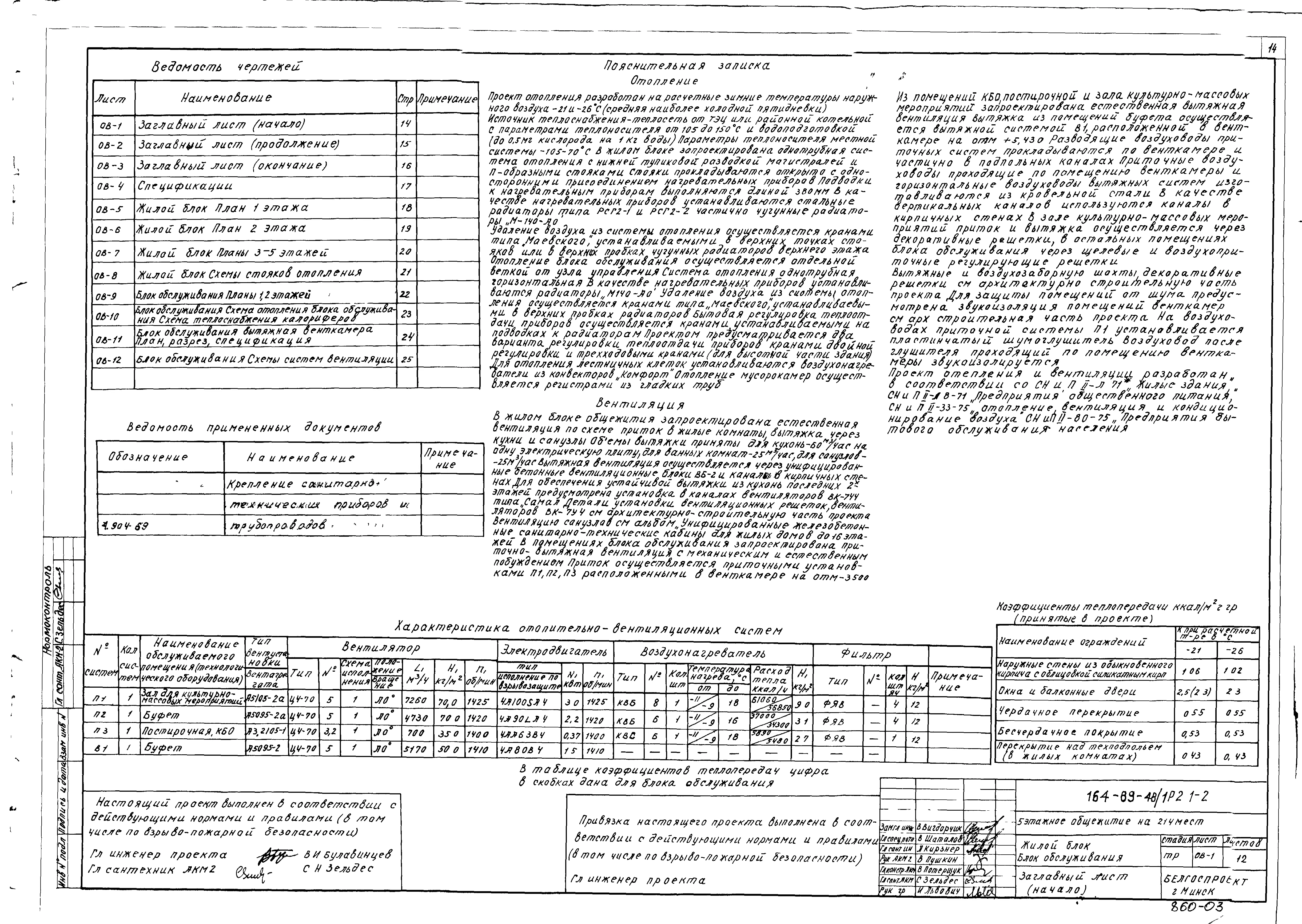 Типовой проект 164-89-48/1 Пятиэтажное общежитие на 214 мест. Для строительства во 2В климатическом подрайоне Белорусской ССР