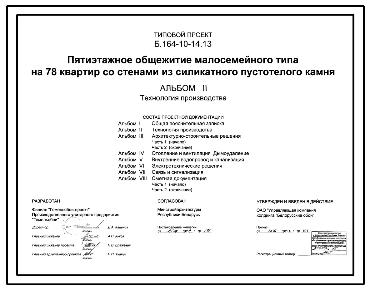 Типовой проект Б.164-10-14.13 Пятиэтажное общежитие малосемейного типа на 78 квартир со стенами из силикатного пустотелого камня