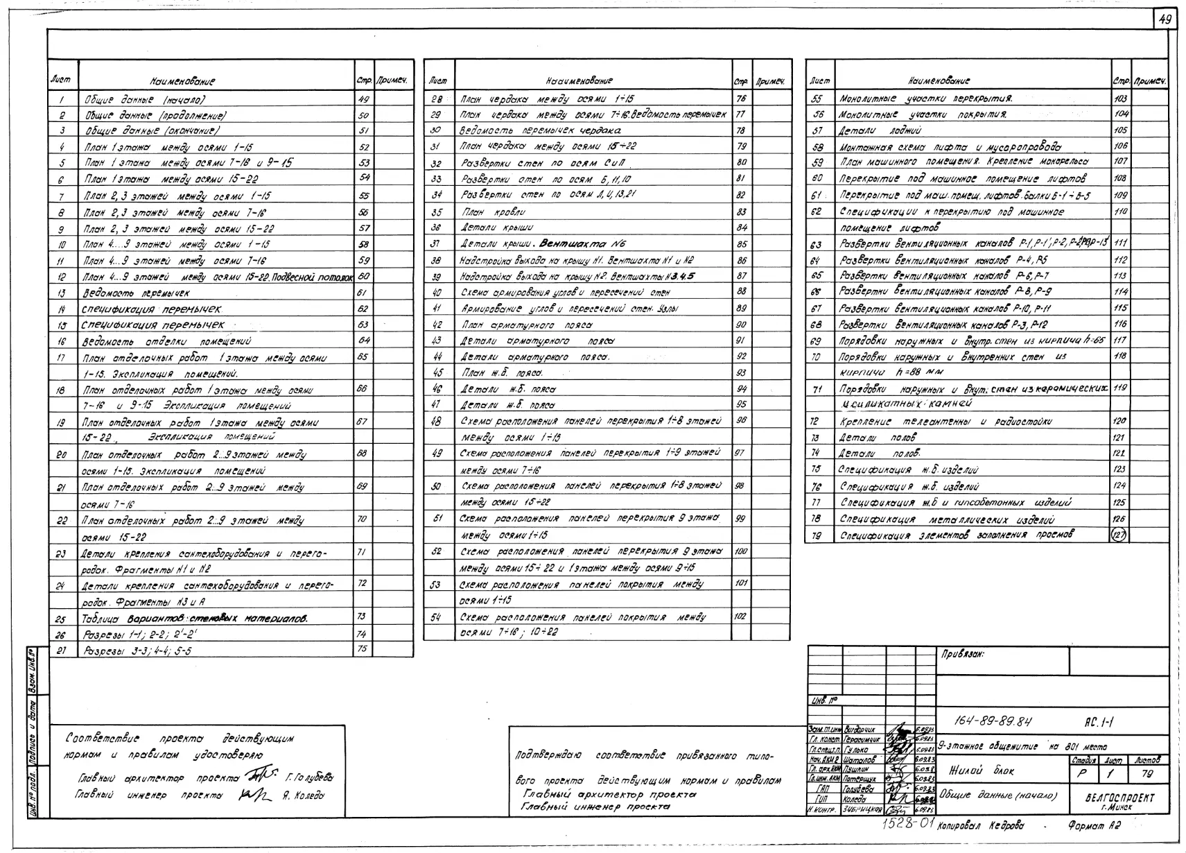 Типовой проект 164-89-89.84 9-этажное общежитие на 801 место (с жилыми ячейками на 3 и 10 человек) для рабочих и служащих. Для строительства во 2В климатическом подрайоне Белорусской ССР.