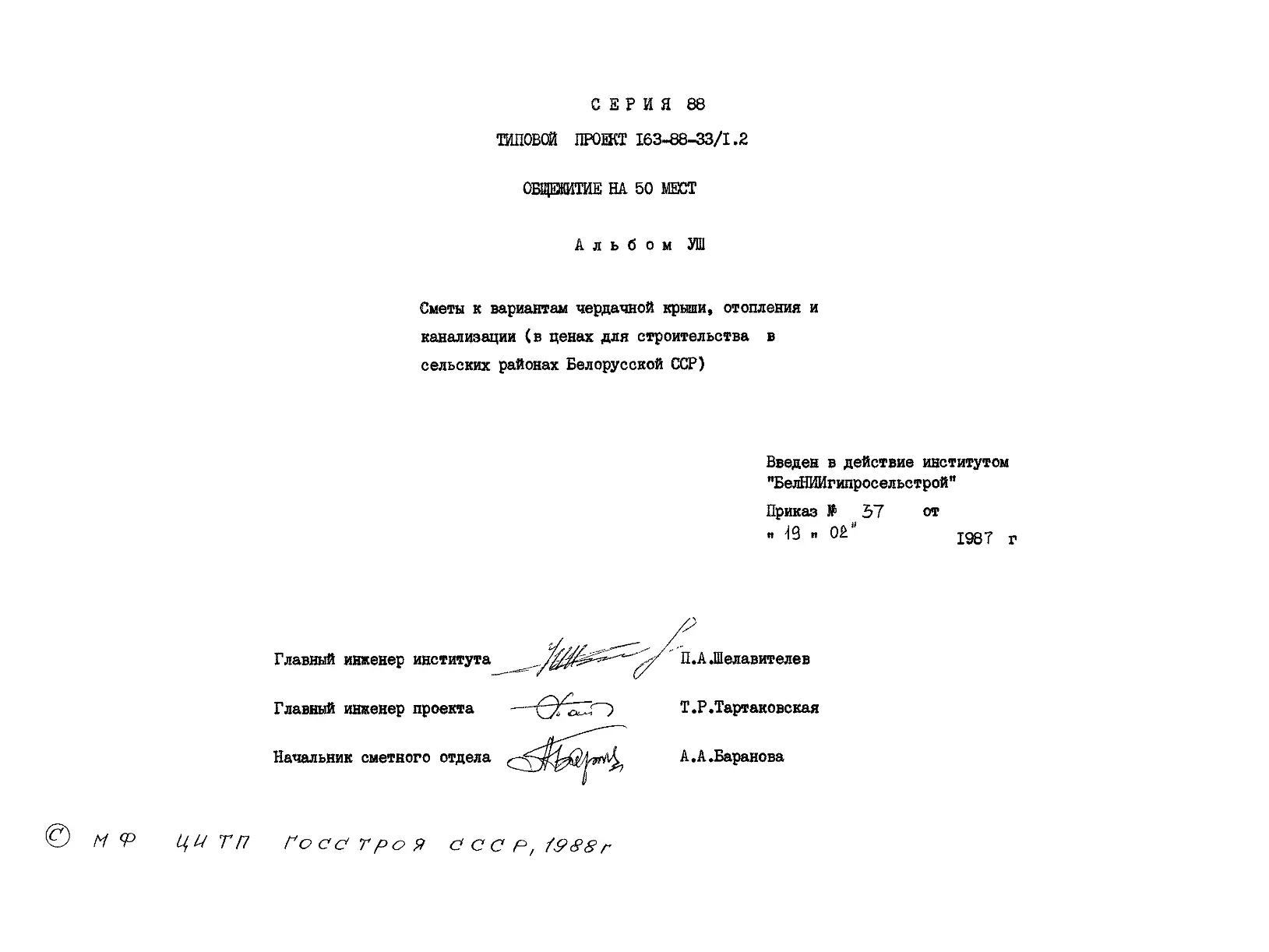 Типовой проект 163-88-33/1.2 Общежитие на 50 мест.