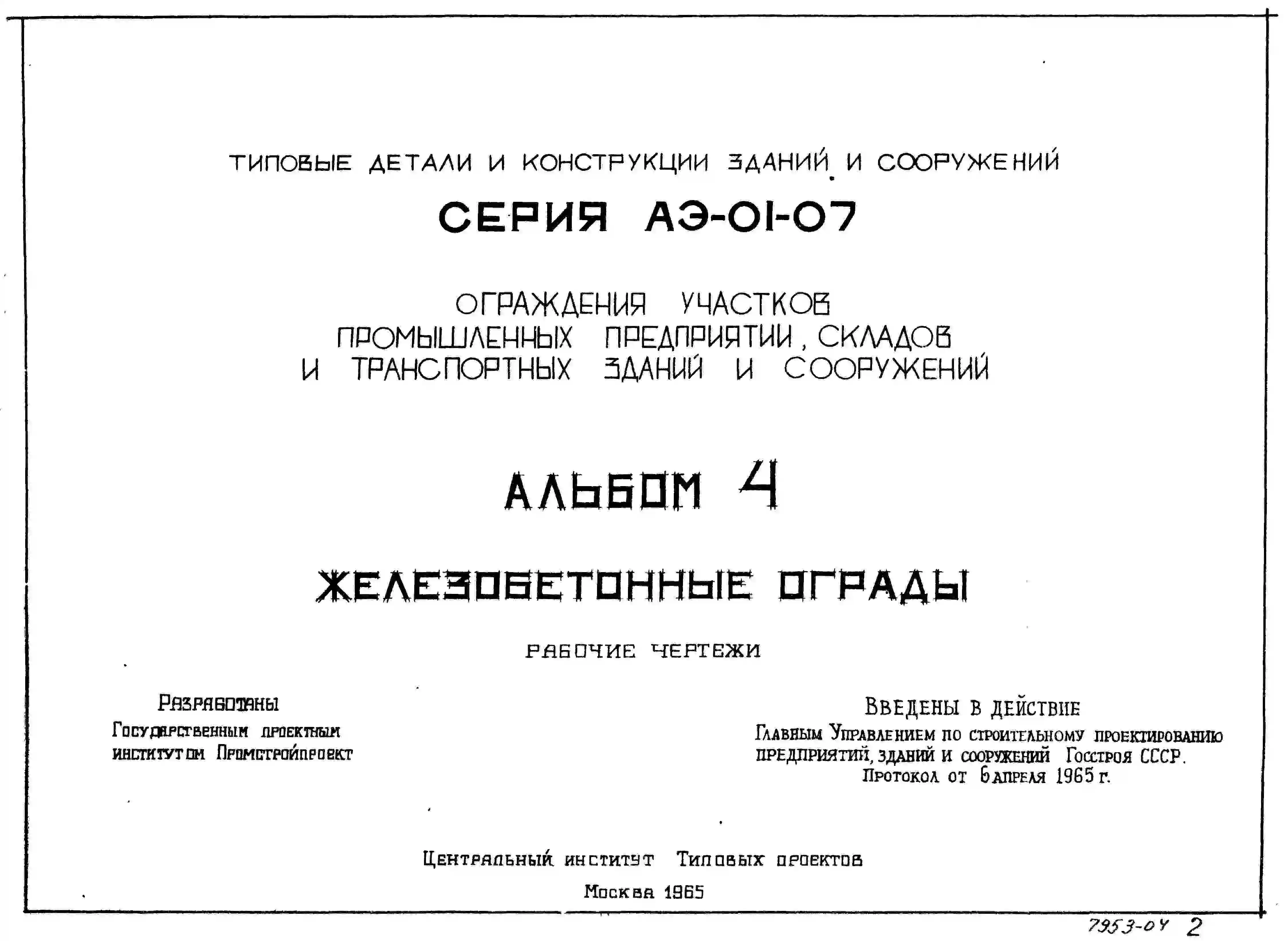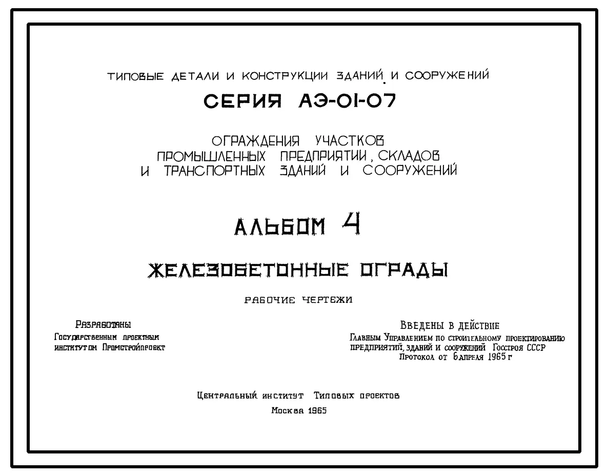 Серия АЭ-01-07 Ограждения участков промышленных предприятий, складов и транспортных зданий и сооружений. Рабочие чертежи.