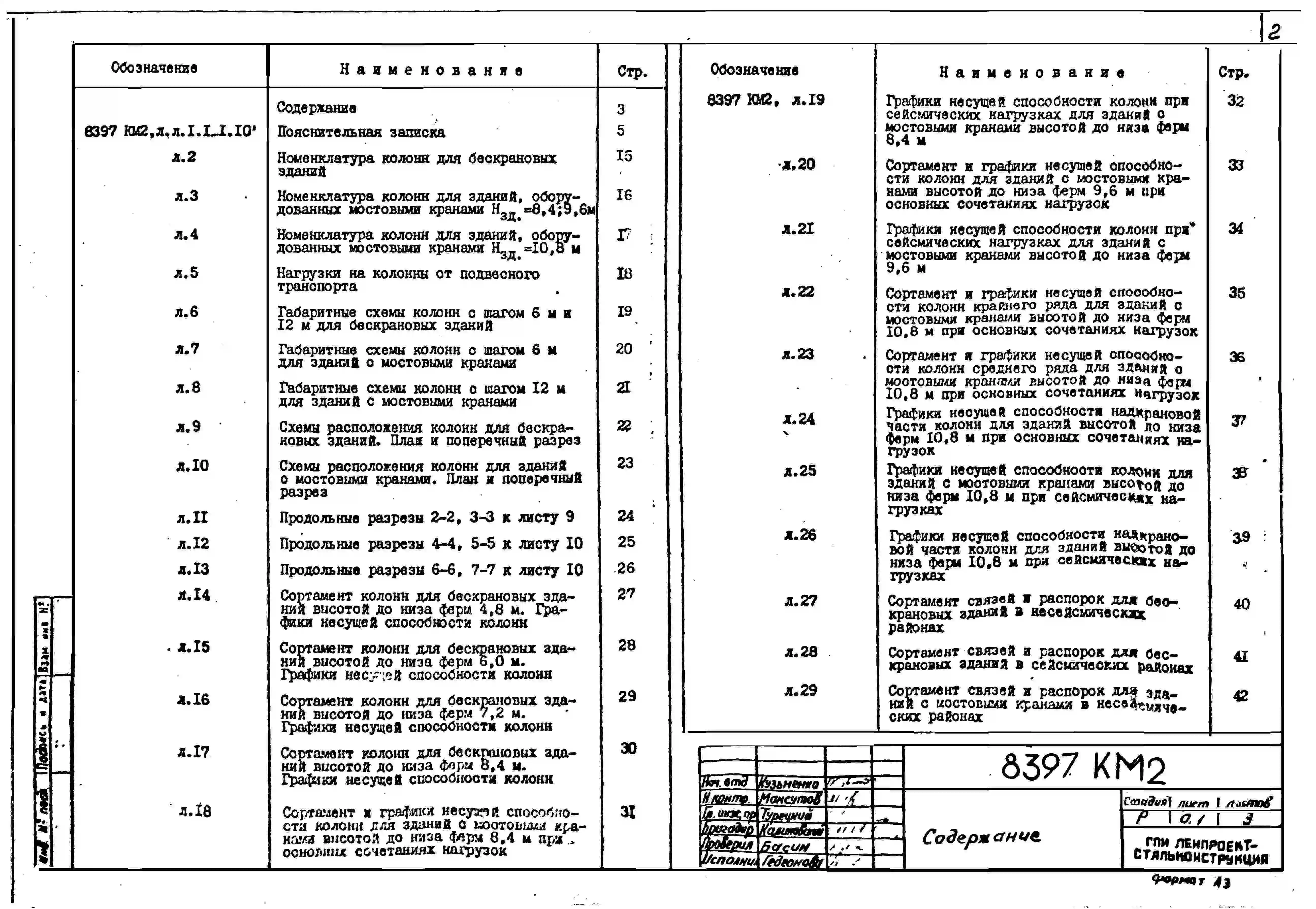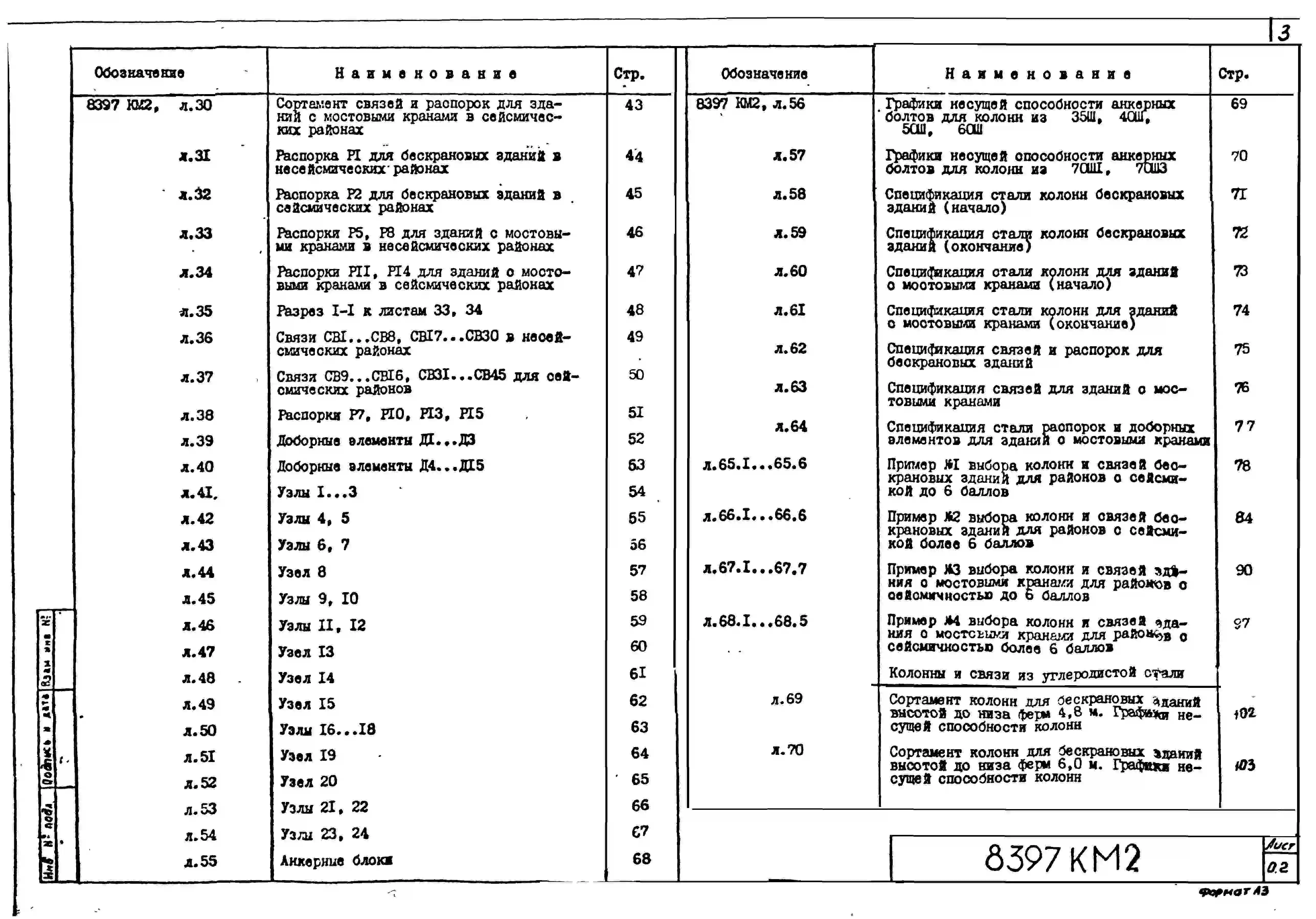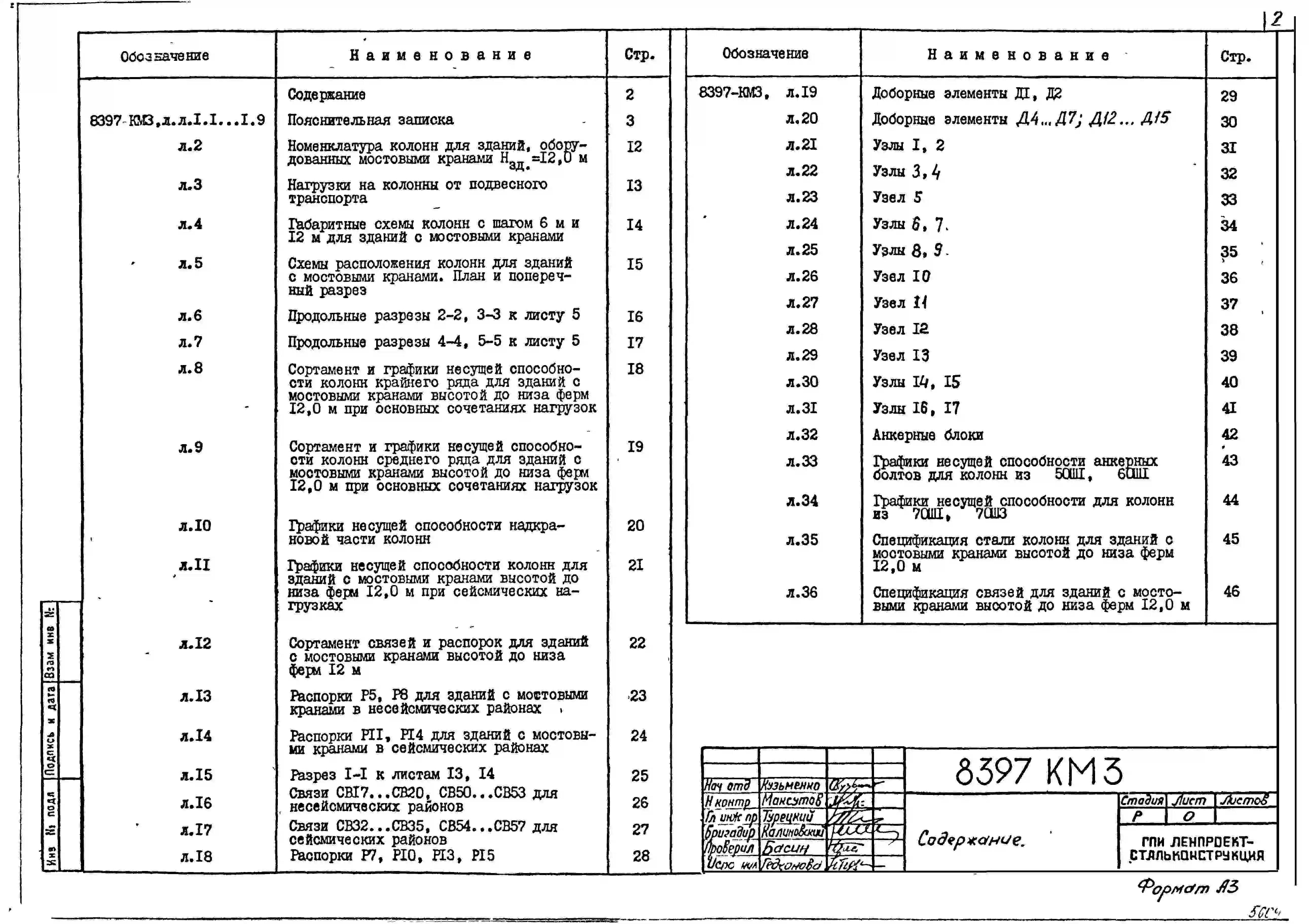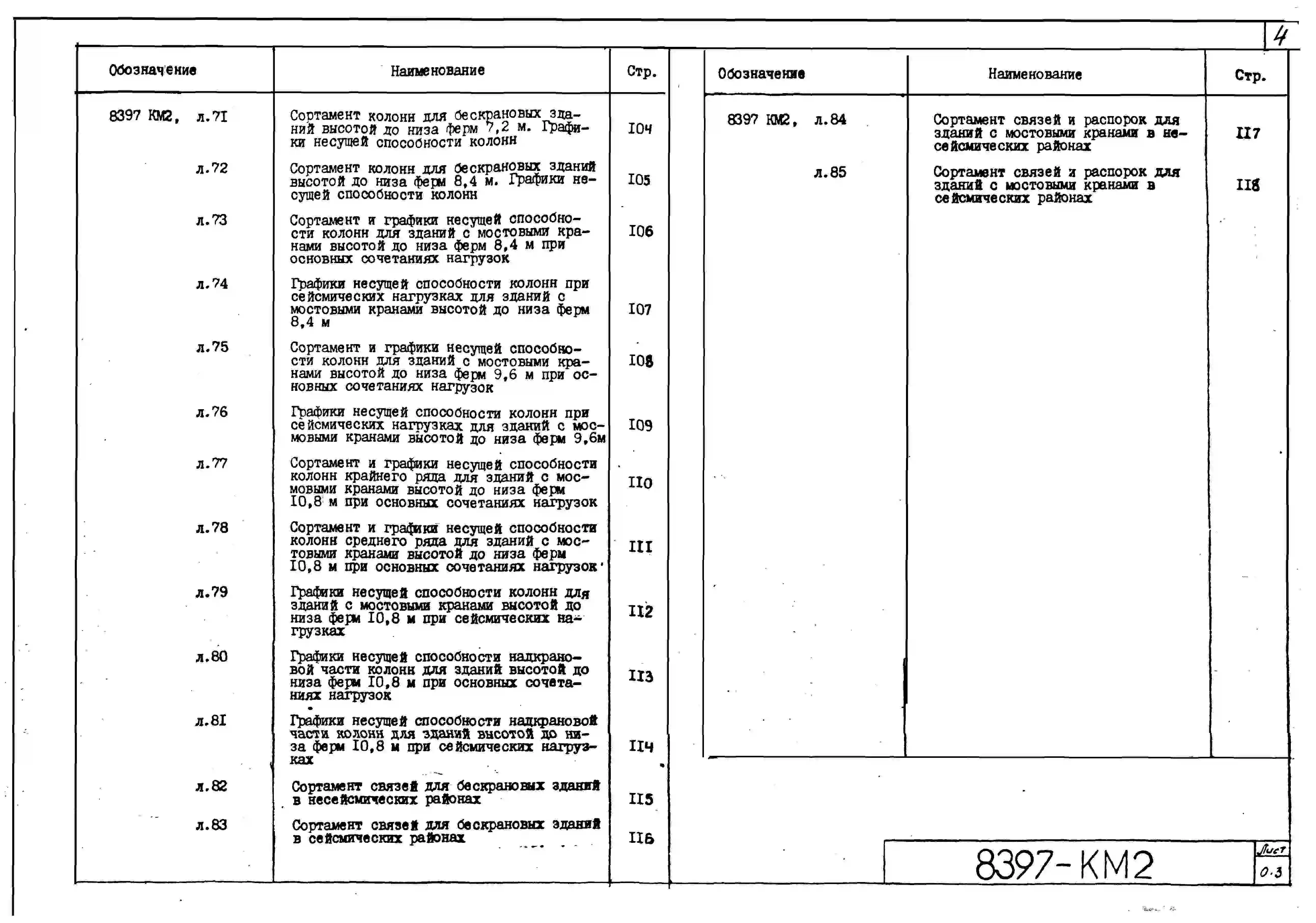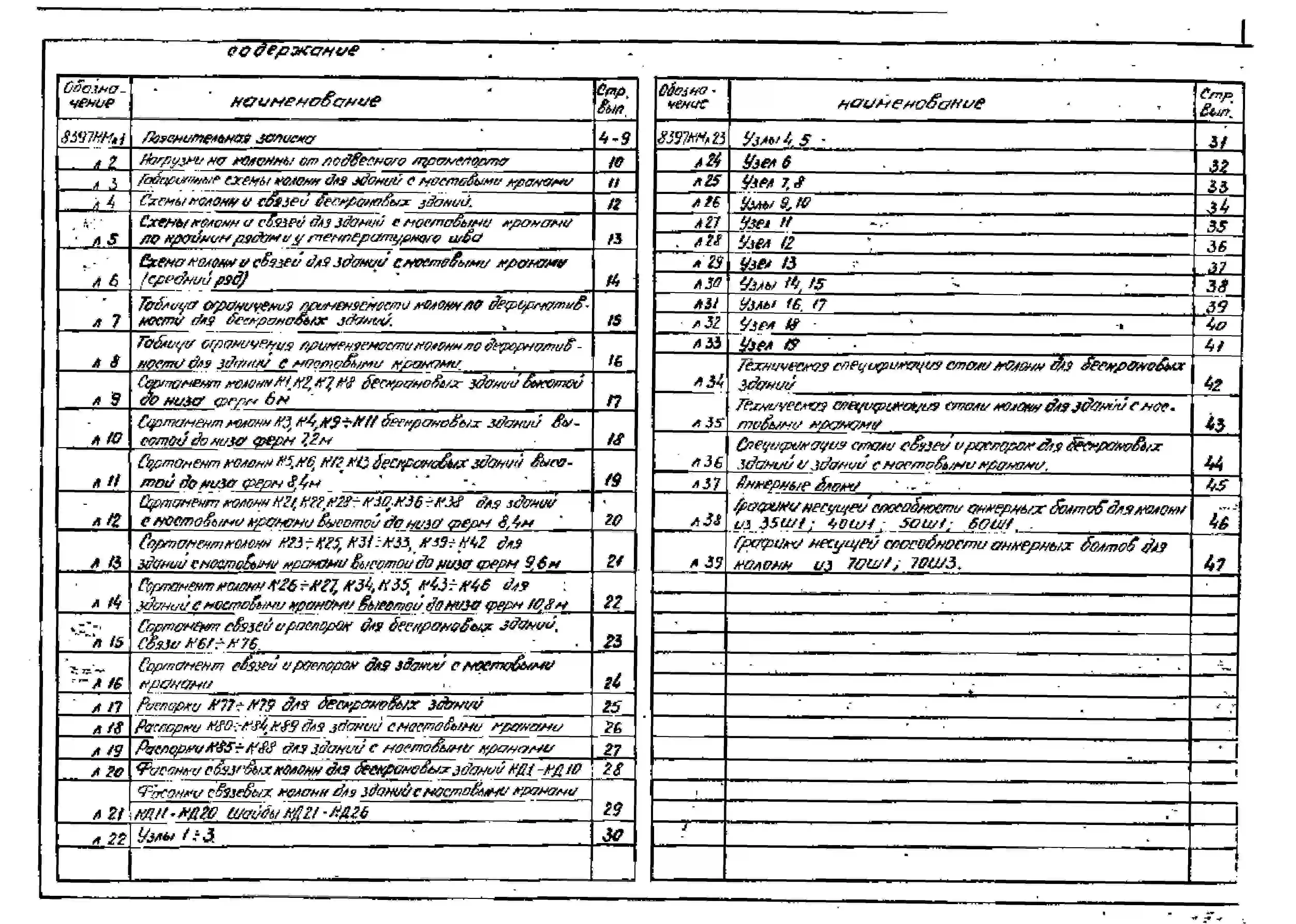 Серия 8397 Стальные колонны из широкополочных двутавров и связи из гнутосварных профилей для одноэтажных зданий с покрытием типа "Молодечно". Рабочие чертежи.
