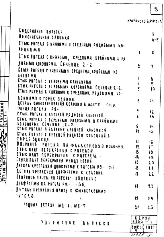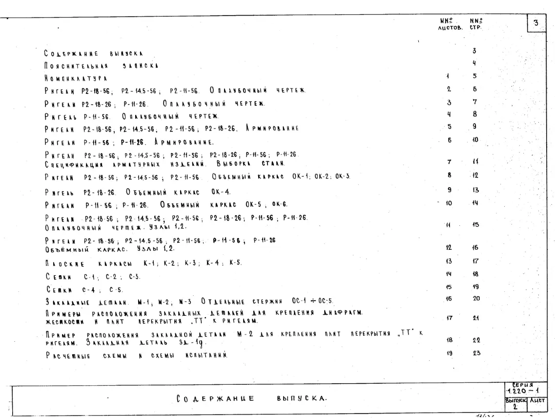 Серия 1.220-1 Сборные элементы зданий каркасной конструкции. Рабочие чертежи.